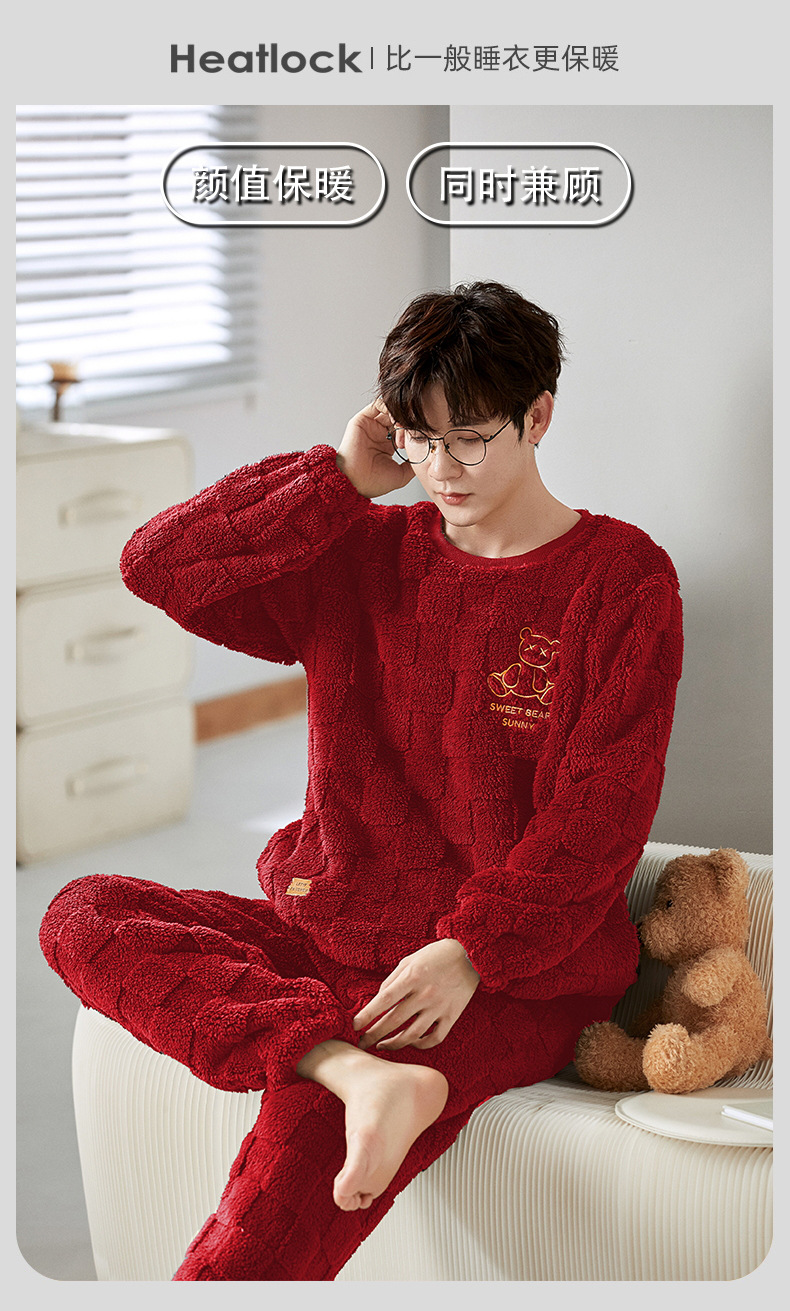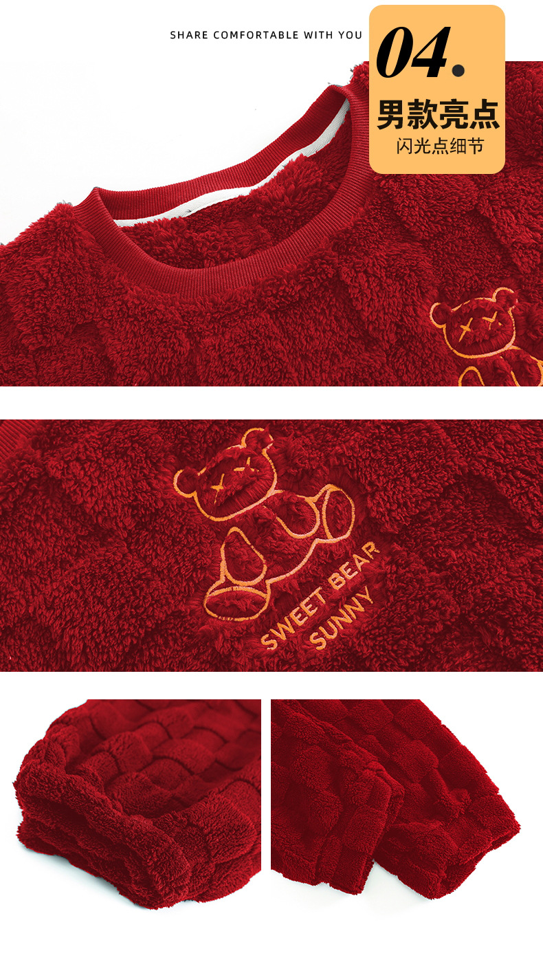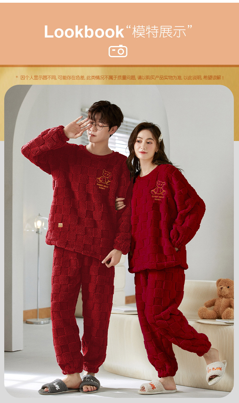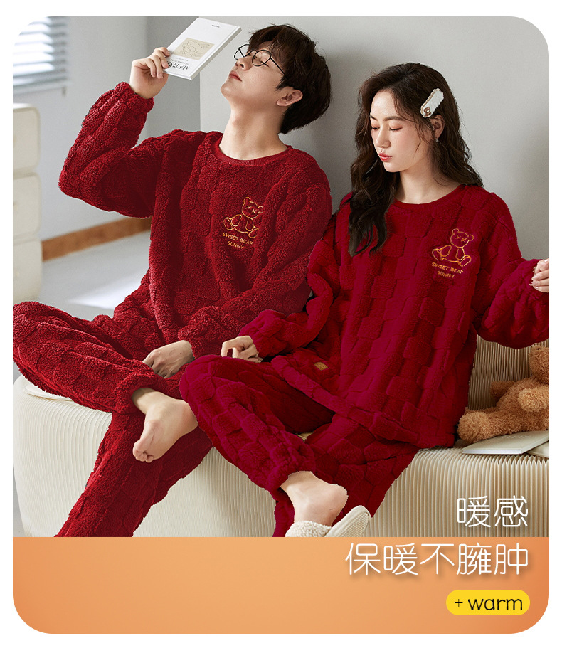 따뜻한 커플 잠옷 여성 결혼식 신혼 산호 양털 2025 새로운 가을과 겨울 빨간 남자 홈 의류 세트스토어 가기
