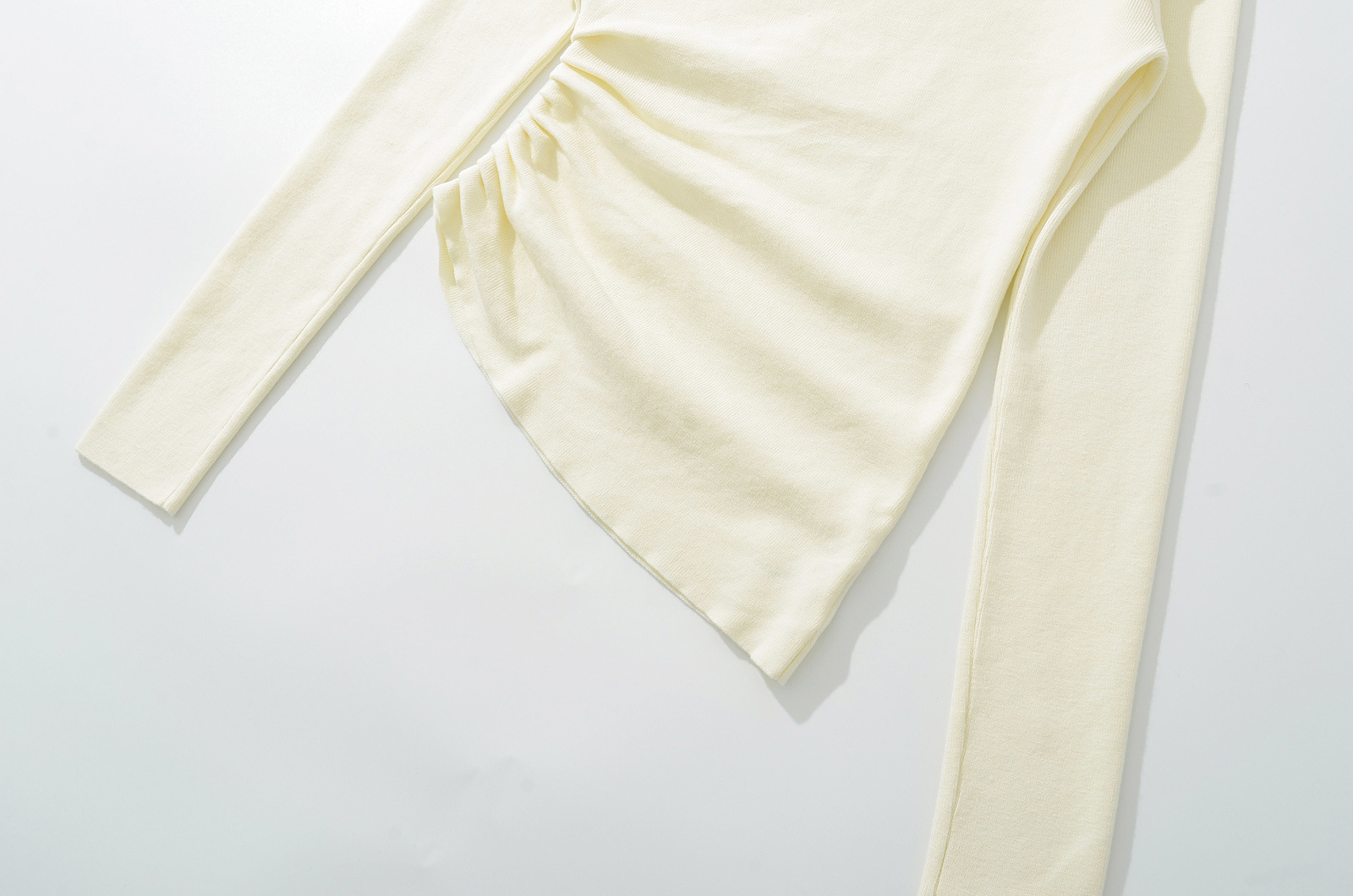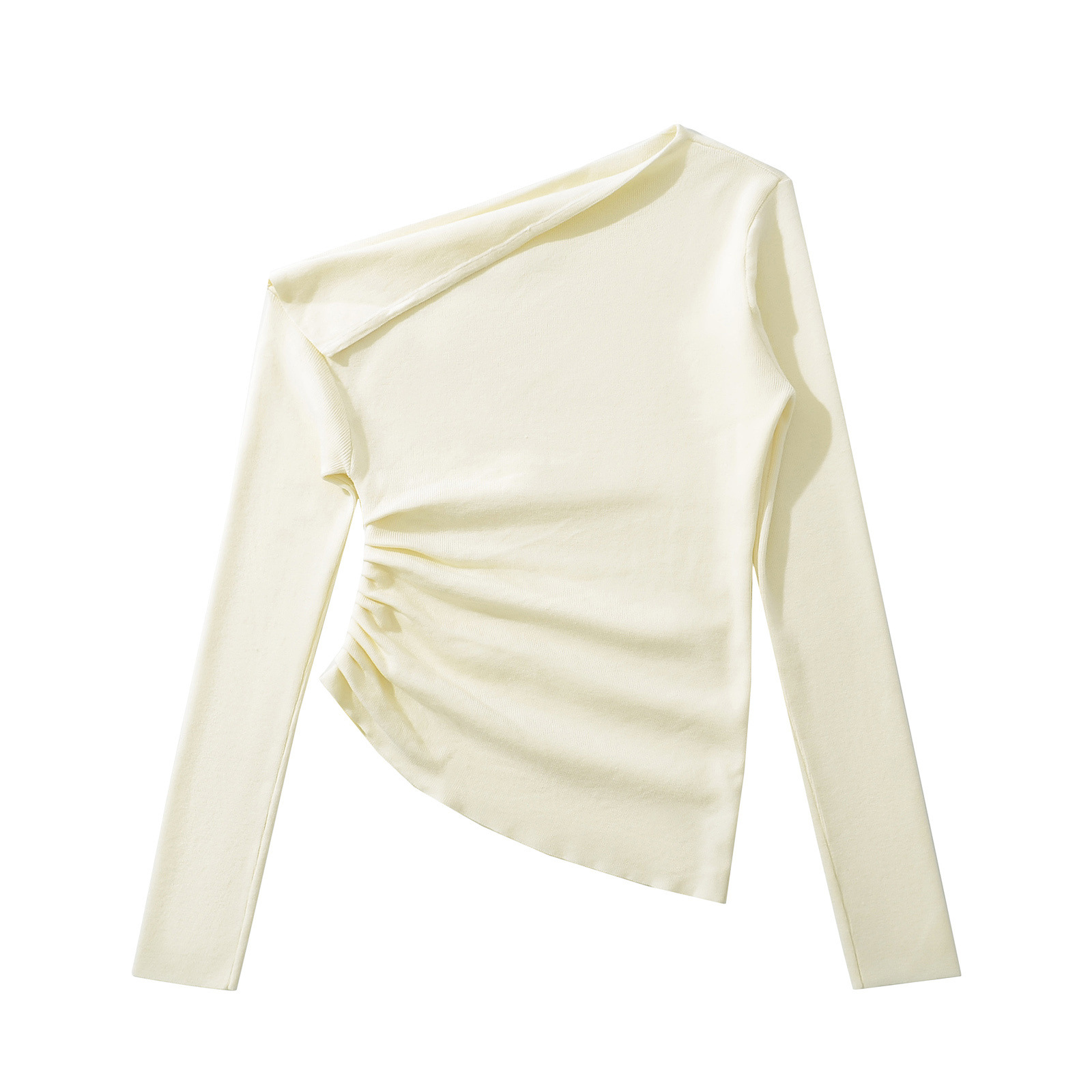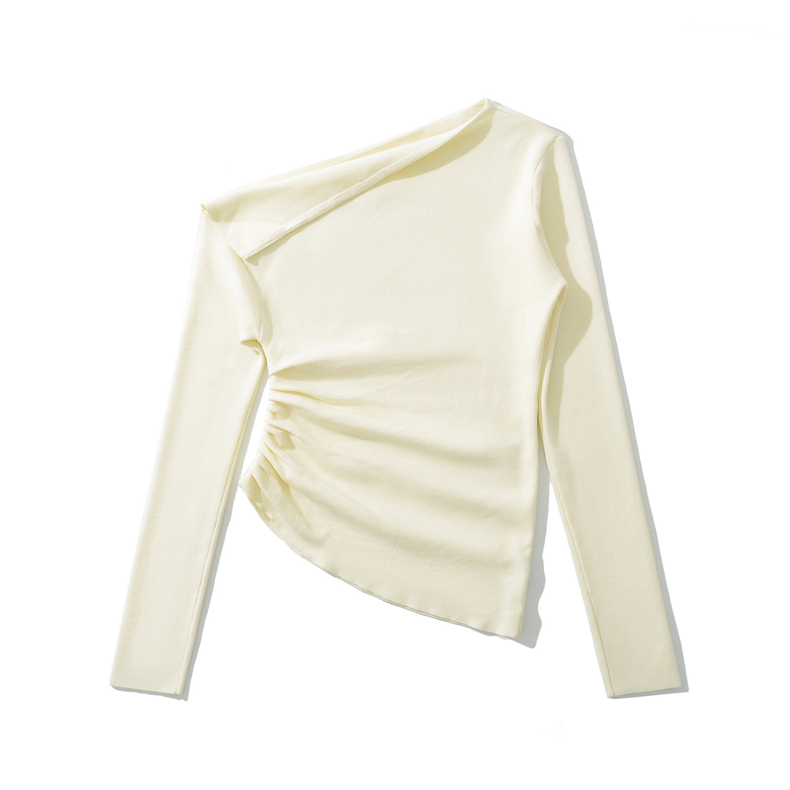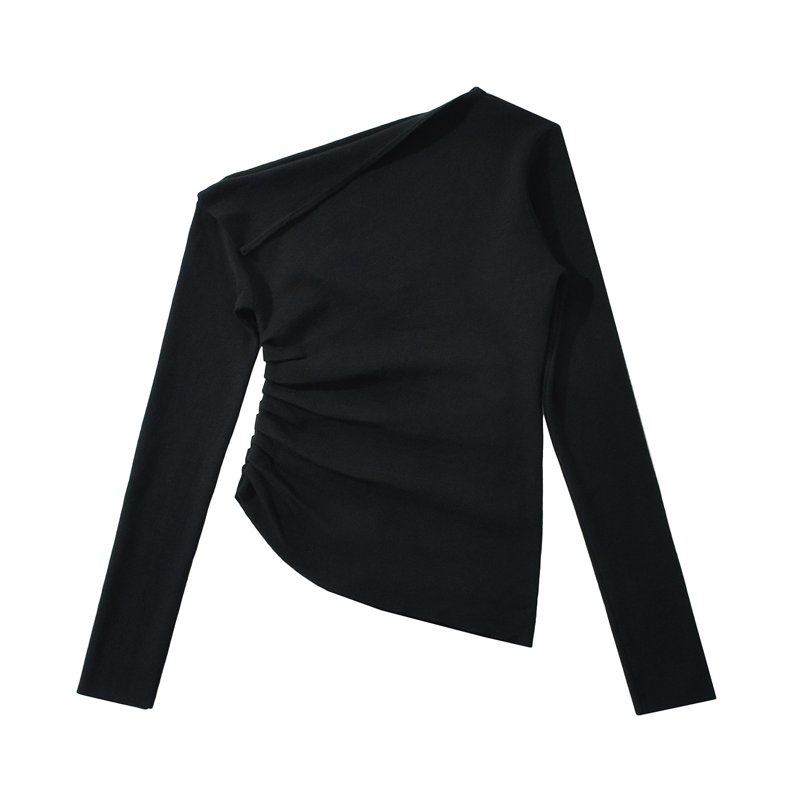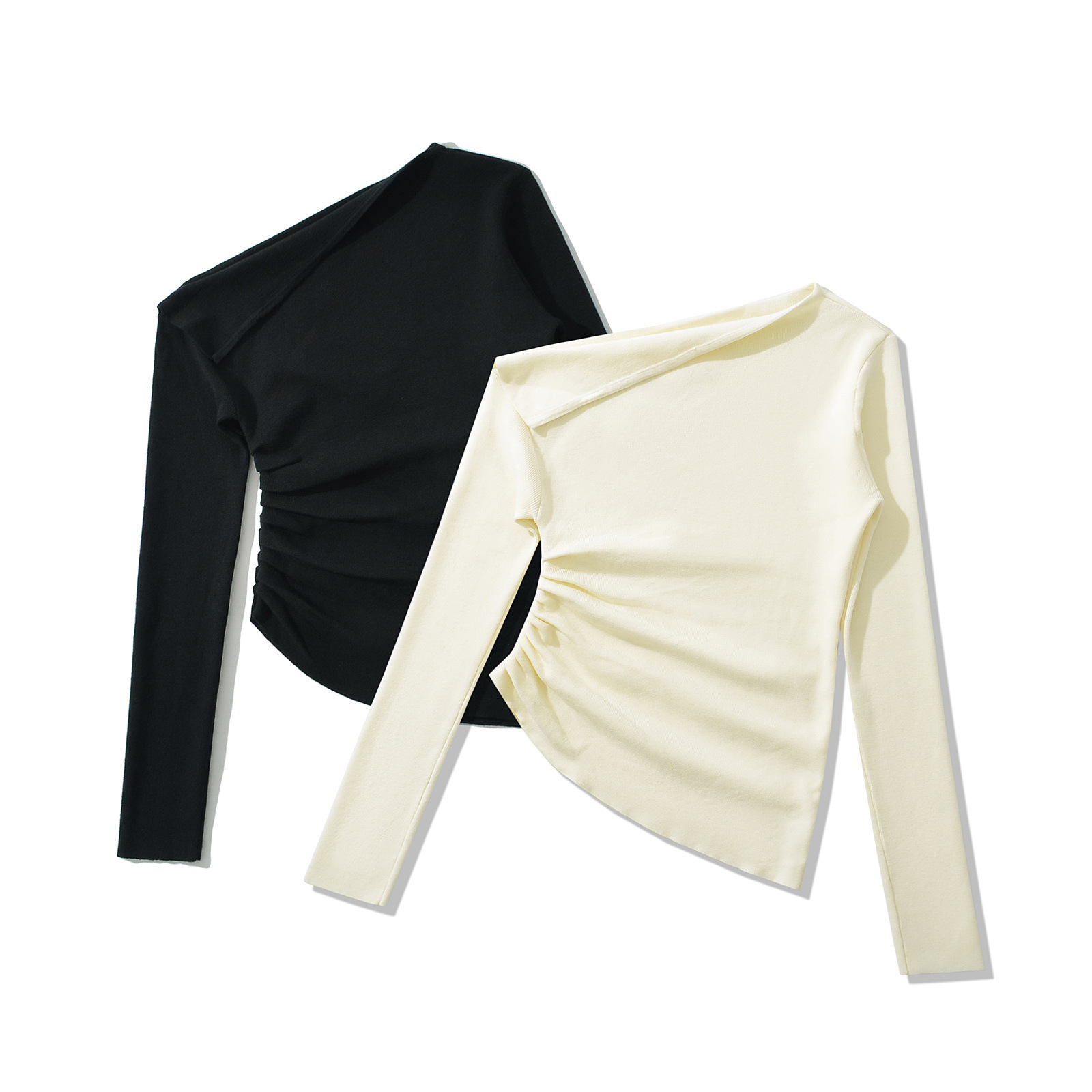 유행 간단한 순수한 긴팔 어깨 셔츠 여성 측면 주름 기본 셔츠 S21637스토어 가기