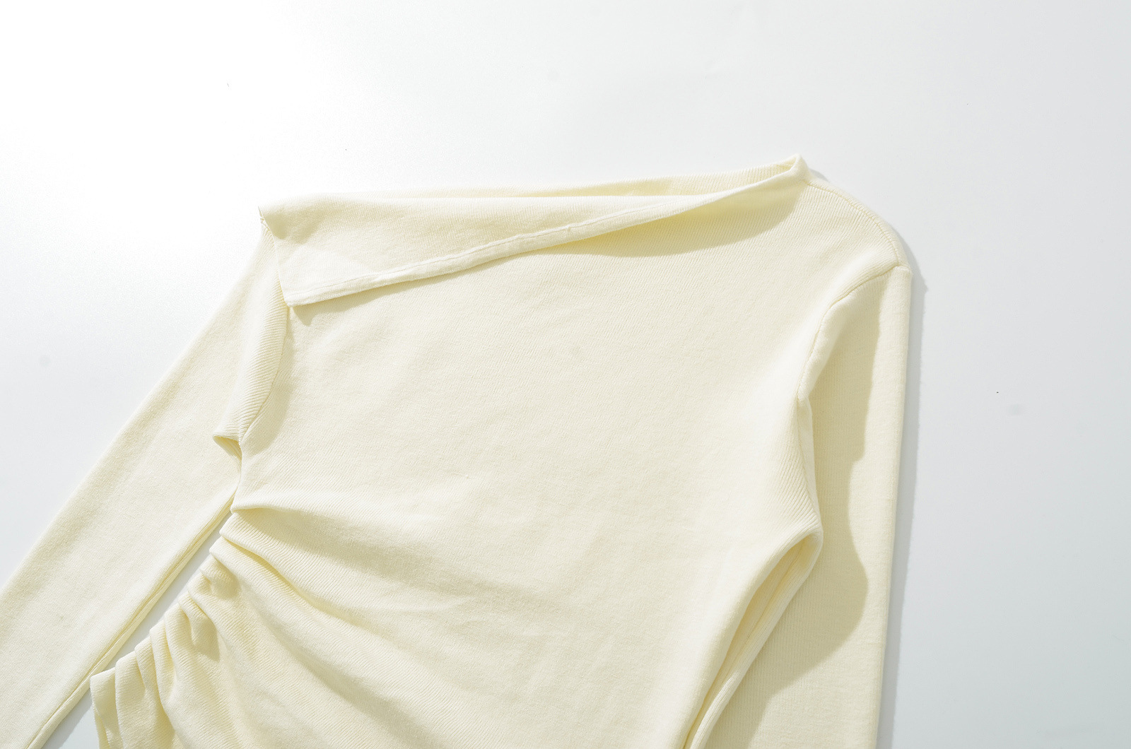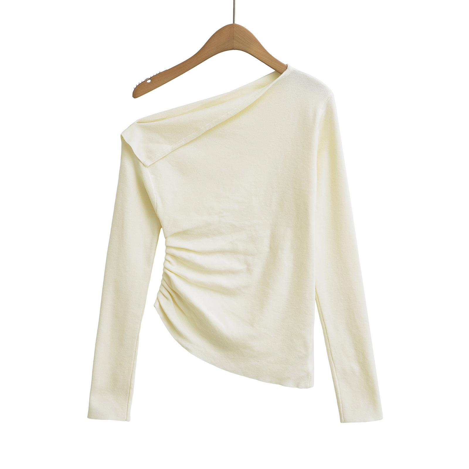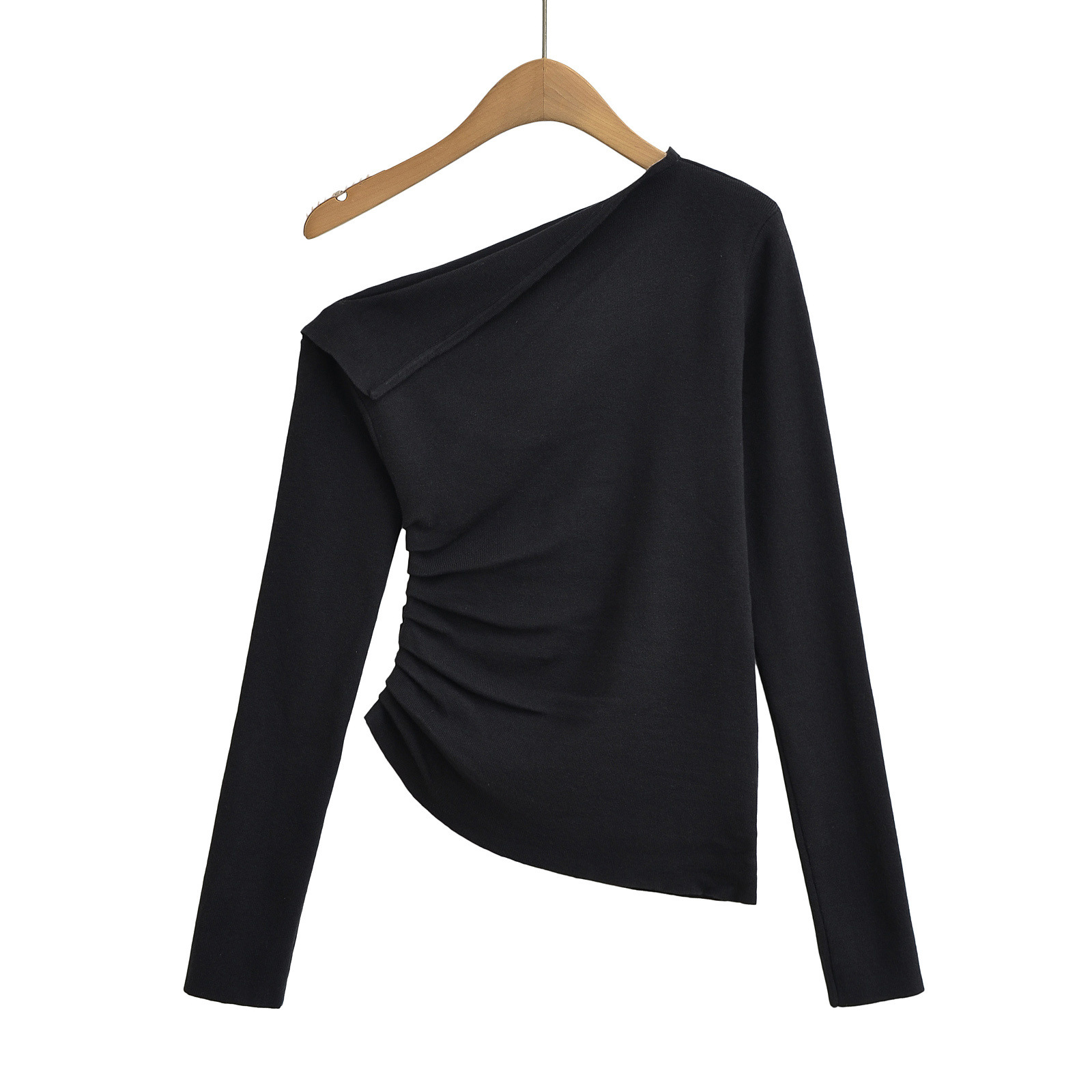 유행 간단한 순수한 긴팔 어깨 셔츠 여성 측면 주름 기본 셔츠 S21637