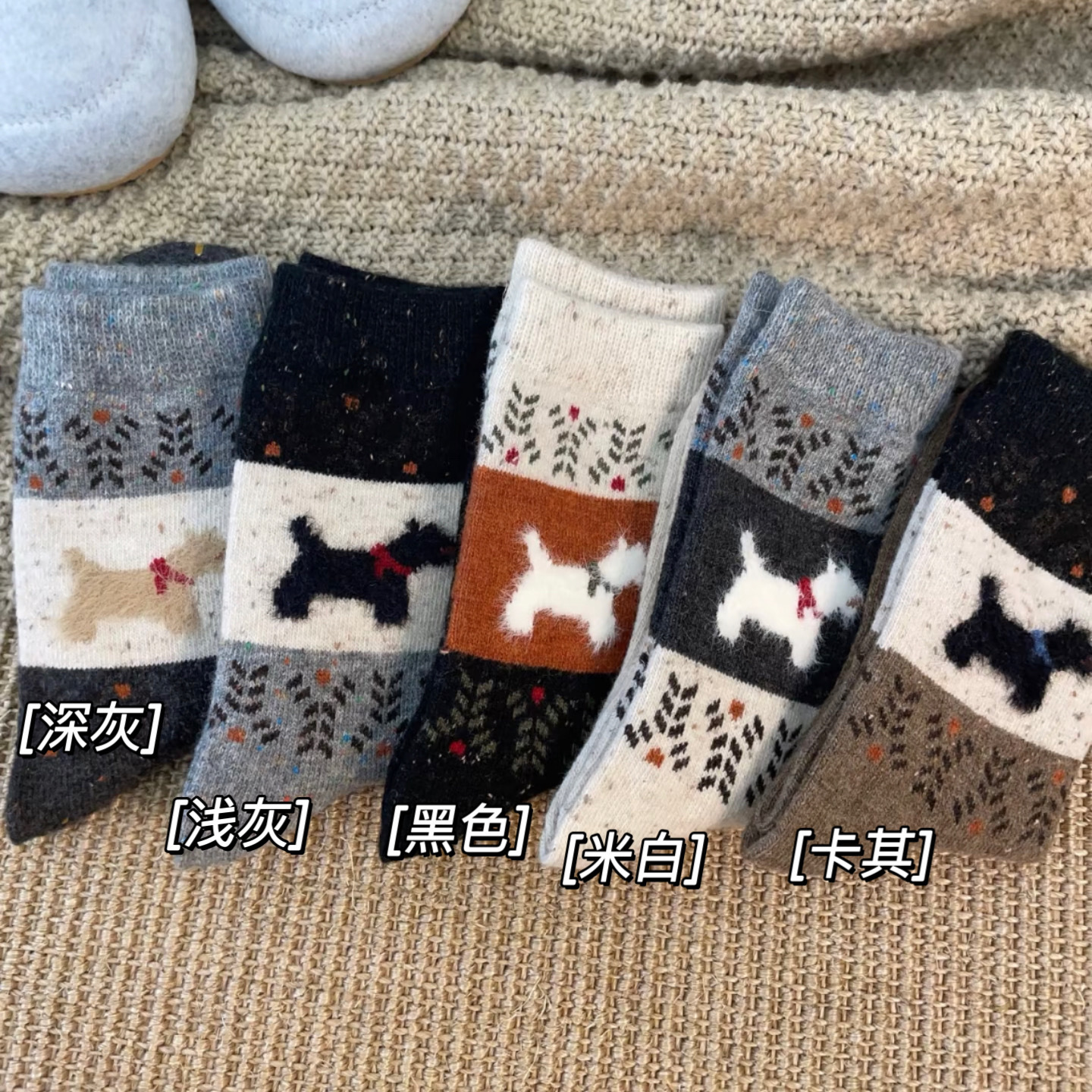 겨울 양말 여성용 미드 배럴 레트로 페어 아일랜드 강아지 울 양말 따뜻한 두꺼운 더미 양말 귀여운 여성용 양말스토어 가기