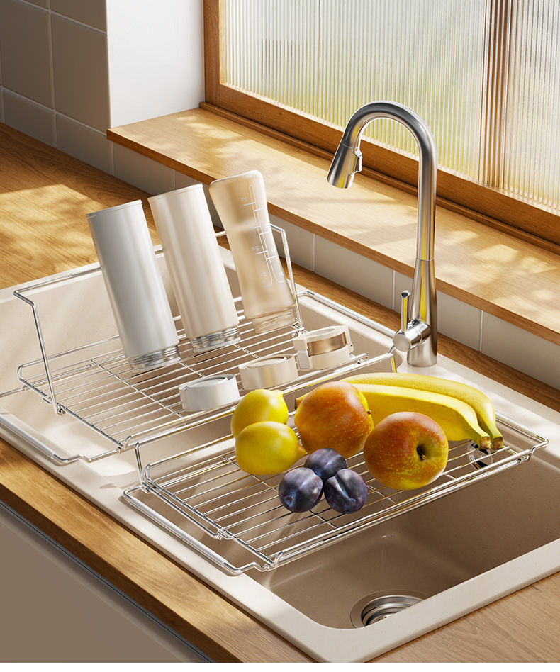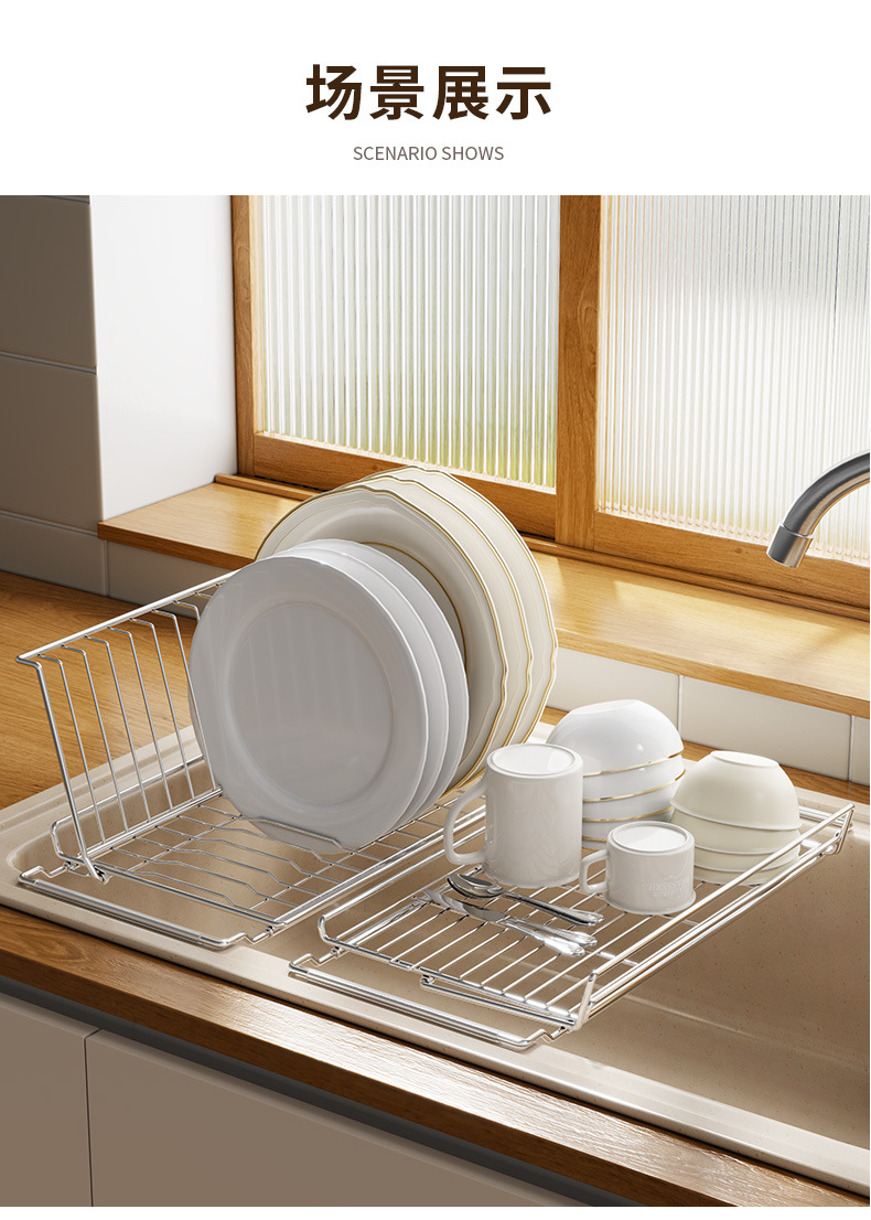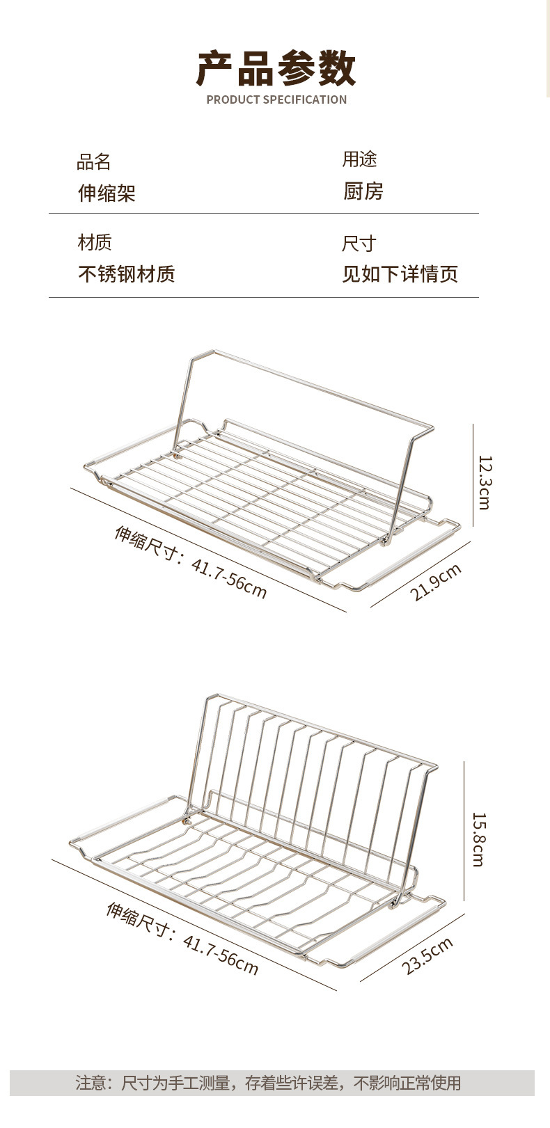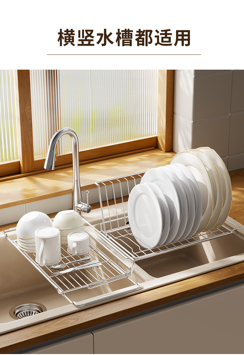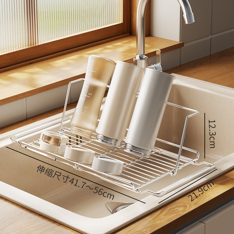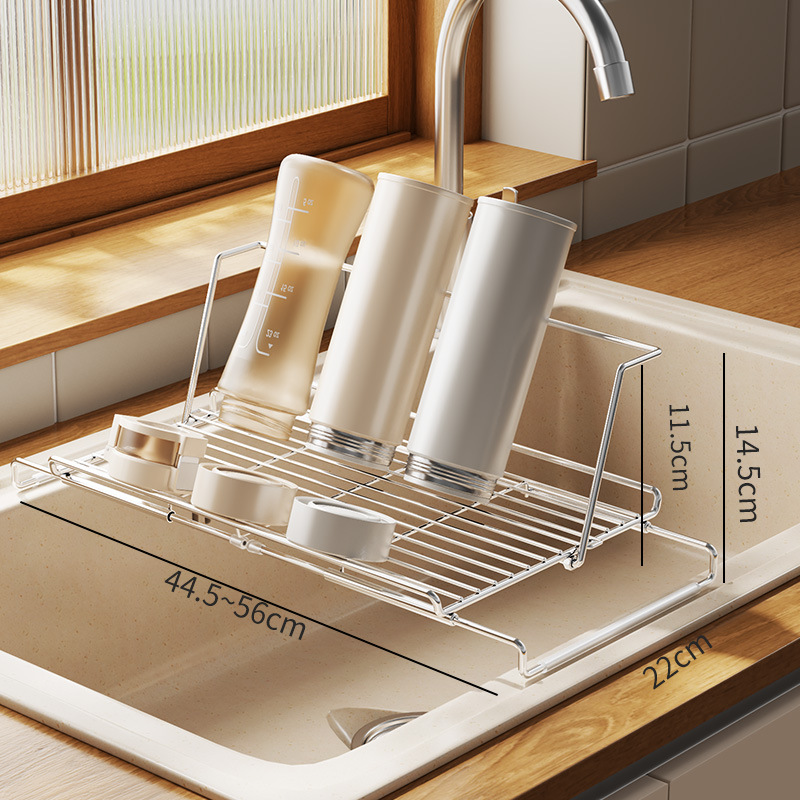간단한 스테인레스 스틸 크로스 보더 주방 접이식 텔레스코픽 싱크대 보관함 그릇 및 접시 배수 랙 가정용 접시 보관함스토어 가기