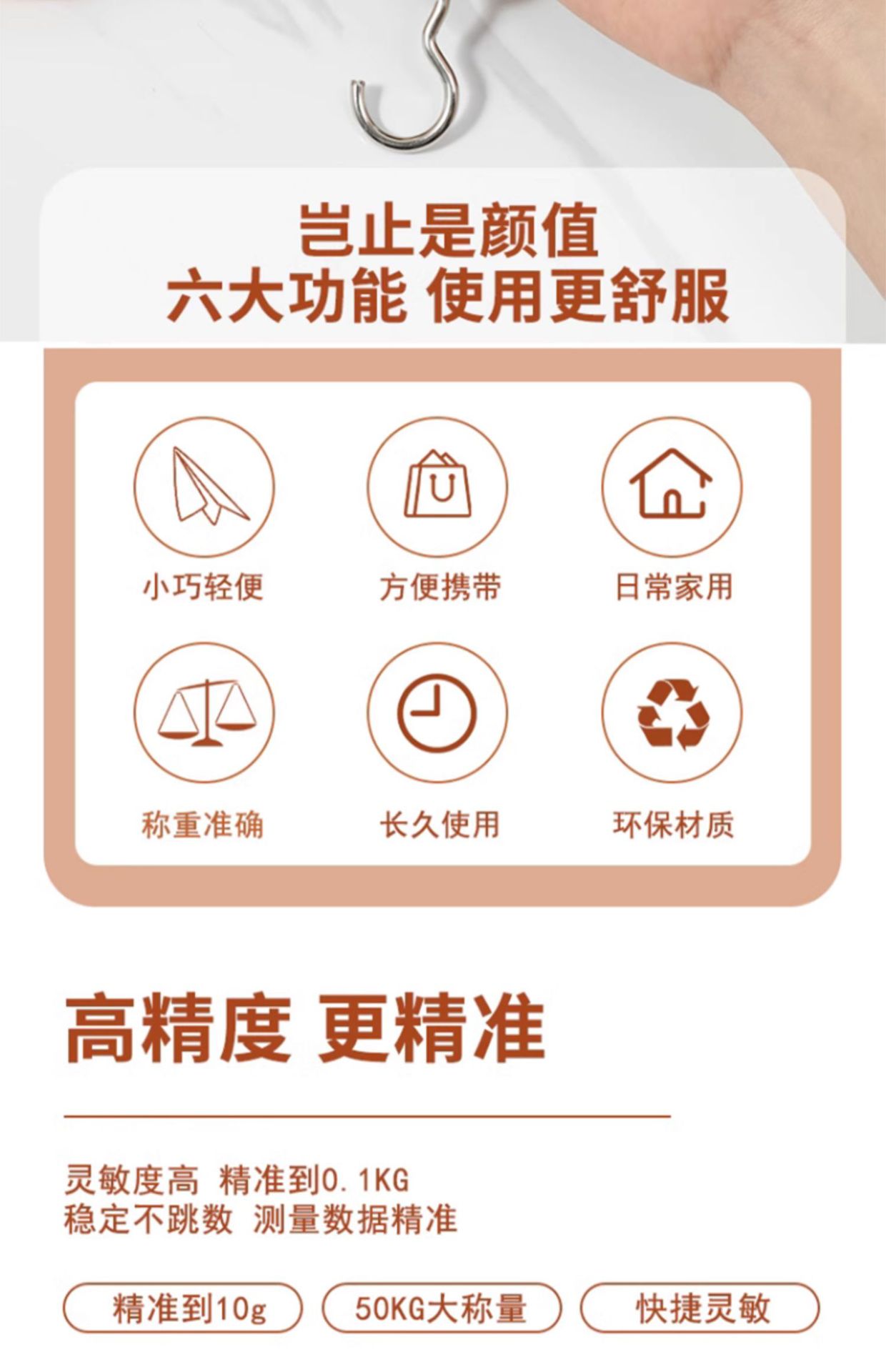 휴대용 가늠자 휴대용 높은 정밀도 전자 가늠자 휴대용 가구 50kg 음식과 무게를 위한 소형 급행 후크스토어 가기