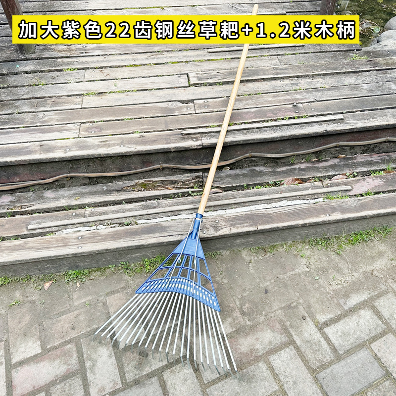• 22개 톱니 확대 보라색 강철 와이어 잔디 갈퀴 + 1.2 나무 손잡이 *기타*기타*기타