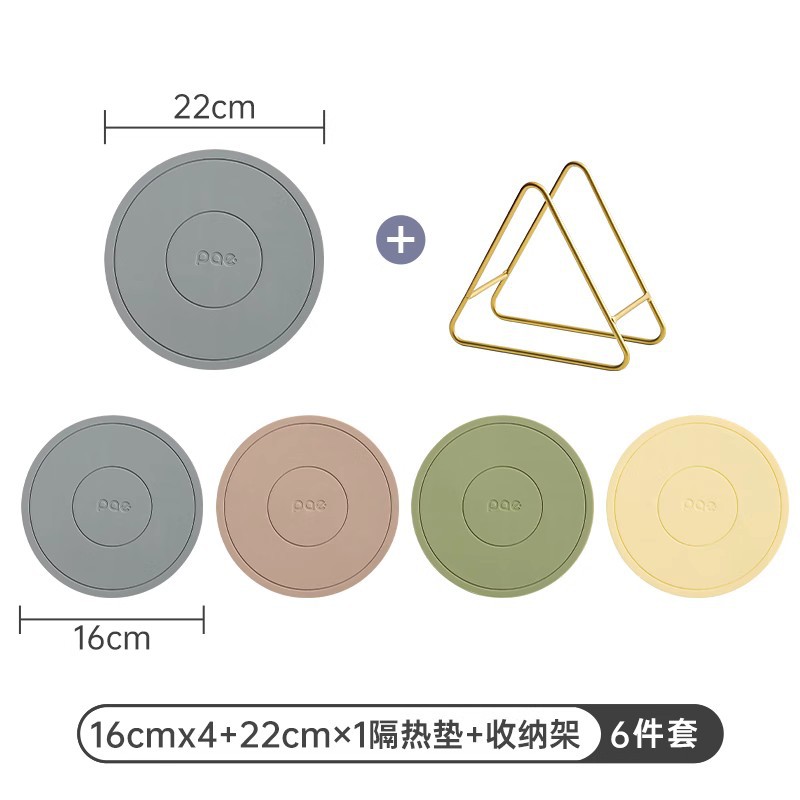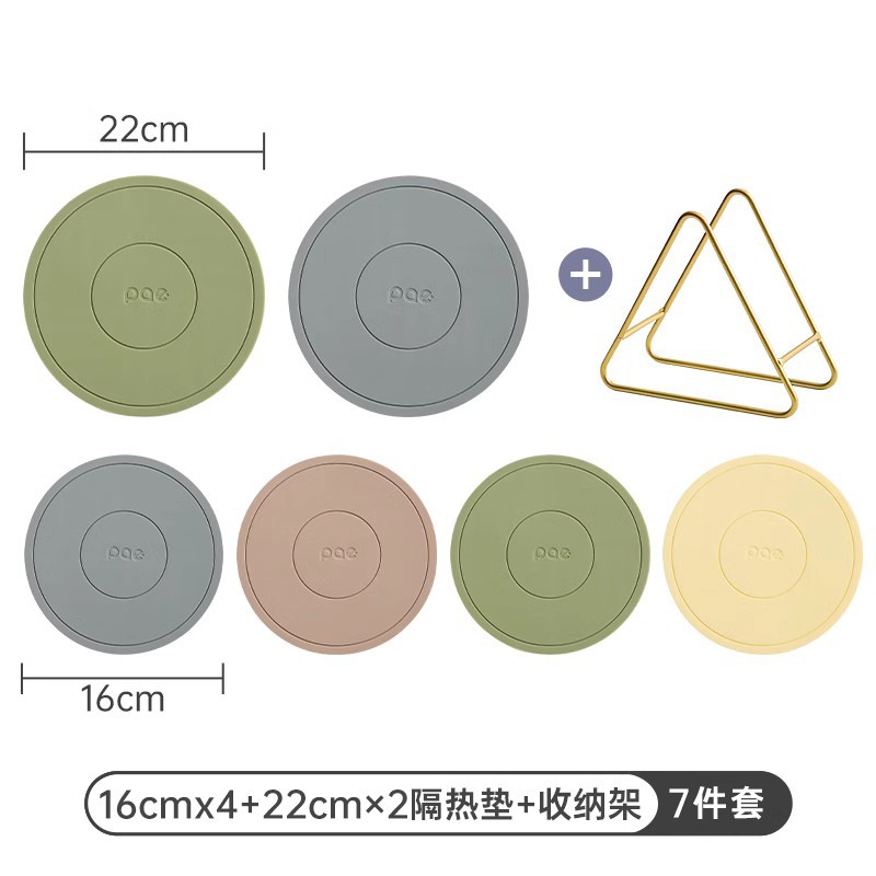 • 16cm 실리콘 단열 패드 6개 + 수납 선반 (회색*2 + 흰색*2 + 녹색*2) [독일 MilRonia 실리콘]♢