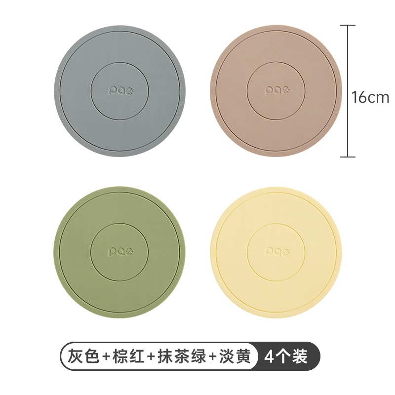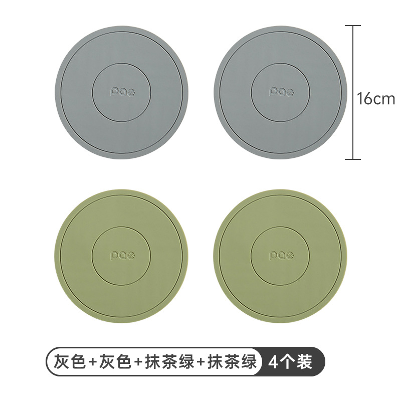 • 16cm 실리콘 단열 매트 4개 + 수납 선반 (회색*2 + 말차 그린*2) [독일 MilRonia 실리콘]♢