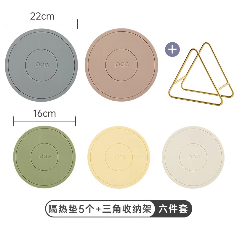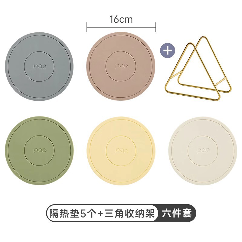 • 16cm 실리콘 단열 패드 5개 + 수납 선반 (회색+녹색+빨간색+노란색+흰색) [독일 MilRonia 실리콘]♢