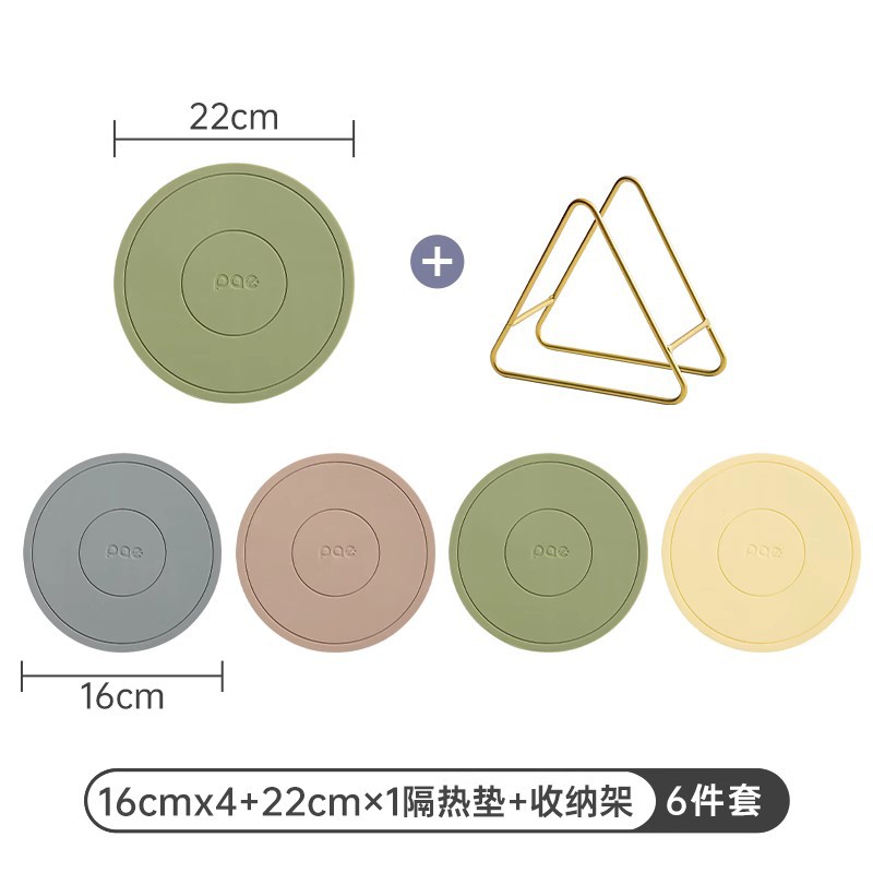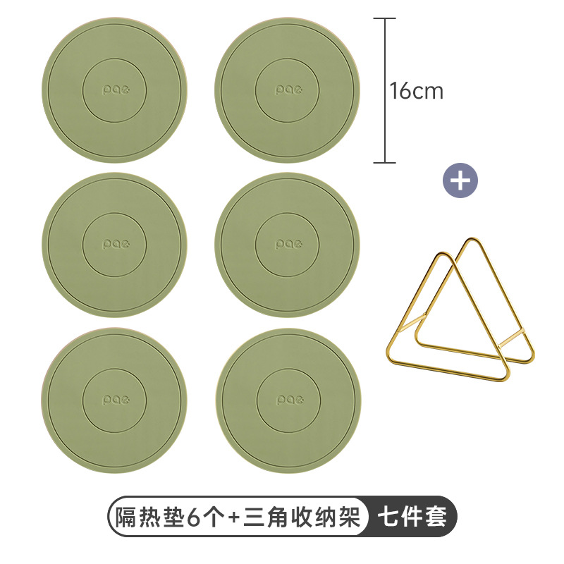 • 16cm 실리콘 단열 패드 6개 + 수납 선반 (말차 그린*6) [독일 MilRonia 실리콘]♢