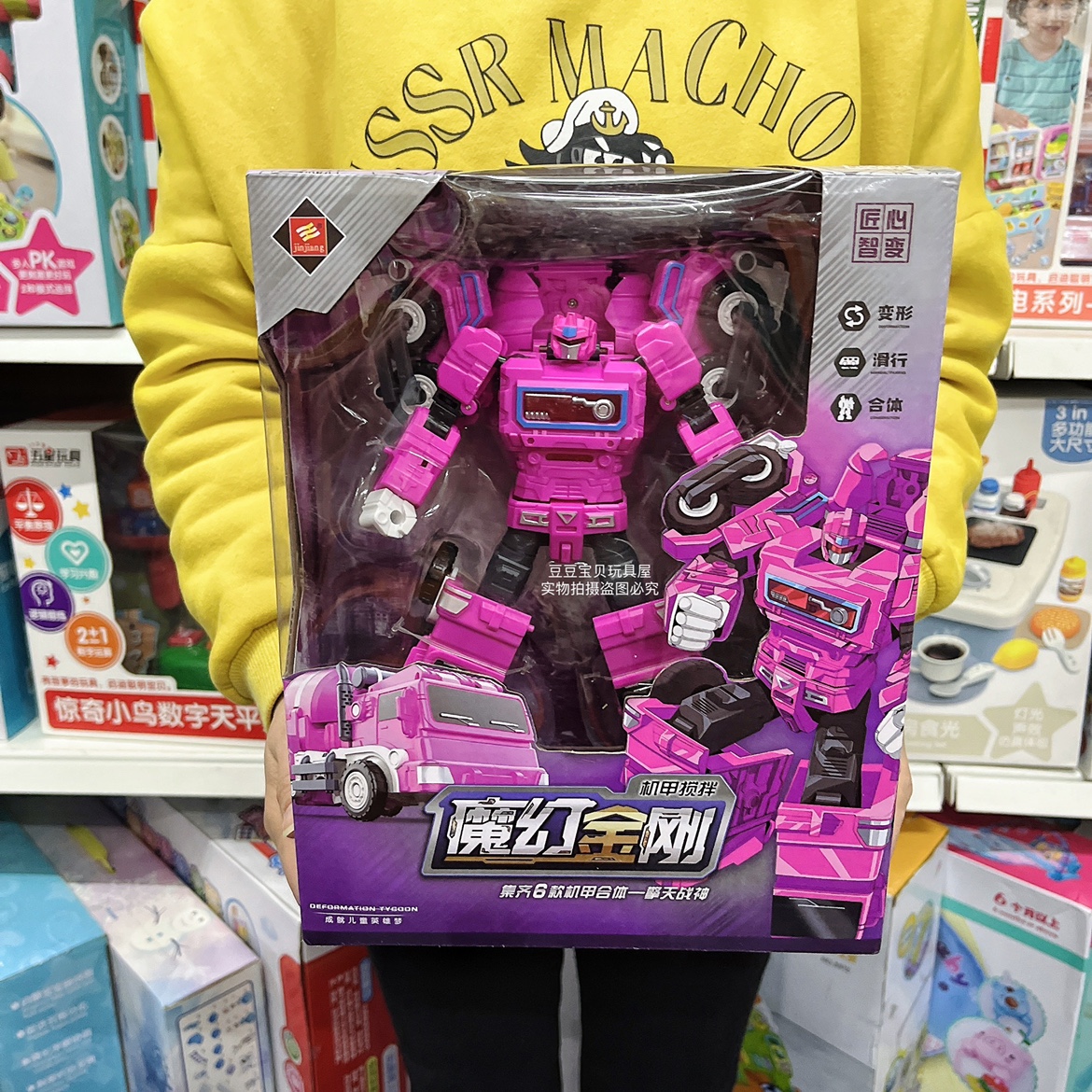Jinjiang Magic King Kong Optimus God of War 6 피트 메카 변형 합금 7 로봇 8 엔지니어링 차량 9 소년 장난감스토어 가기