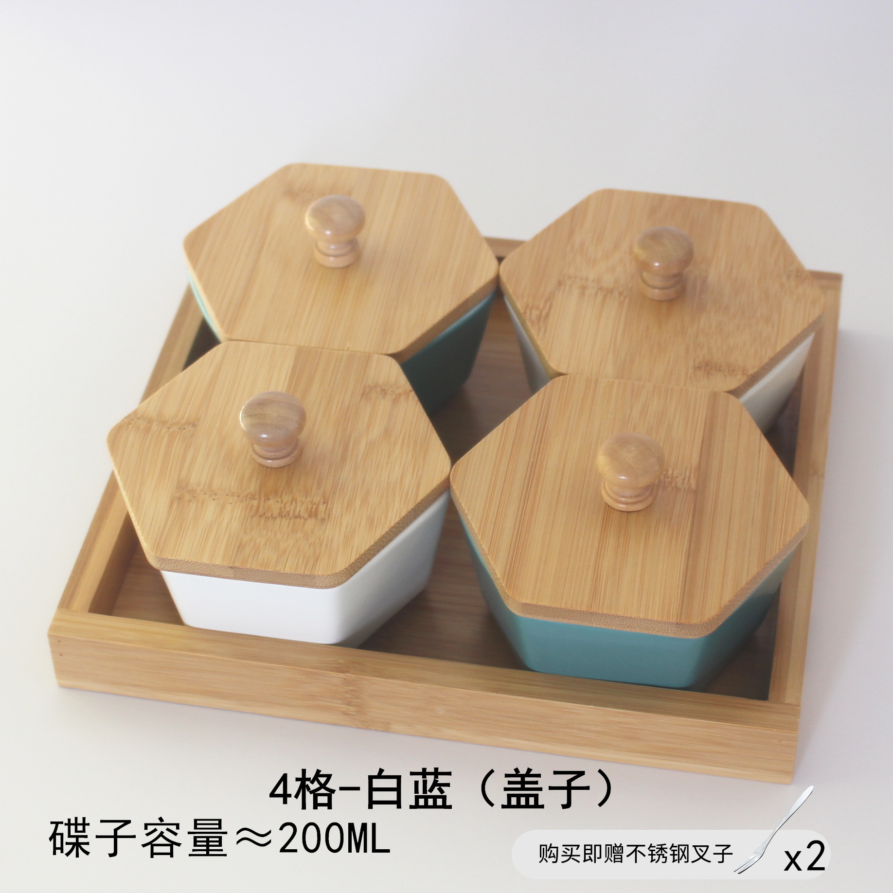 • 뚜껑 - 4칸 간식 트레이 육각 접시 - 화이트 & 블루♢