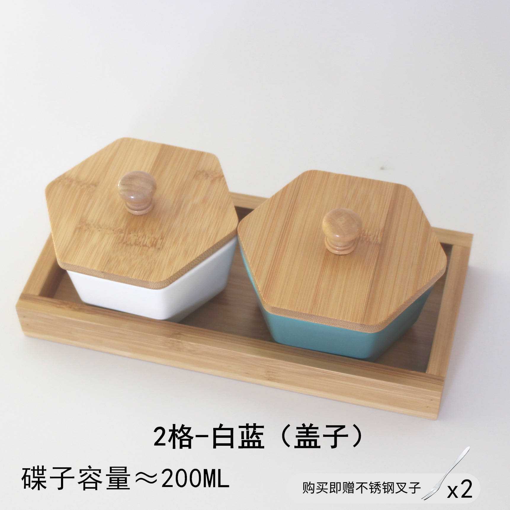 • 뚜껑 - 2칸 간식 트레이 육각 접시 - 화이트 & 블루♢