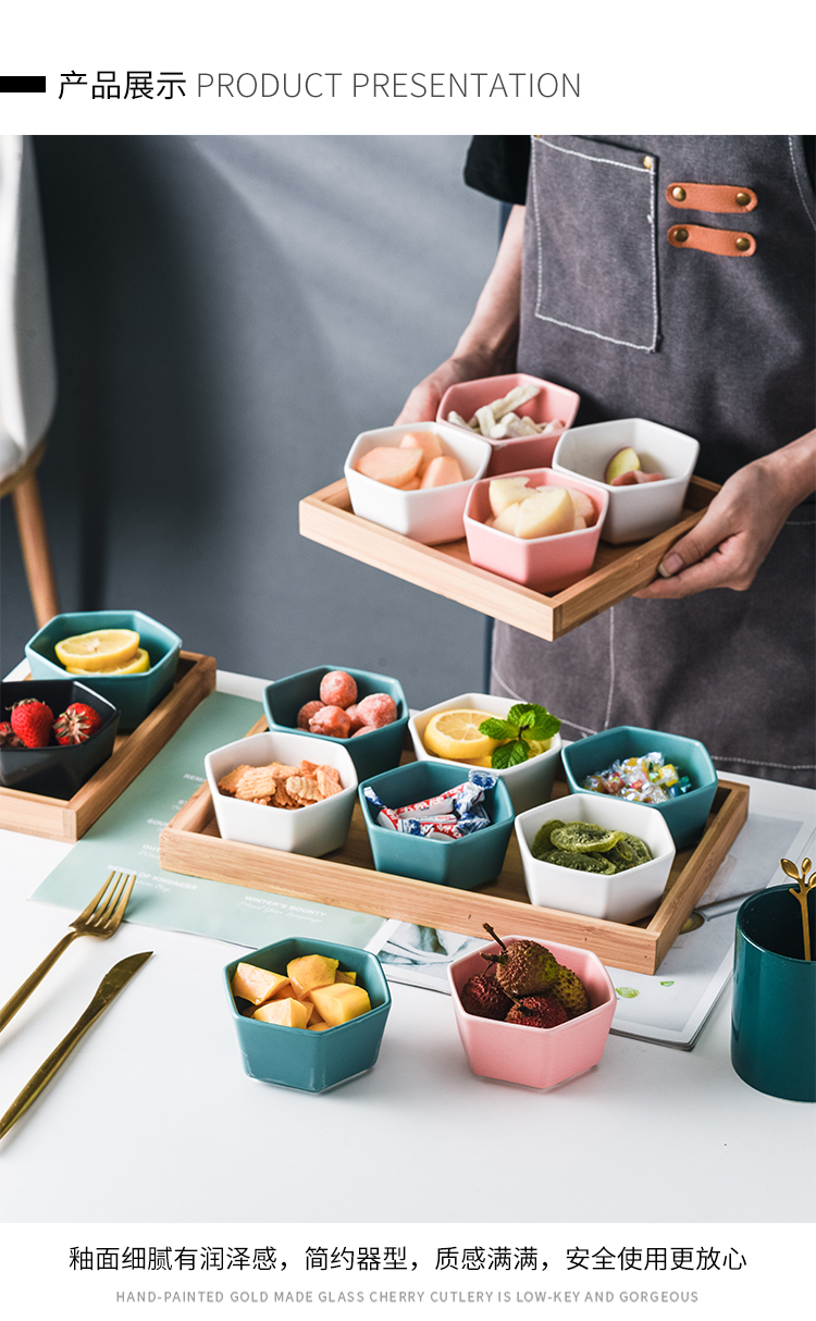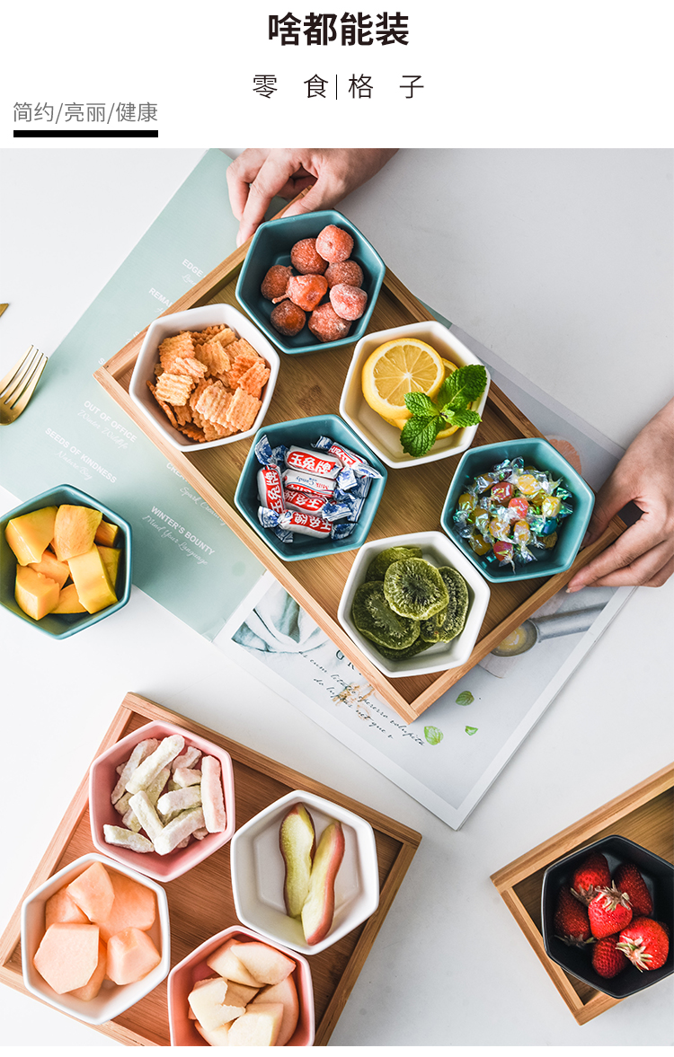 6 각형 그리드 플레이트 스낵 플레이트 세라믹 과일 플레이트 ktv 스낵 플레이트 B & B 오븐 요리 스낵 플레이트 바 Jue Qin