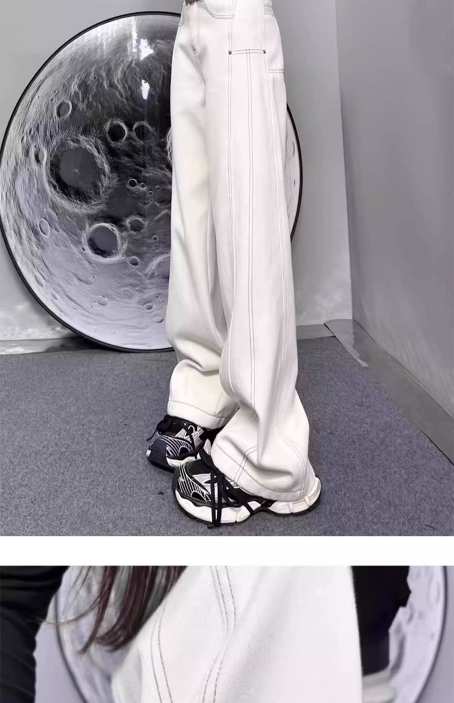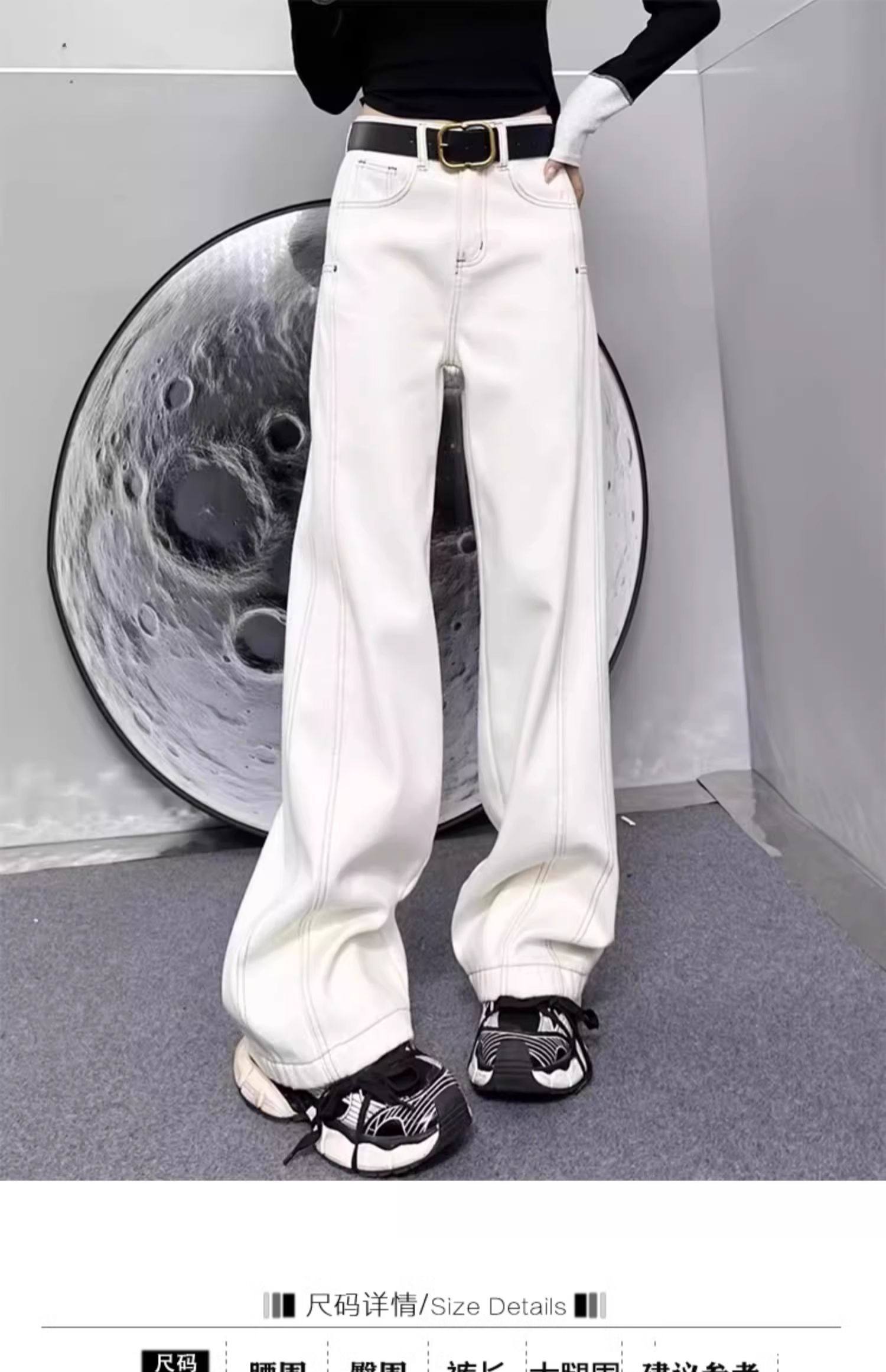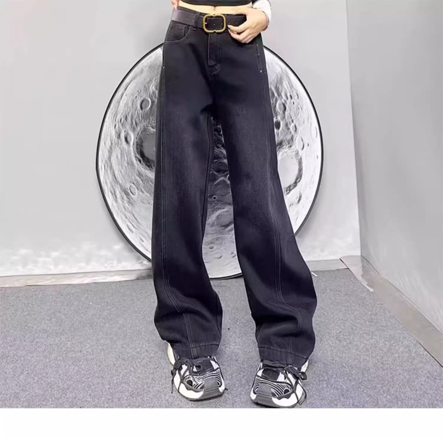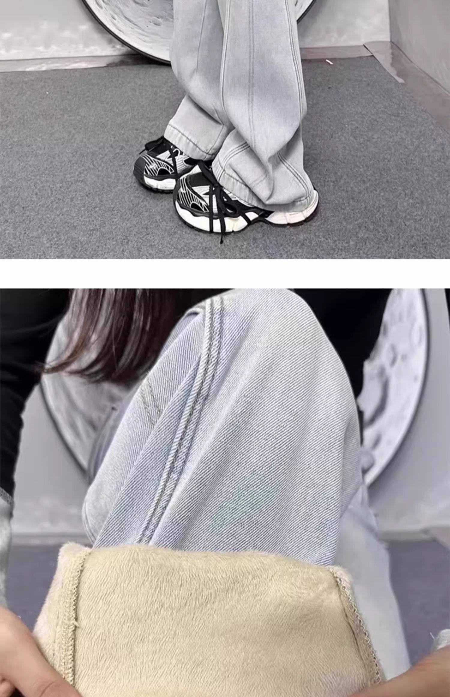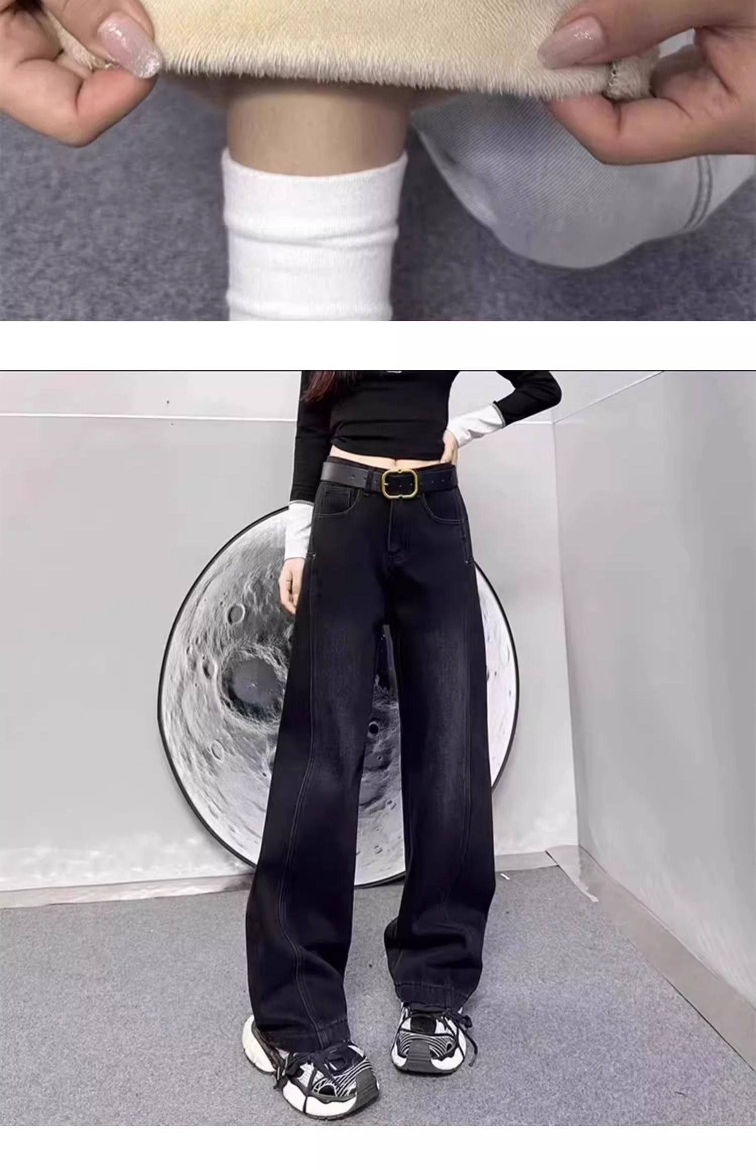여성용 플러스 사이즈 벨벳 두꺼운 하이 웨이스트 스트레이트 청바지 2024 가을 겨울 뚱뚱한 mm 루즈하고 다재다능한 슬리밍 와이드 레그 팬츠스토어 가기