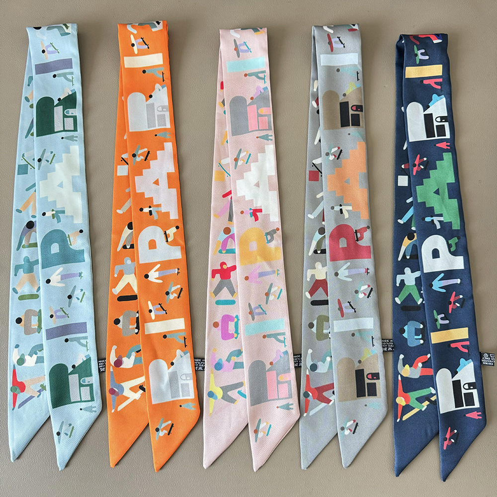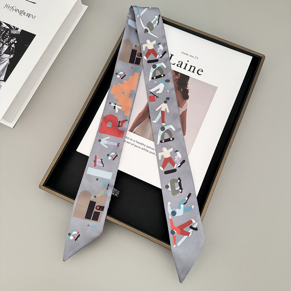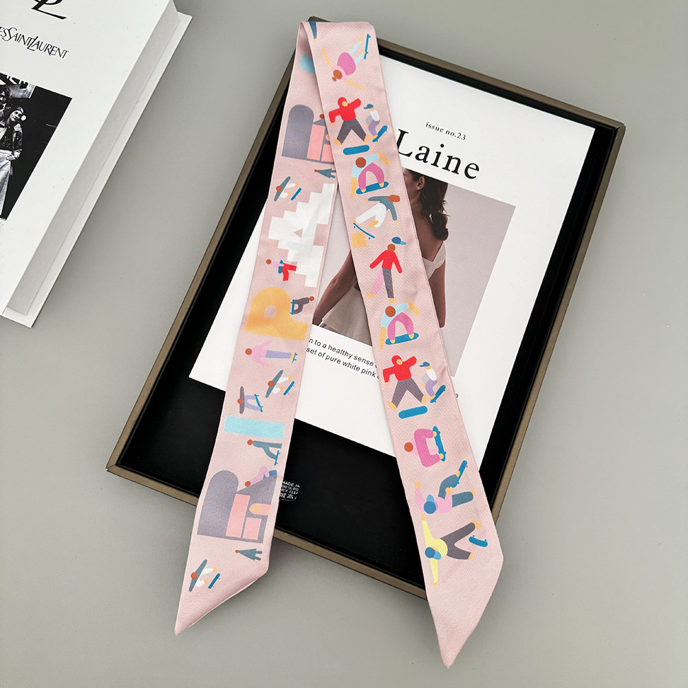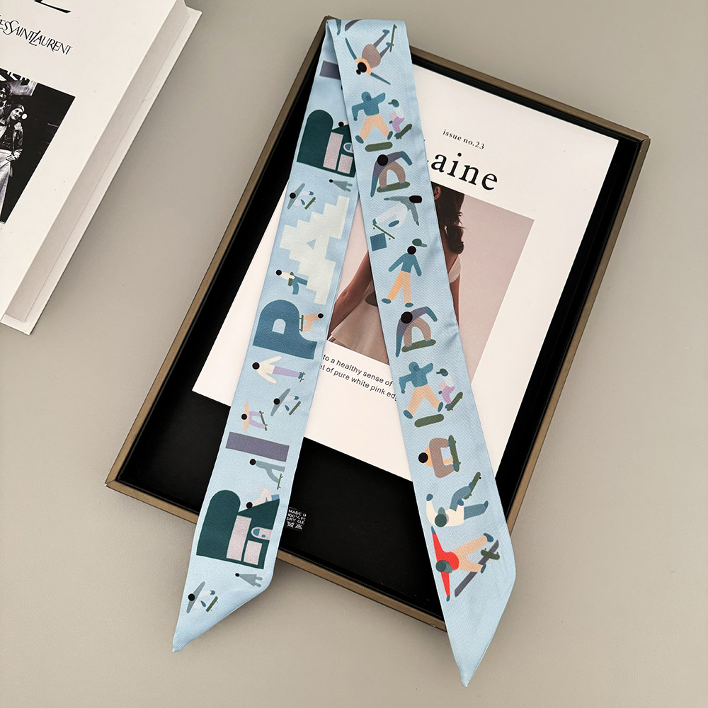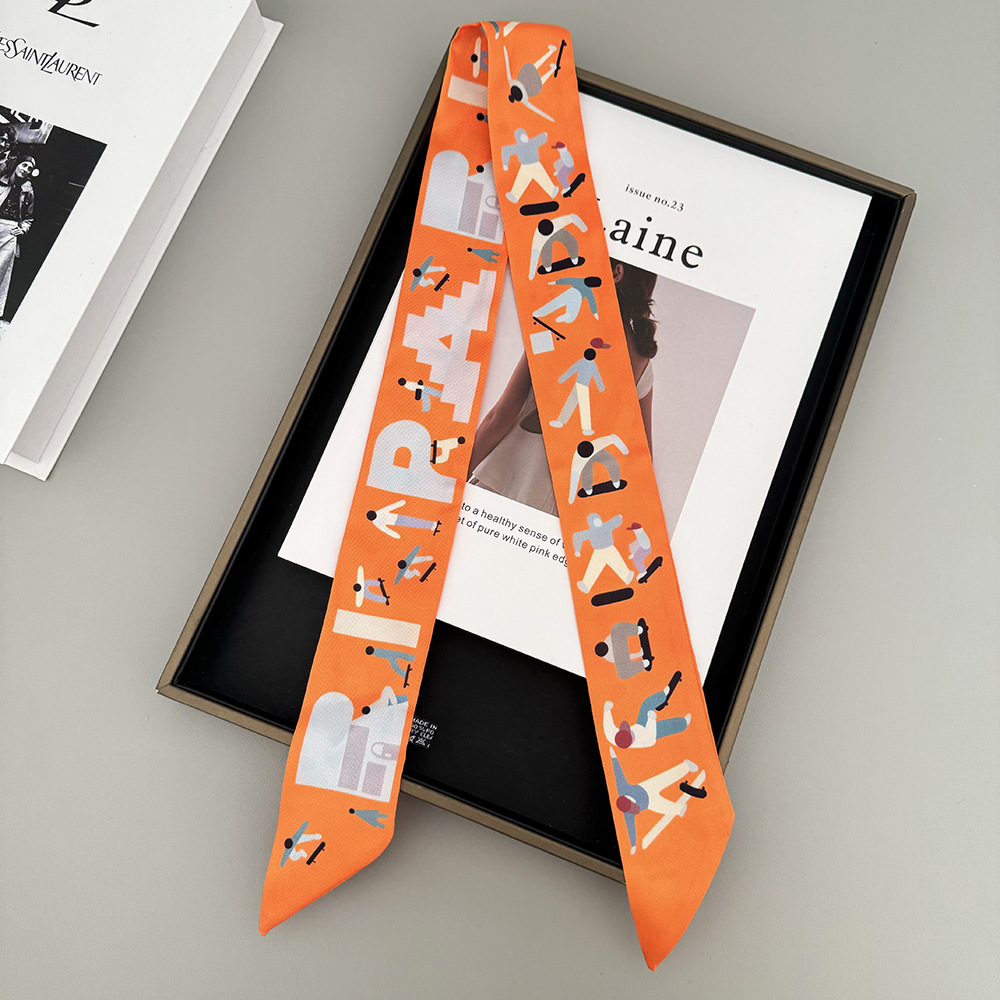 H 무료 자세 실크 스카프 실크 스카프 고급 센스 헤어 밴드 포장 가방 작은 긴 리본 스카프