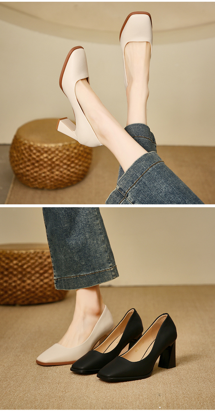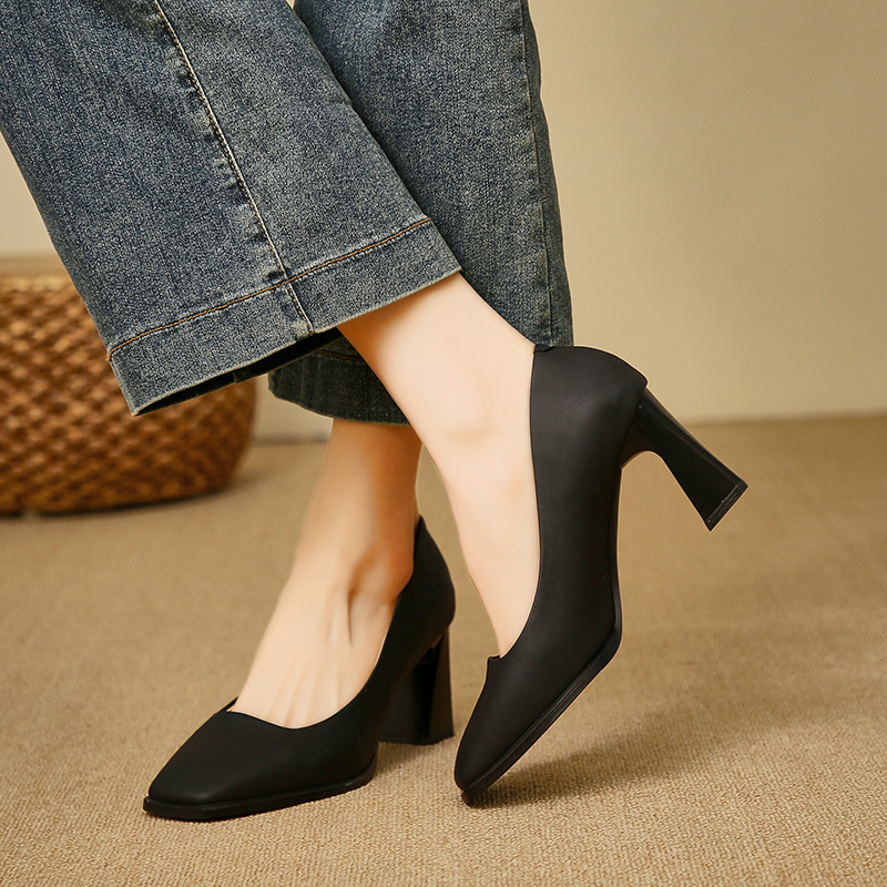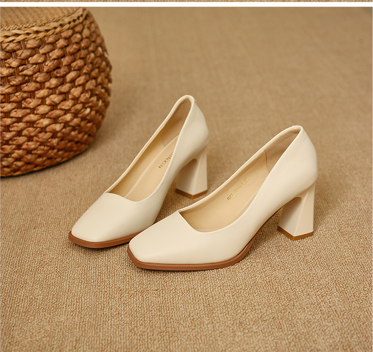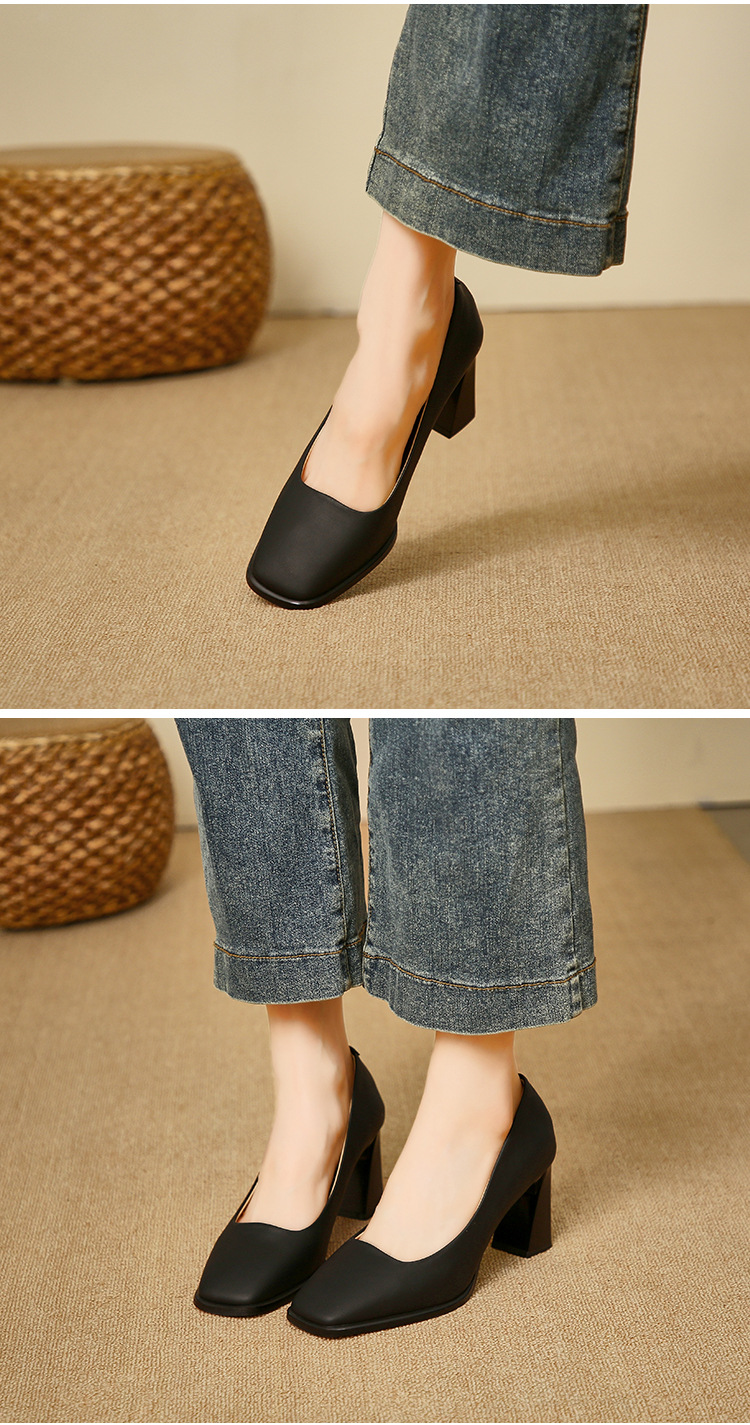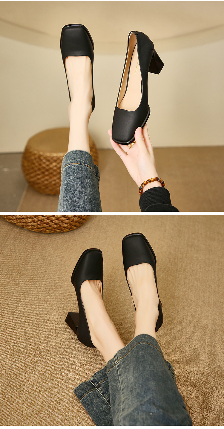 전문 OL 스퀘어 헤드 블랙 하이힐 2024 봄 새로운 기질 숙녀 중간 뒤꿈치 작업 신발 두꺼운 뒤꿈치 도매스토어 가기