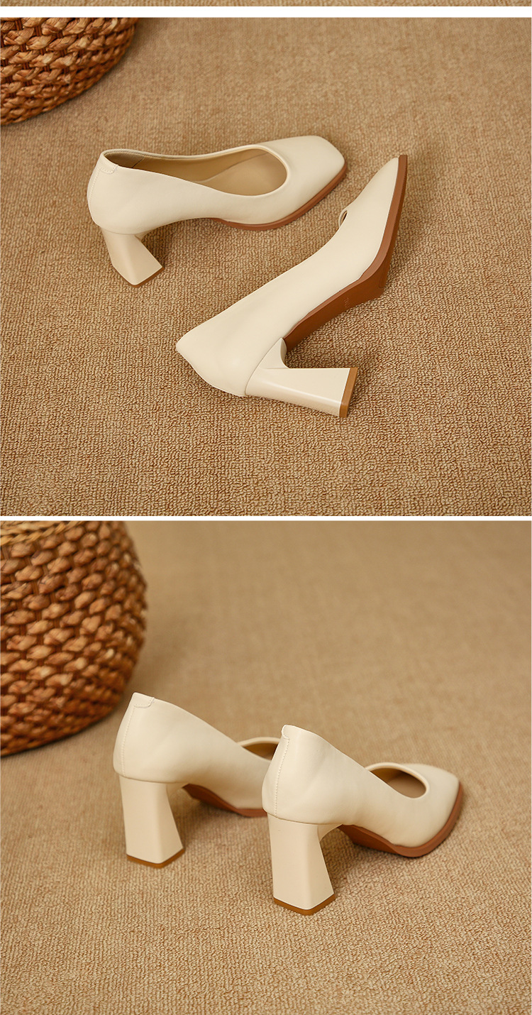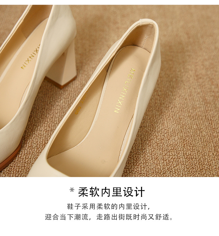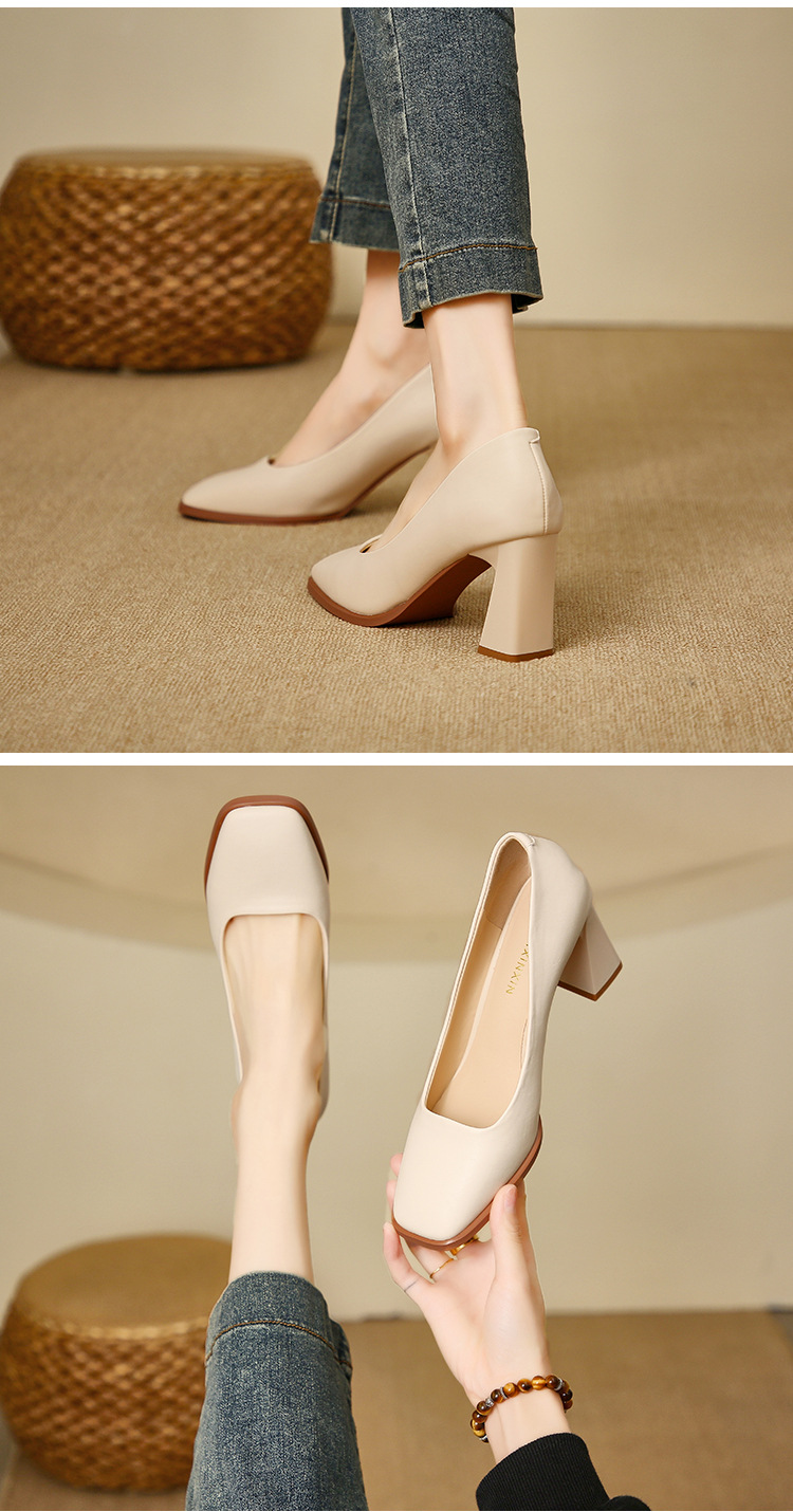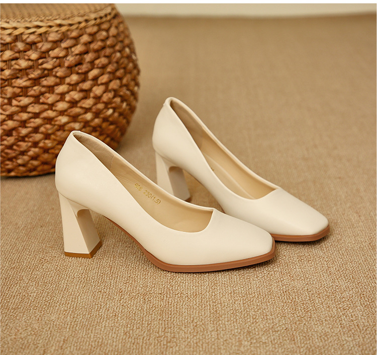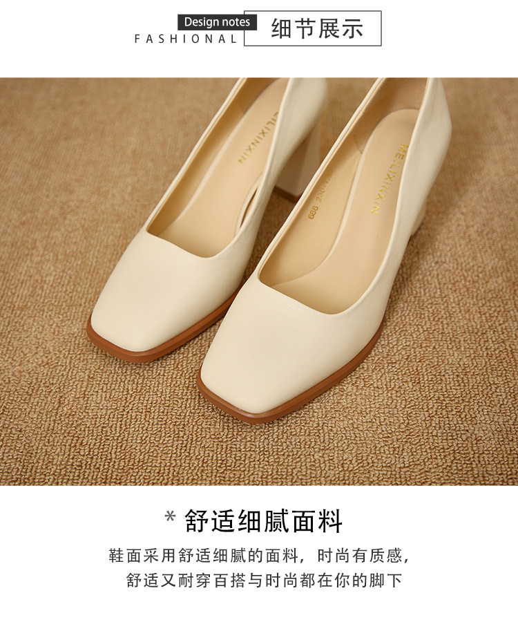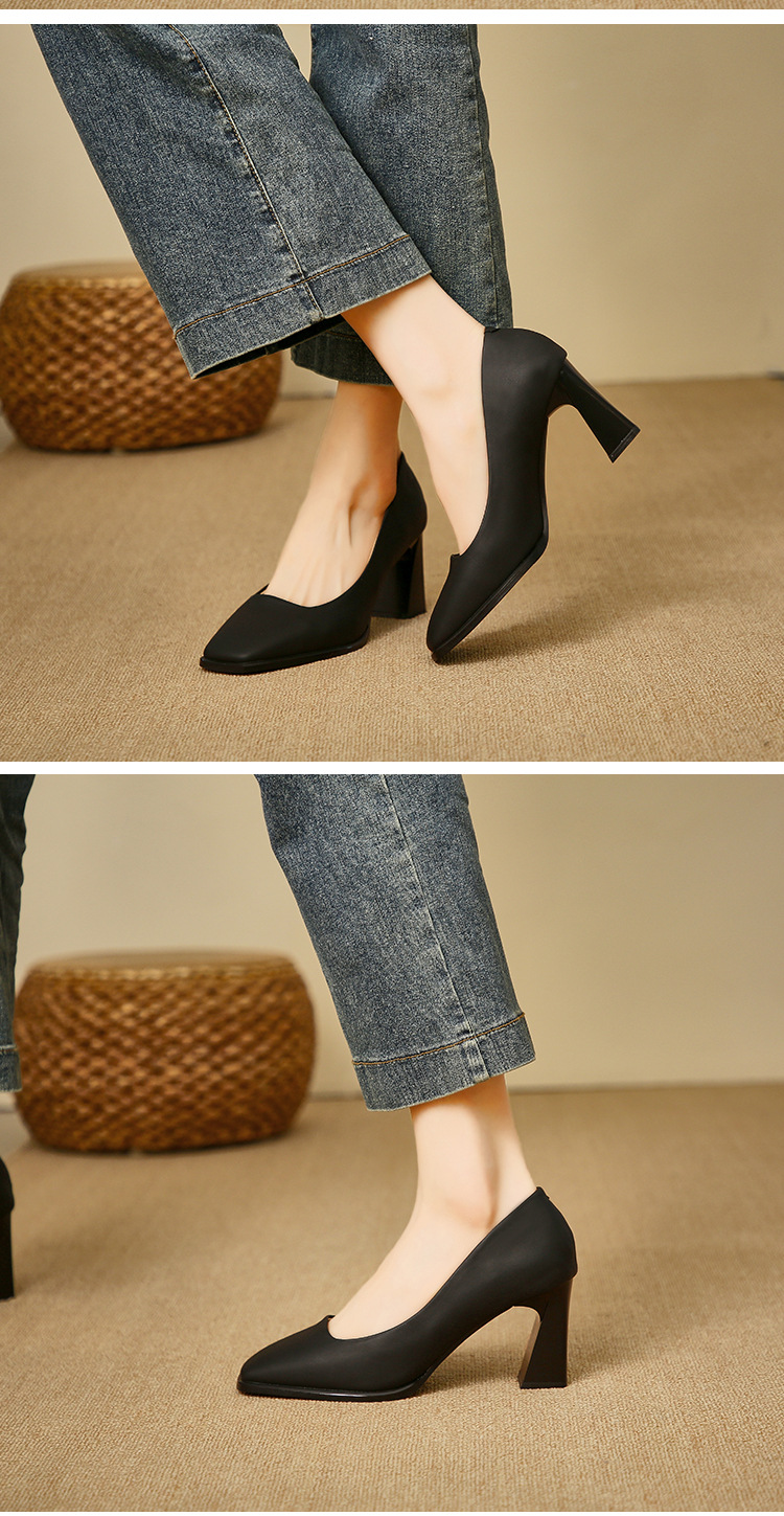 전문 OL 스퀘어 헤드 블랙 하이힐 2024 봄 새로운 기질 숙녀 중간 뒤꿈치 작업 신발 두꺼운 뒤꿈치 도매스토어 가기