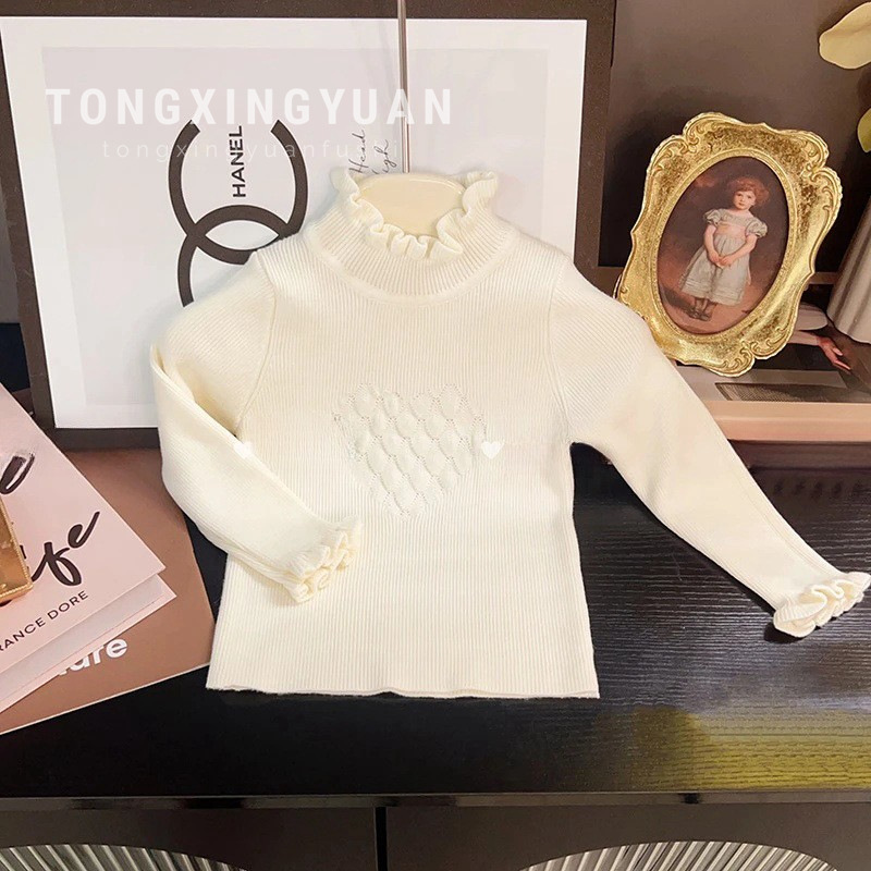 한국 스타일 아동복 2025 새로운 가을 겨울 여아용 세련된 니트 스웨터, 하프 터틀넥 스웨터, 아동용 다용도 베이스 레이어 스웨터