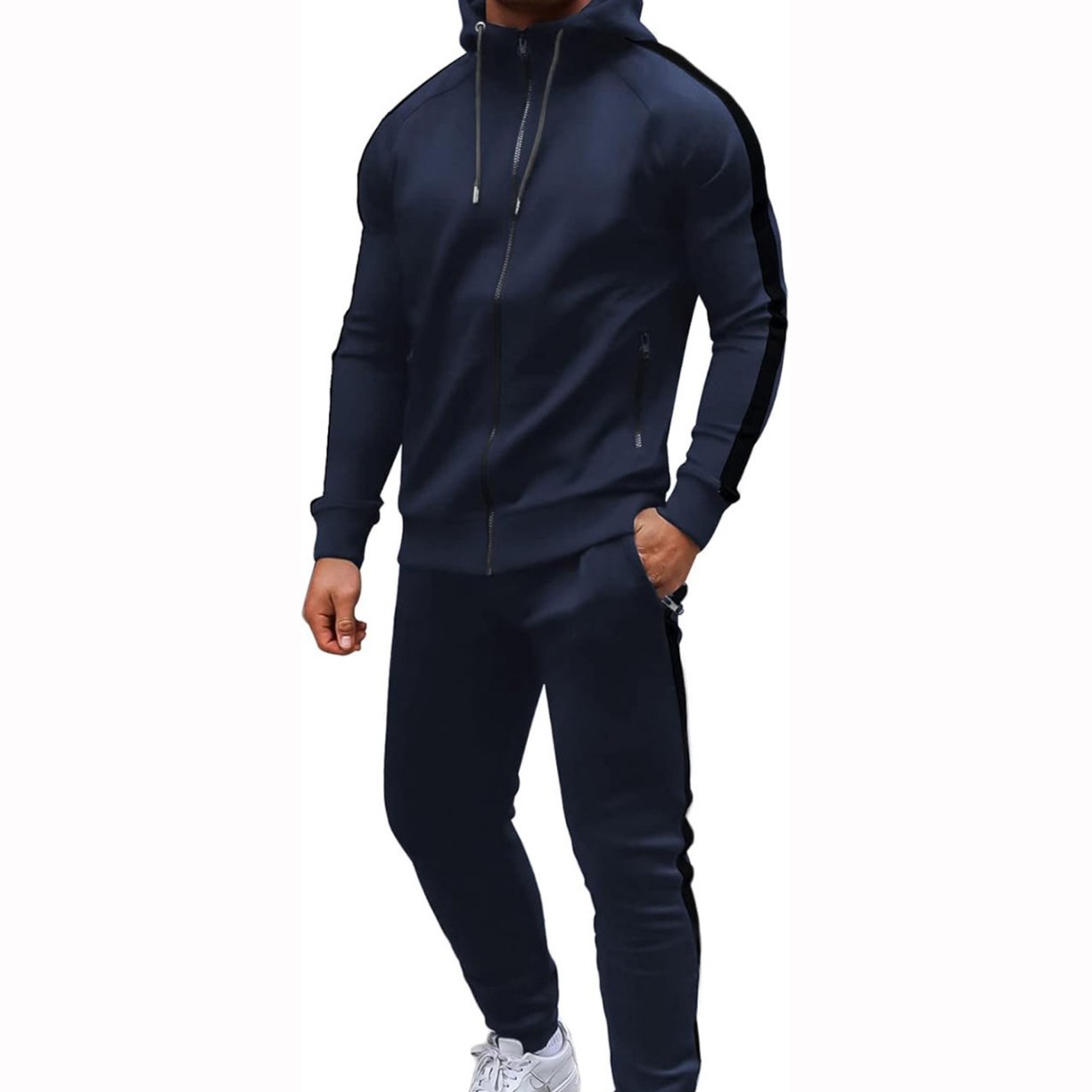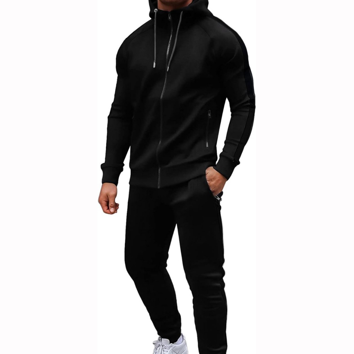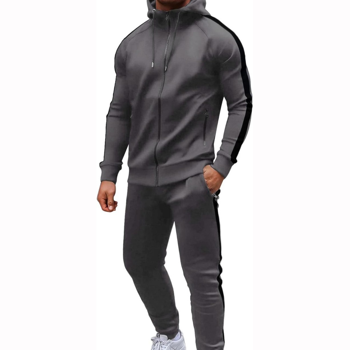 유럽과 미국의 남성 캐주얼 스포츠 세트 패션 지퍼 후드 재킷 피트니스 바지 남녀 달리기 2 피스 세트스토어 가기
