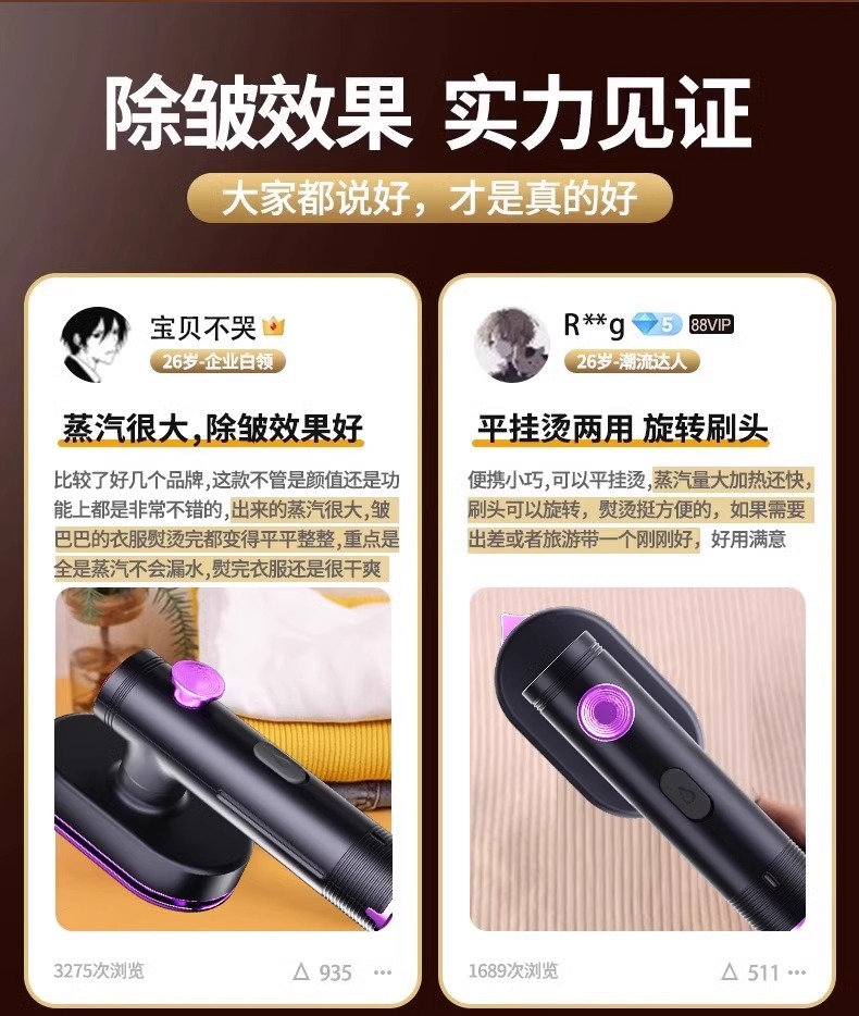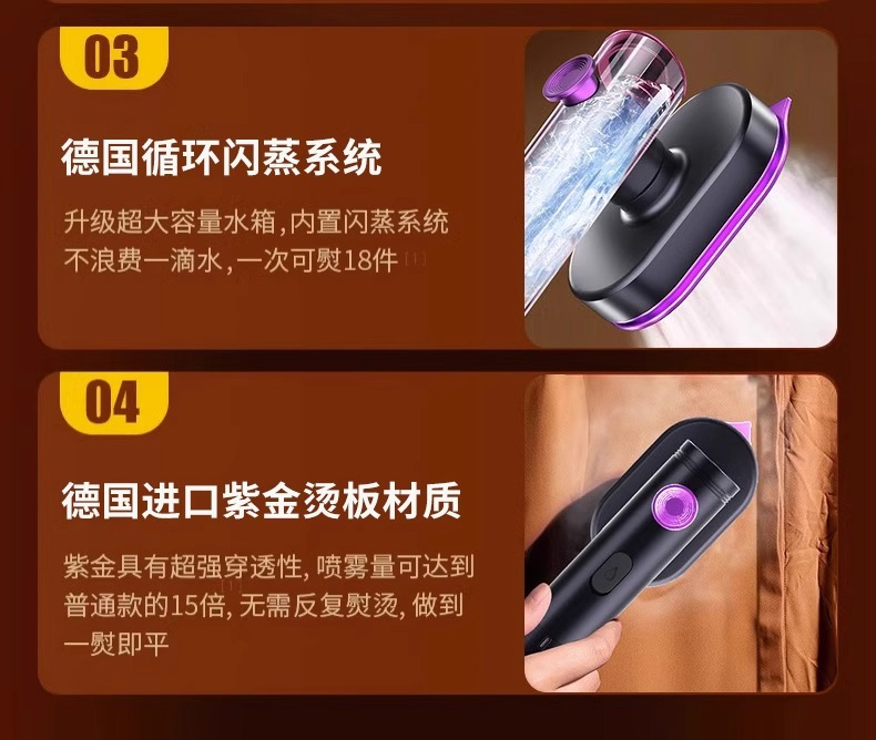 • [상위 버전|노블 퍼플】1초 만에 주름 제거★매달아 다림질★플랫 다림질★습식 및 건식 사용★1회 다림질 20개★가열 속도 향상