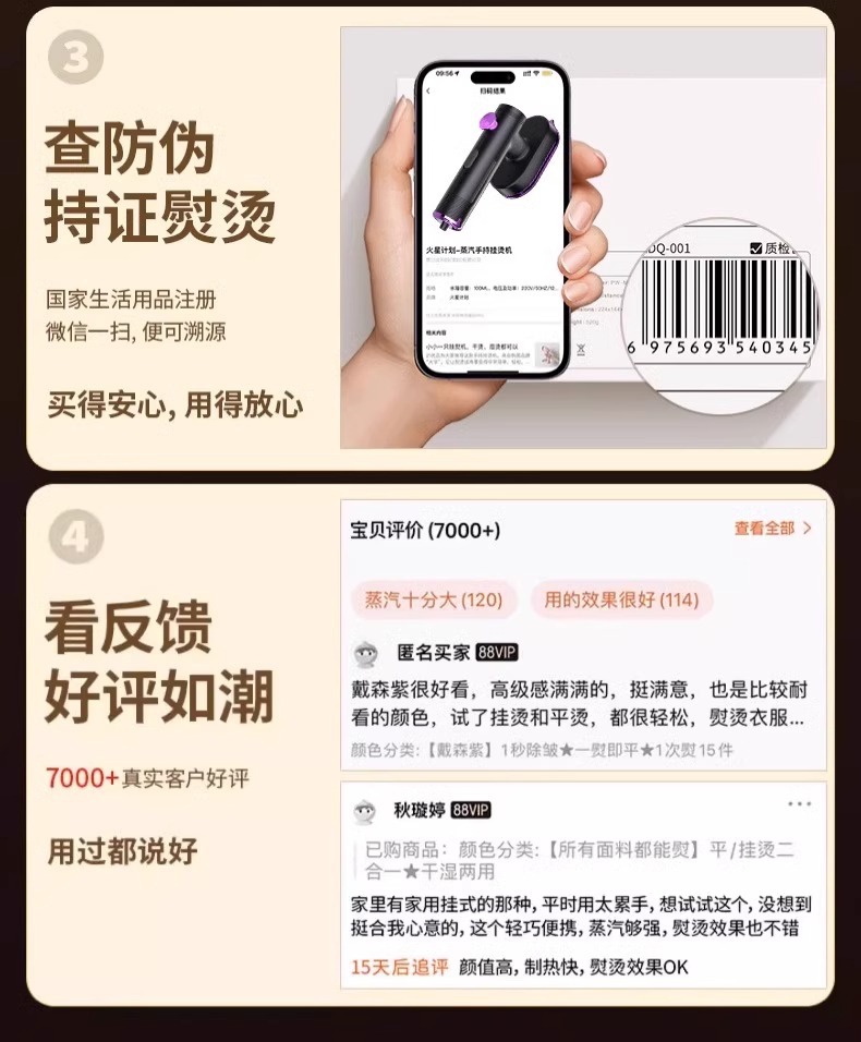 • 【전용 모델|아이보리 화이트] 1초 만에 주름 제거★매달아 다림질★플랫 다림질★습식 및 건식 사용★1회 다림질 18개