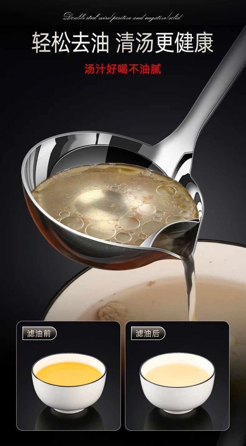 독일 304 스테인레스 스틸 오일 분리기 스푼 가정용 수프 스푼 오일 필터 아티팩트 긴 핸들 오일 수프 분리기 스푼 오일 스푼