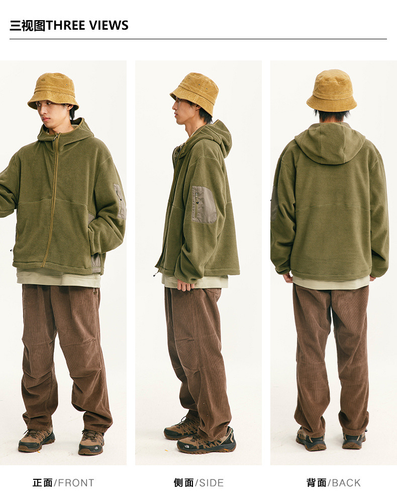 양털 스웨트 셔츠 남자의 가을과 겨울 코튼 재킷 야외 스포츠 솔리드 컬러 느슨한 후드 하이 칼라 램 울 재킷스토어 가기