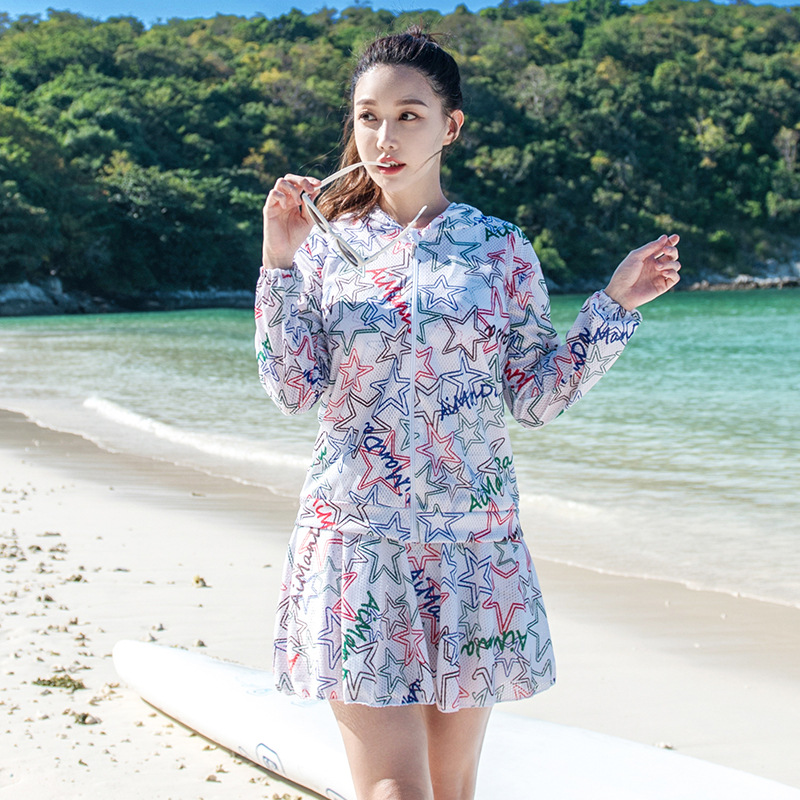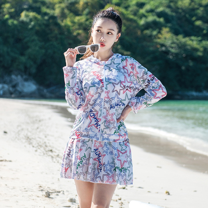 플러스 사이즈 긴 소매 새로운 패션 스포츠 높은 허리 플랫 앵글 분할 수영복 비치 수영복 온천 수영복
