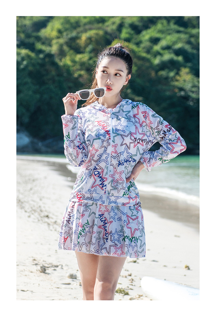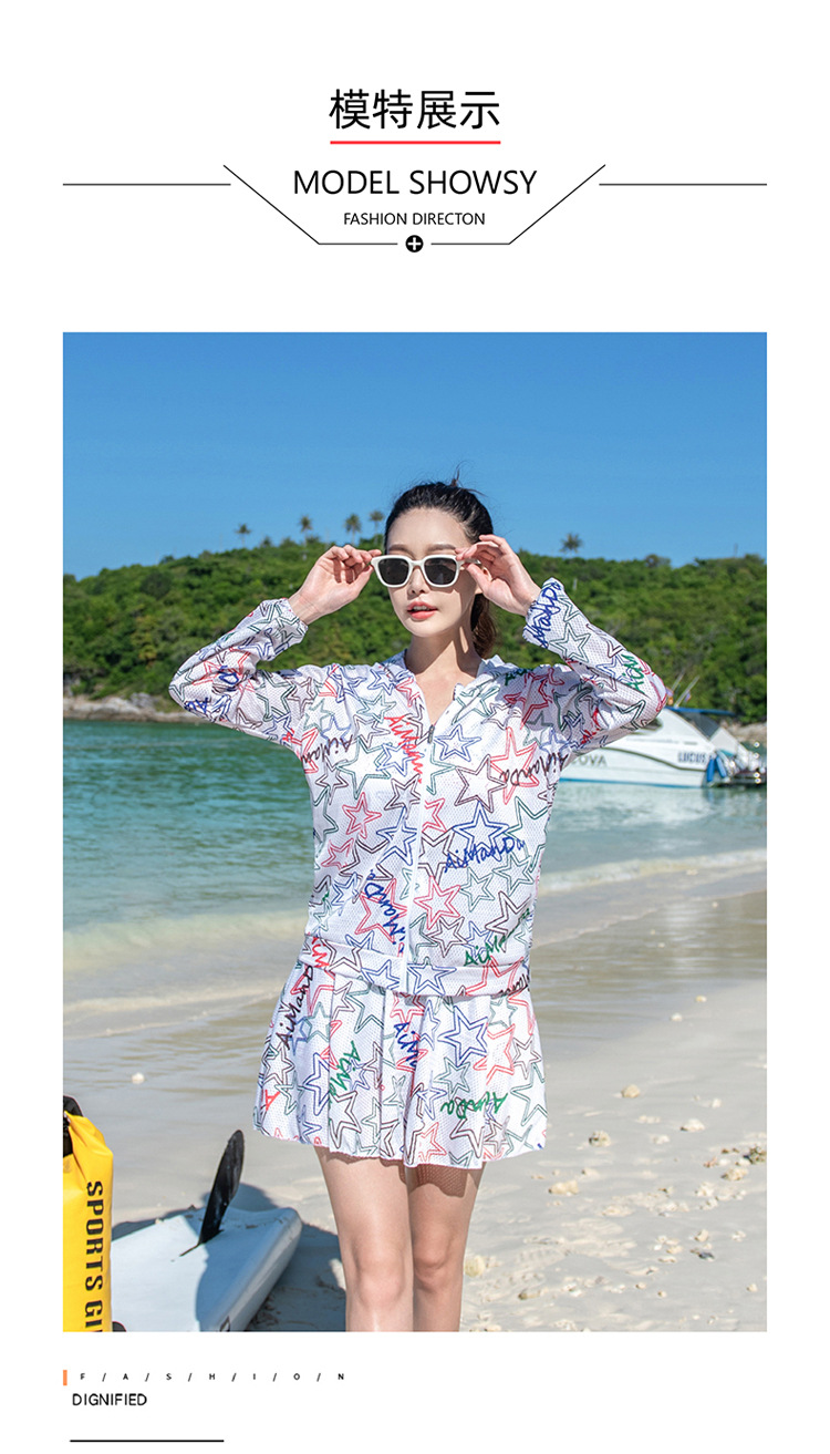 플러스 사이즈 긴 소매 새로운 패션 스포츠 높은 허리 플랫 앵글 분할 수영복 비치 수영복 온천 수영복스토어 가기
