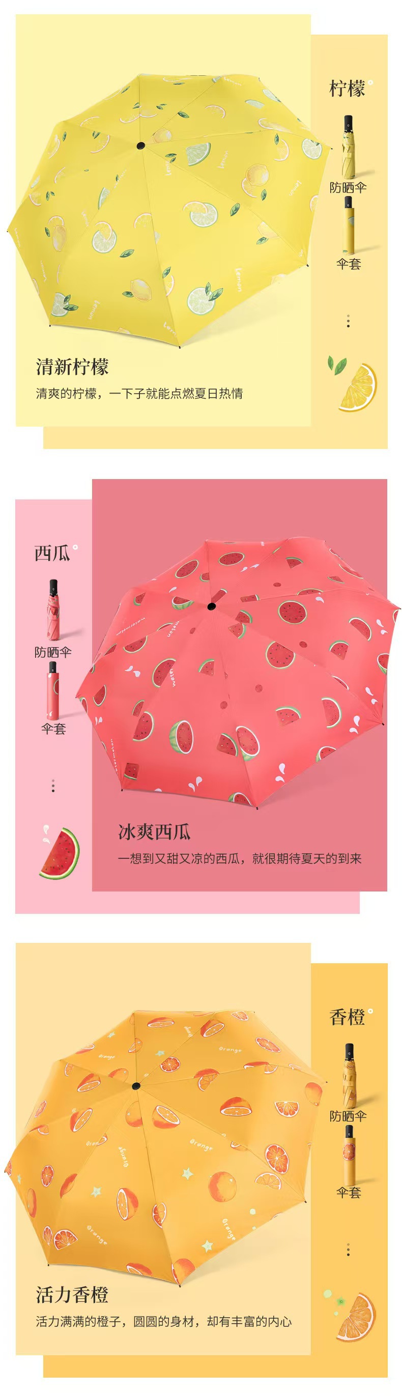 과일 우산 도매 완전 자동 접히는 학생 햇빛과 비 이중 사용 여성 안티 UV 태양 우산 햇살스토어 가기