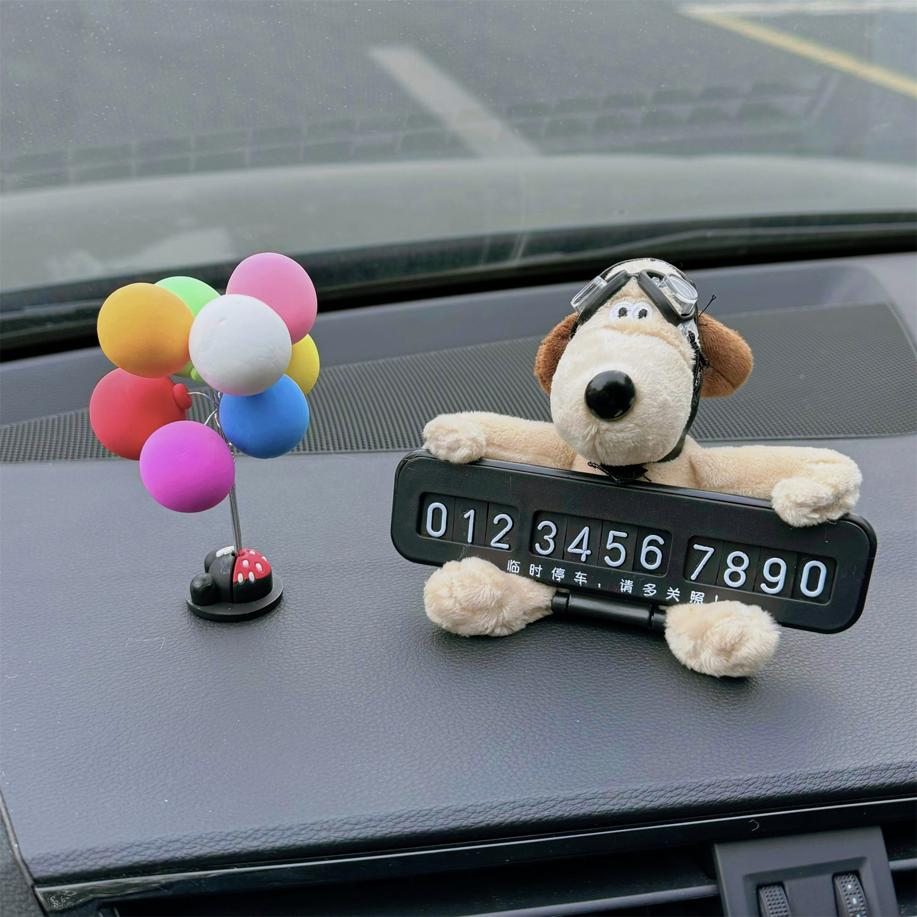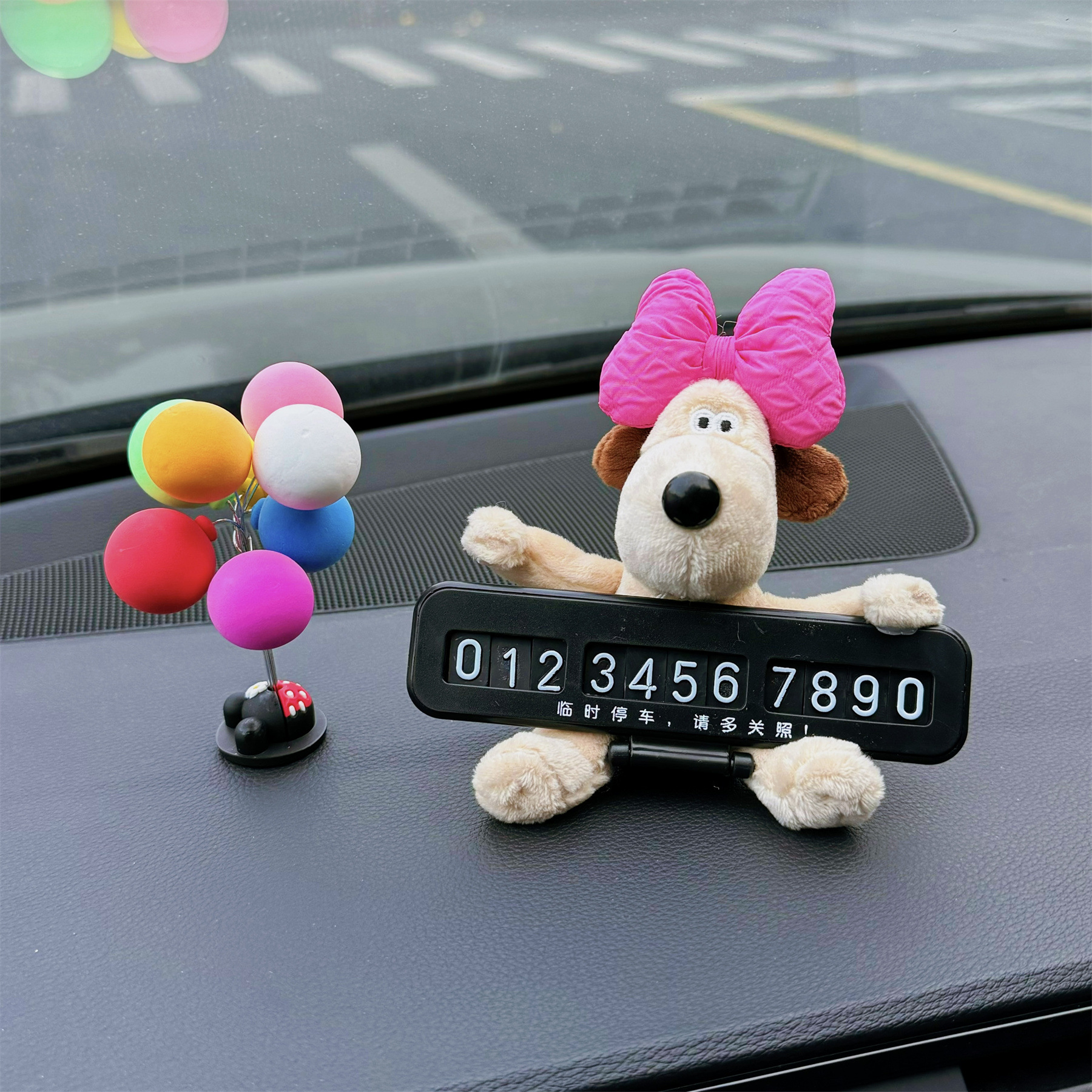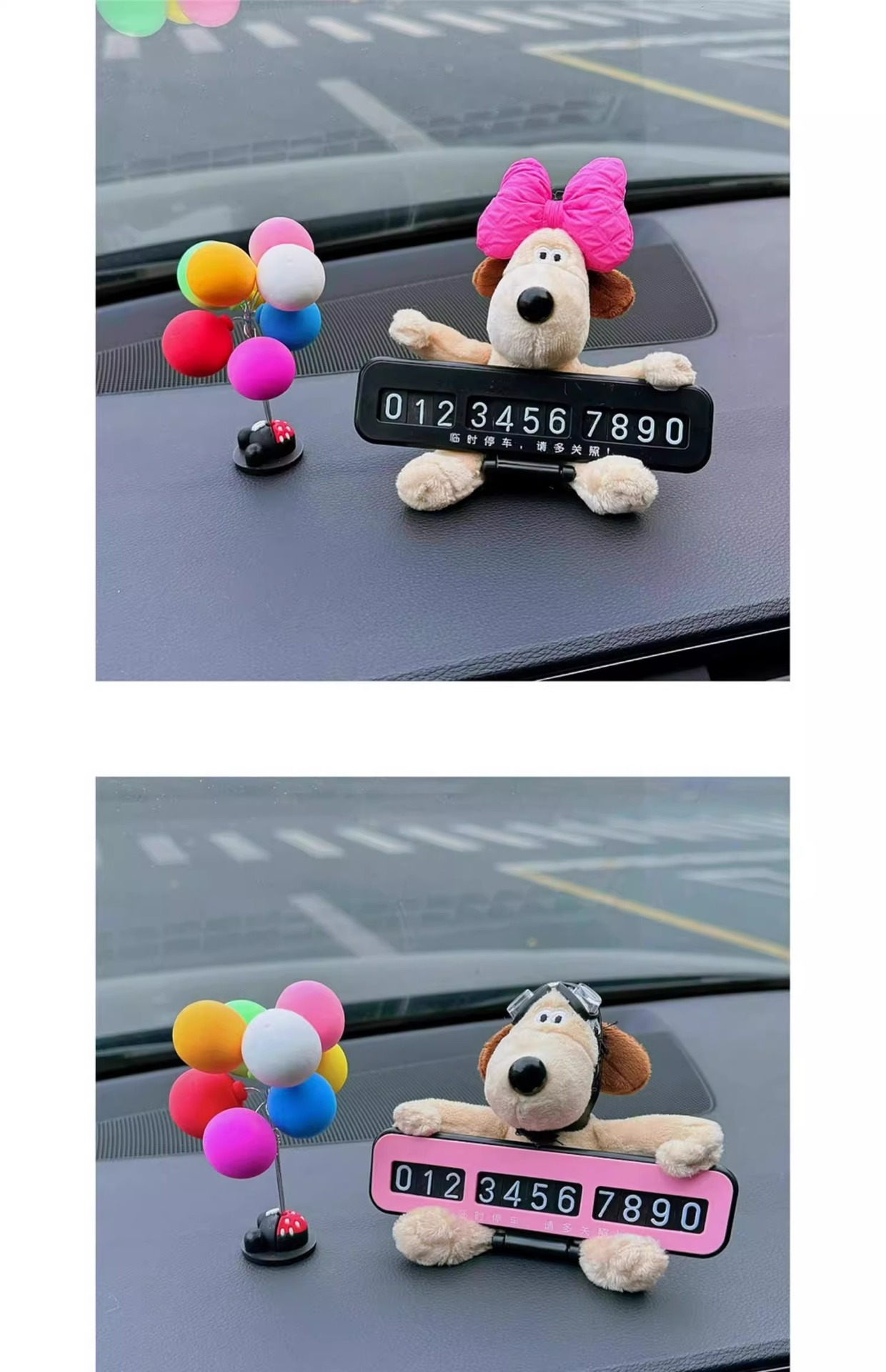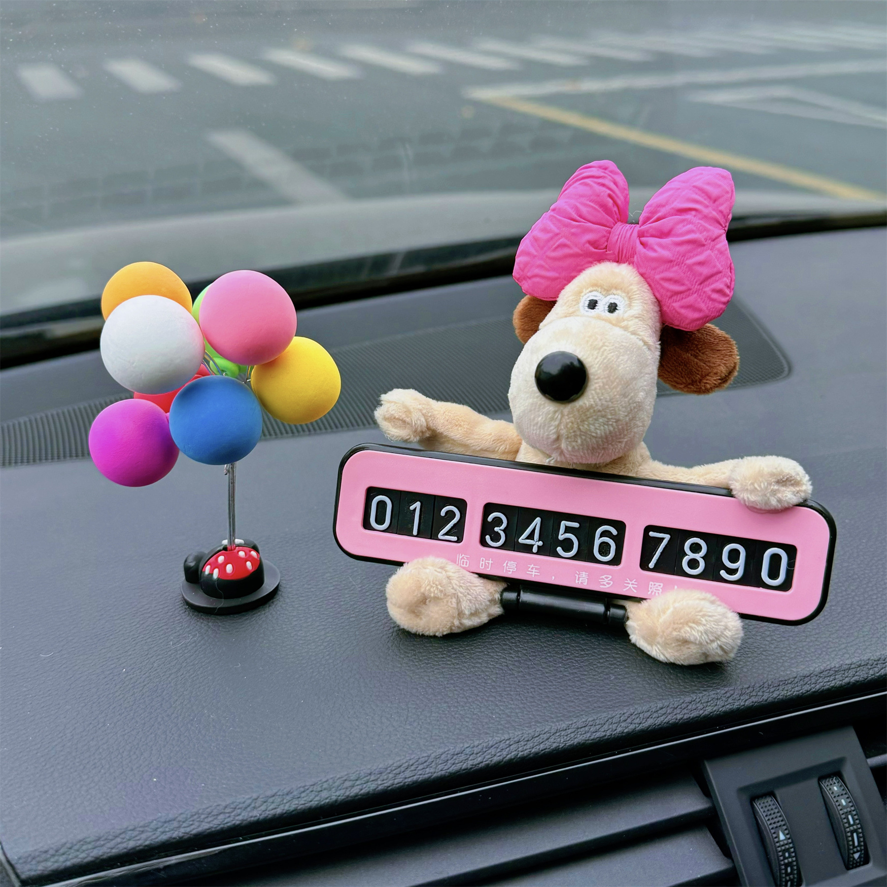 • 핑크 리본 개 + 검정색 접이식 주차 표지판 + 컬러 볼