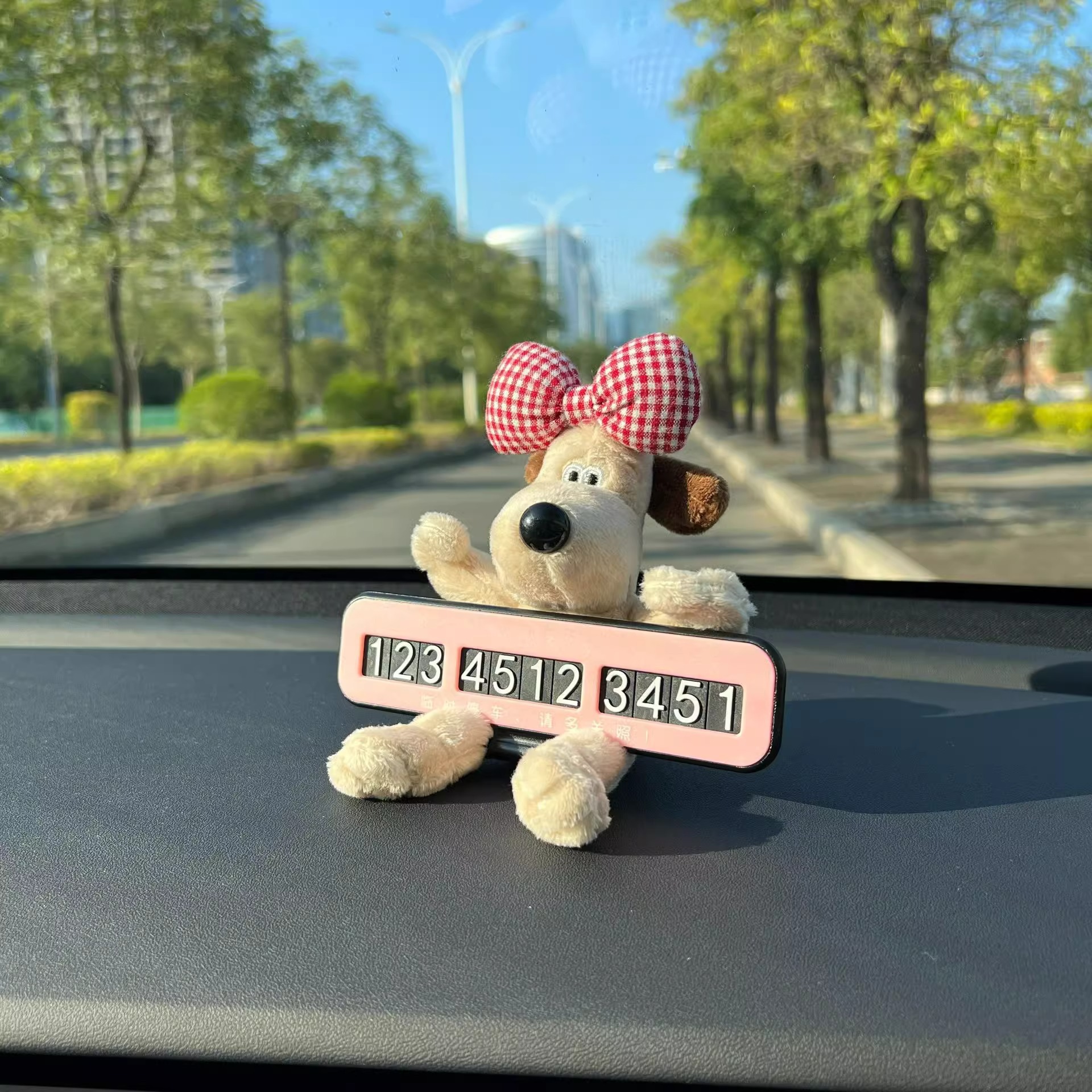 • 핑크 리본 개 + 핑크 접이식 주차 표지판 + 컬러 볼