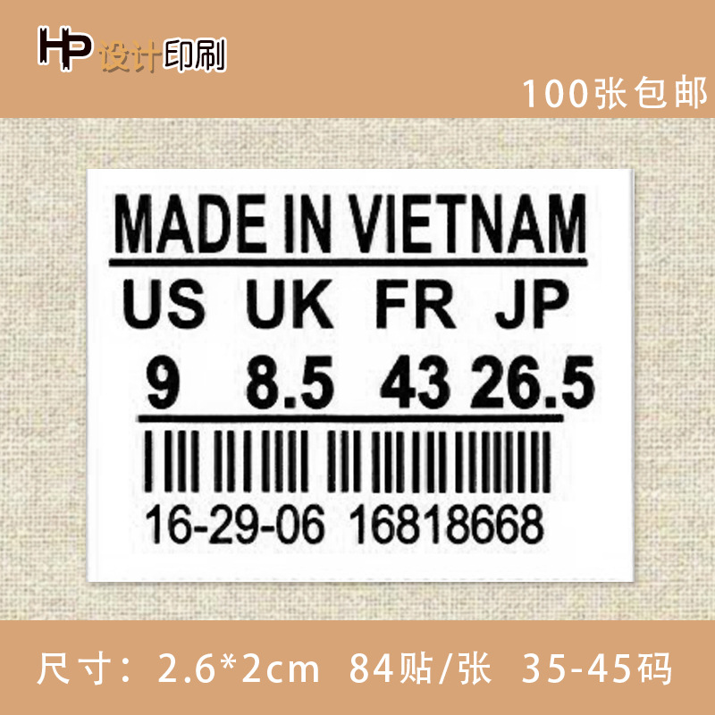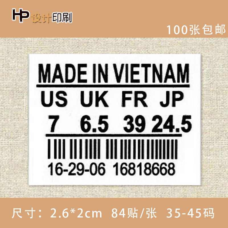 천 접착 신발 크기 스티커 혀 라벨 운동화 스티커 자체 접착 크기 스티커 베트남 블랙스토어 가기