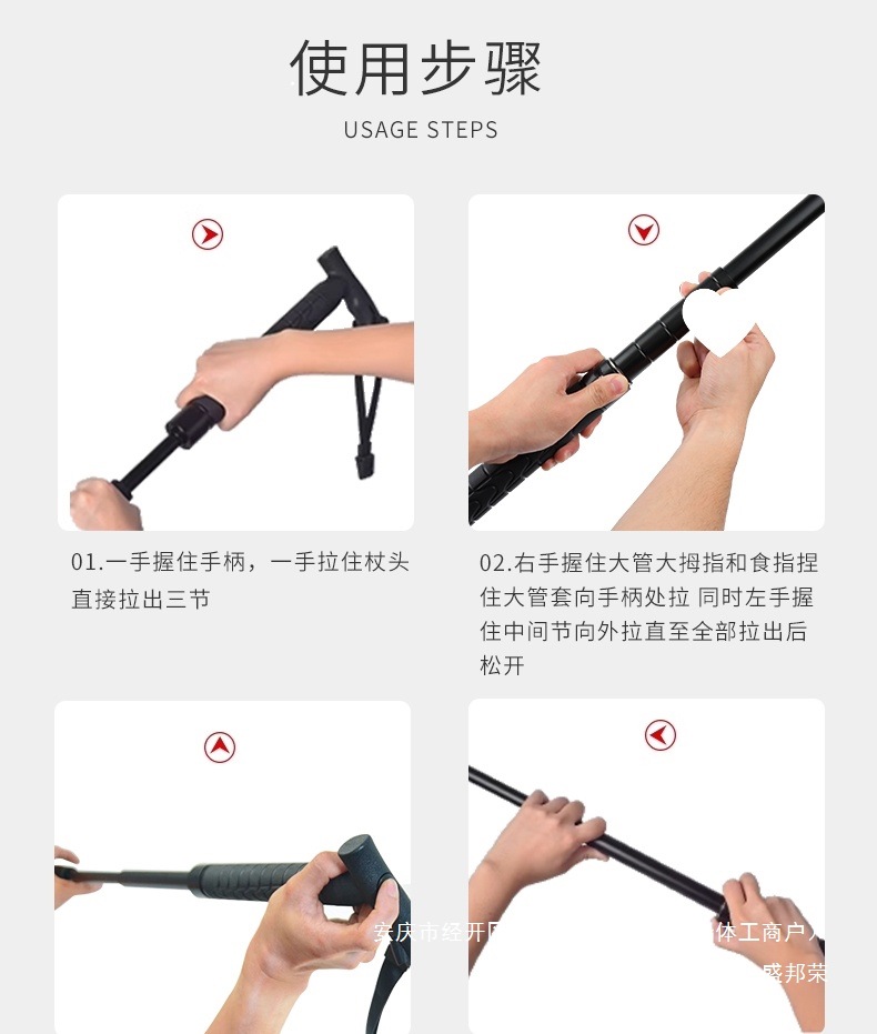 자기방어용 스틱, 야외 접이식 지팡이, 하이킹용 신축형 전문 다기능 등산 스틱, 알루미늄 합금 고무 미끄럼 방지스토어 가기