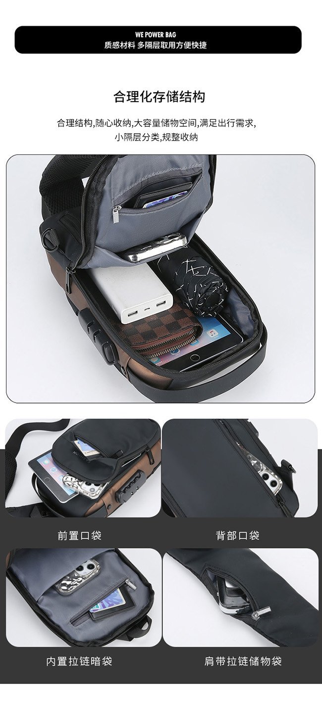 국경 간 새 남성 가방 도난 방지 비밀번호 잠금 남자의 크로스 바디 백 하이 퀄리티 가슴 가방 인터넷 인기있는 통근 가방 기관차 가방스토어 가기
