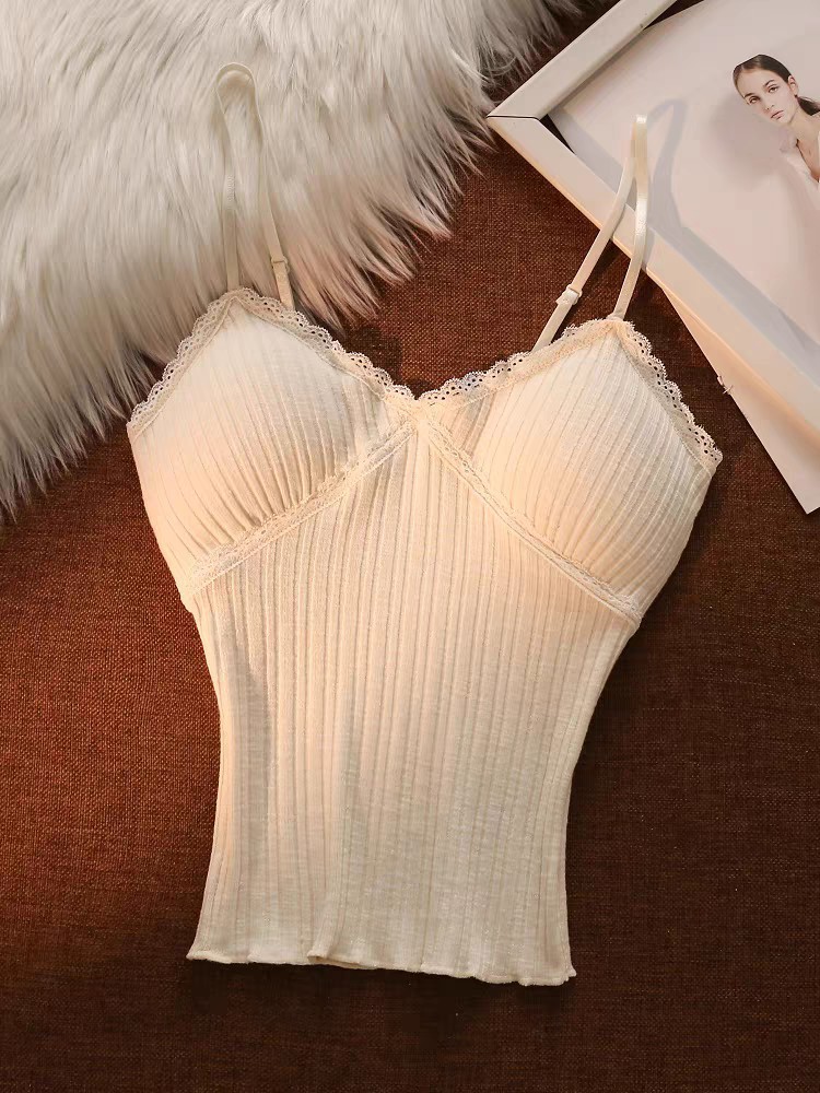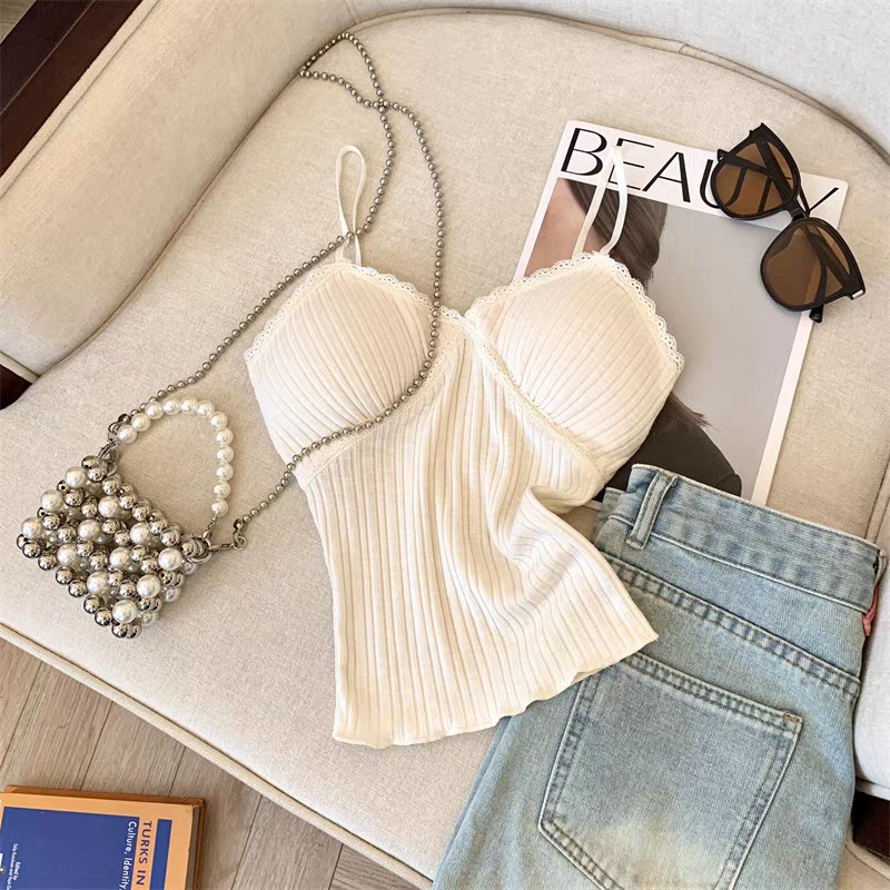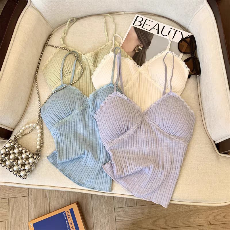 달콤한 소녀 스타일 스타일 벨트 가슴 패드 레이스 작은 슬링 여름 새로운 뜨거운 소녀 달콤한 나이 감소 슬림 핏 짧은 정상