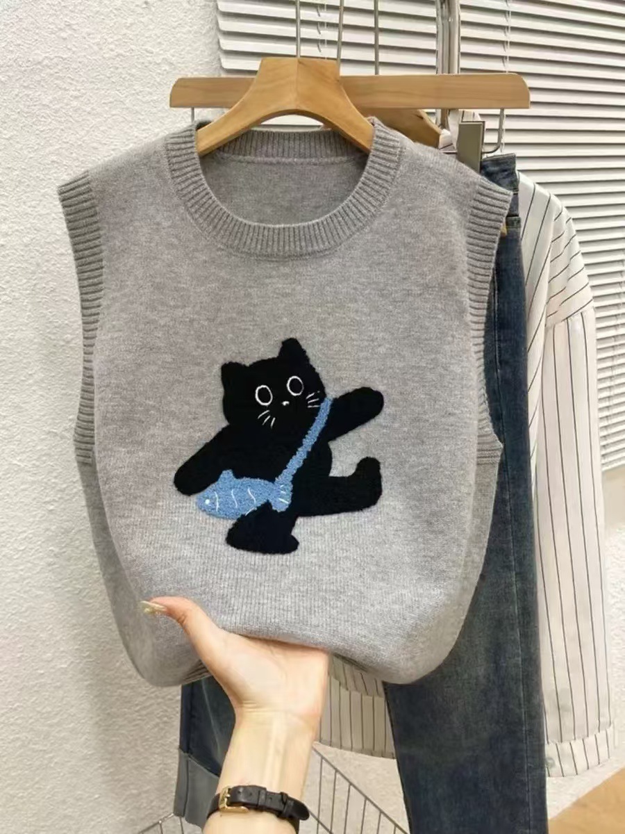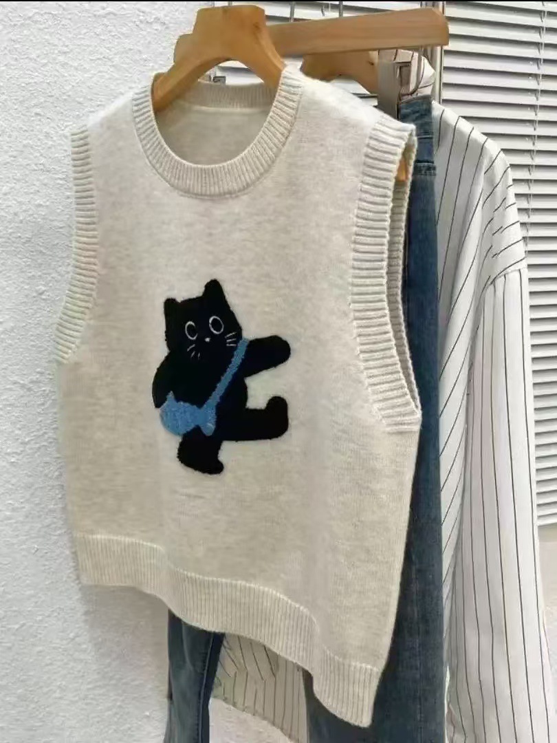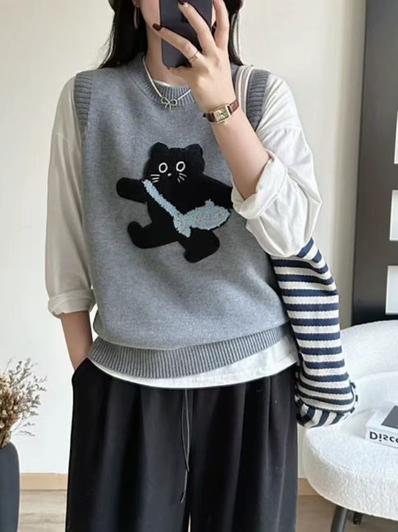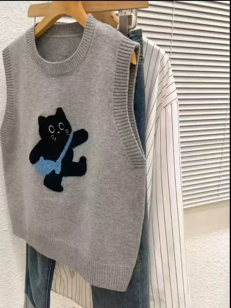 [캐시미어] 쌓인 연령 감소 스웨터 조끼 여성 가을 · 겨울 새 느슨한 의상 쇼트 니트 캔켈