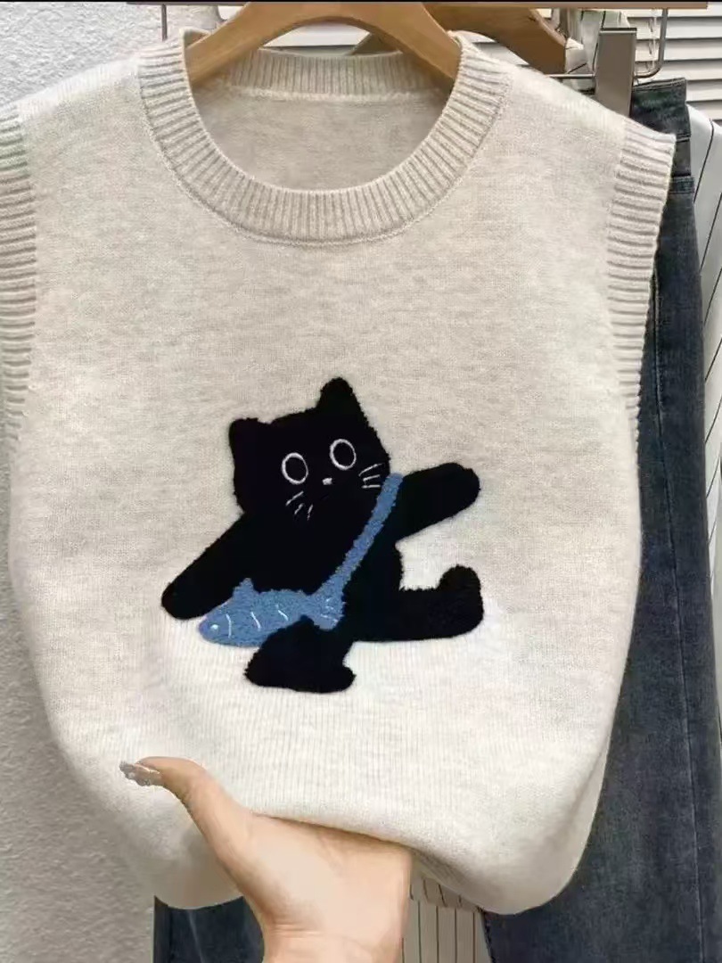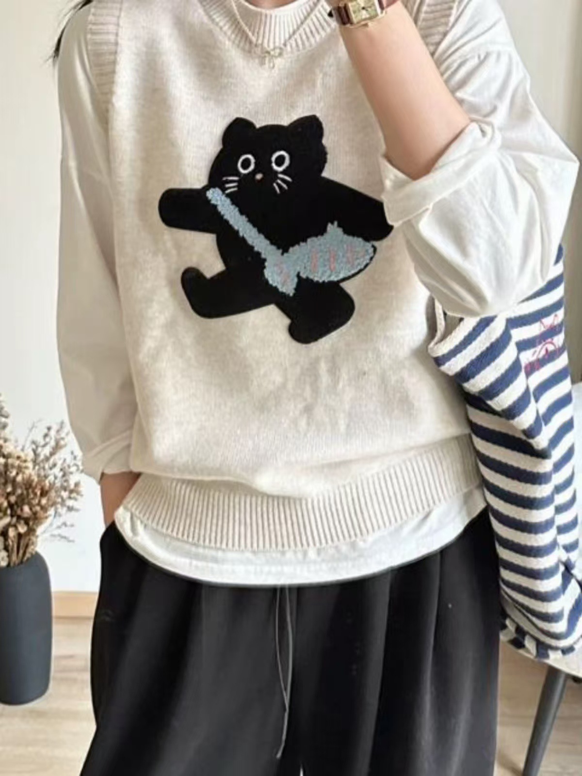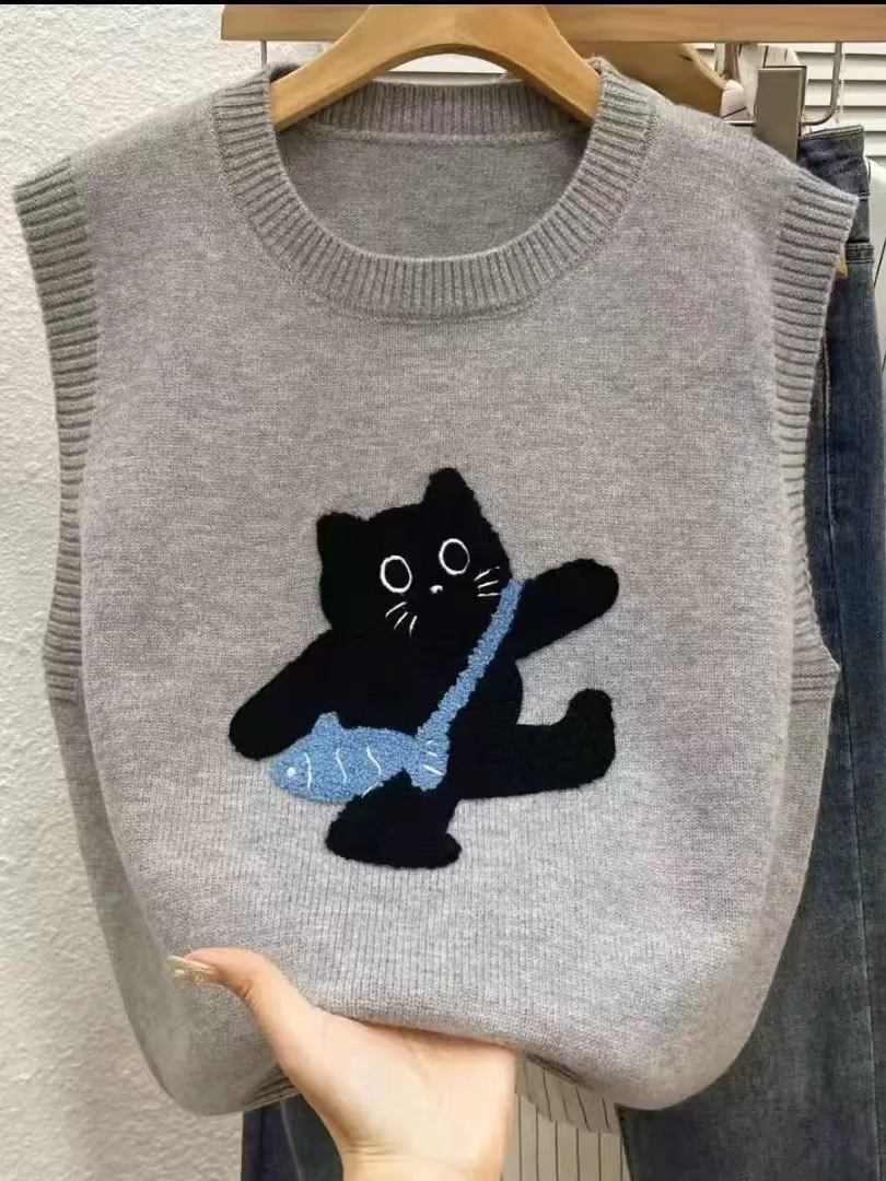 [캐시미어] 쌓인 연령 감소 스웨터 조끼 여성 가을 · 겨울 새 느슨한 의상 쇼트 니트 캔켈