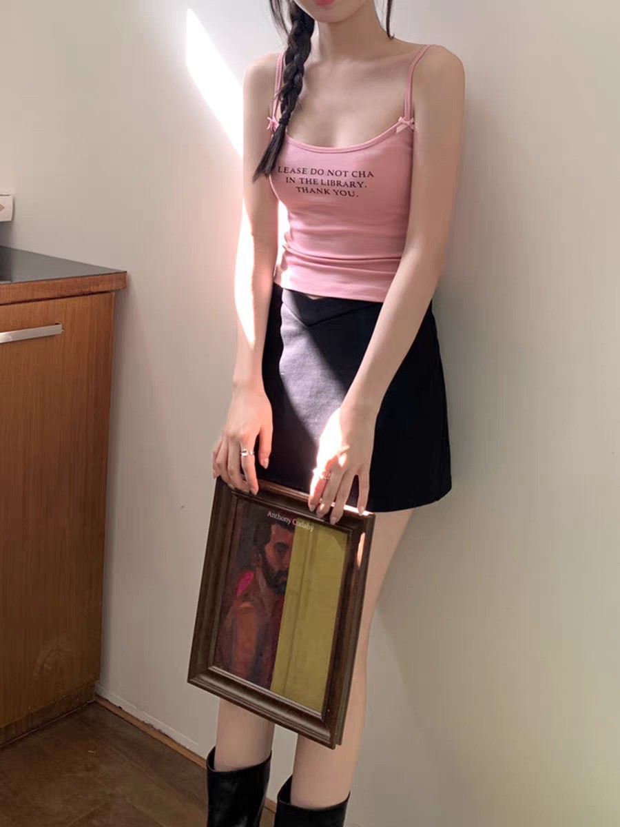 달콤한 스파이스 소녀 알파벳 인쇄 카미솔 여성의 여름 귀여운 활 틈새 짧은 상단스토어 가기