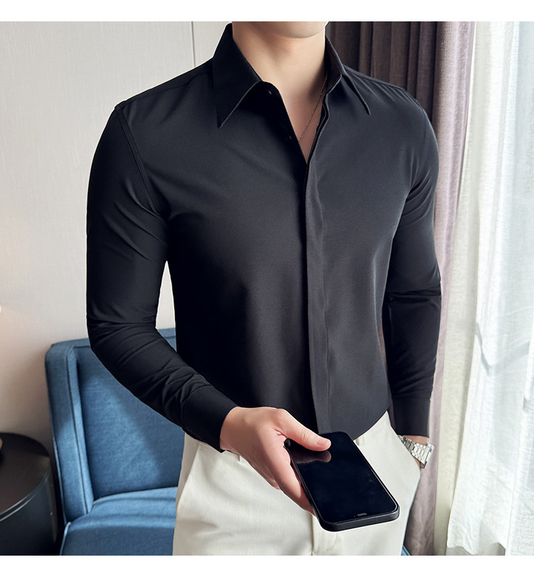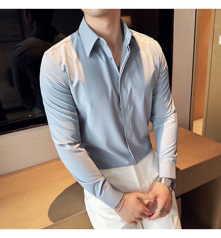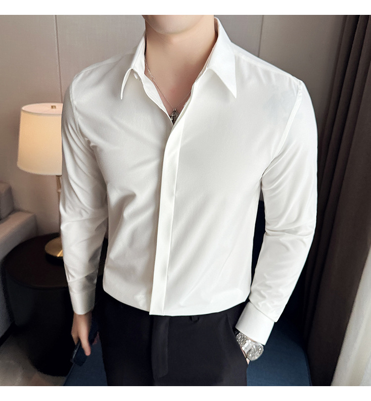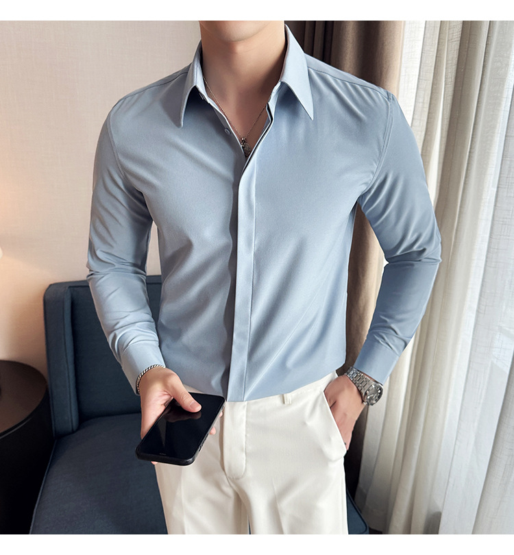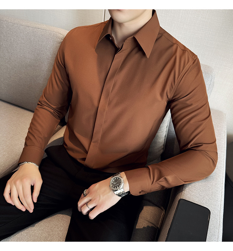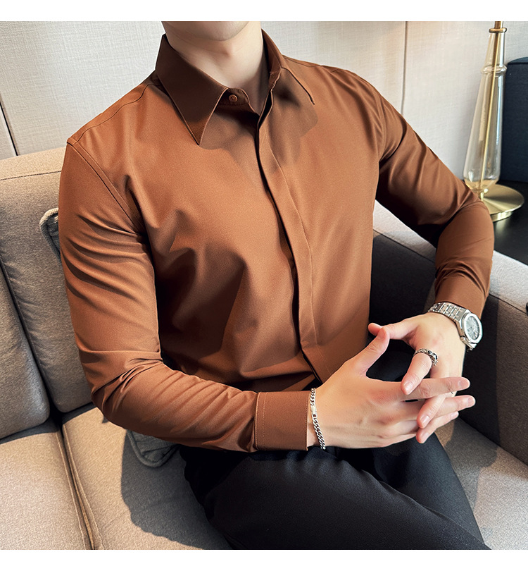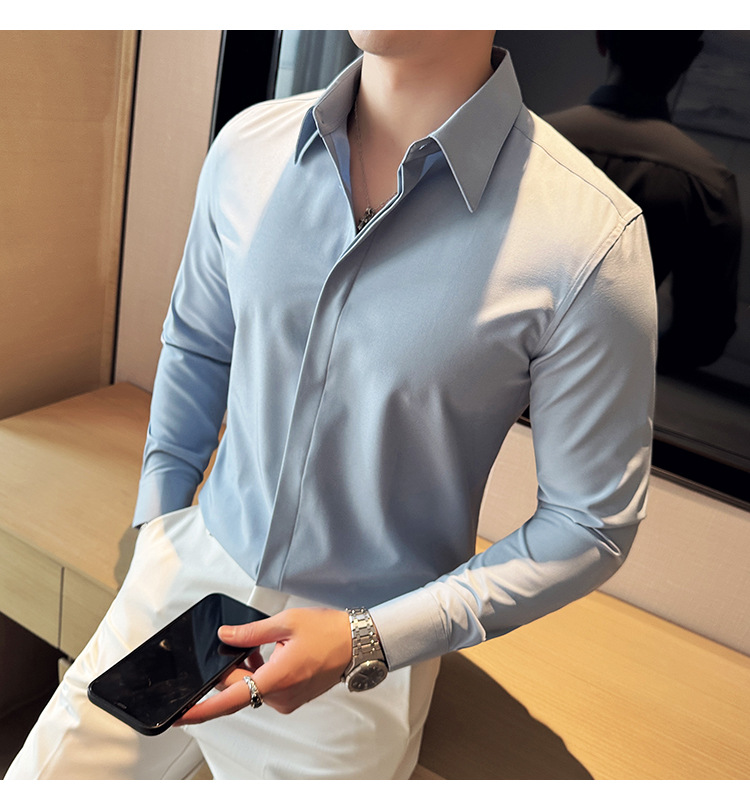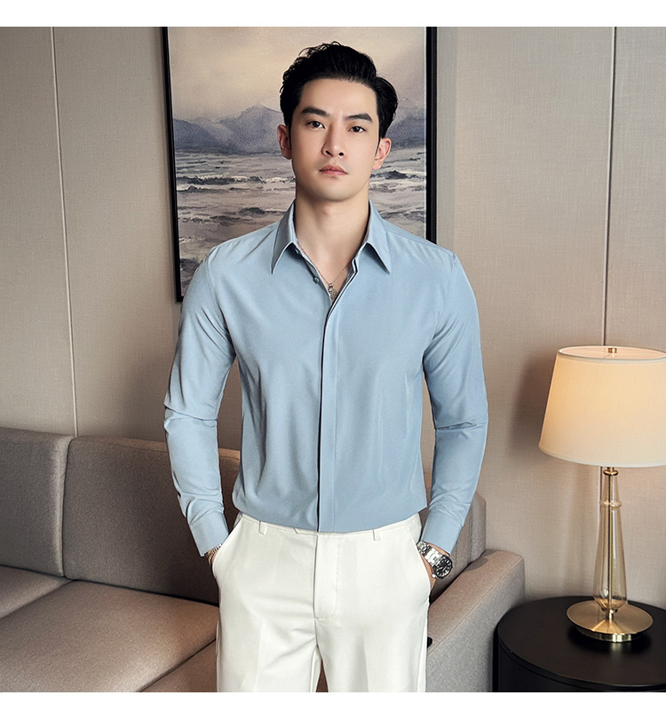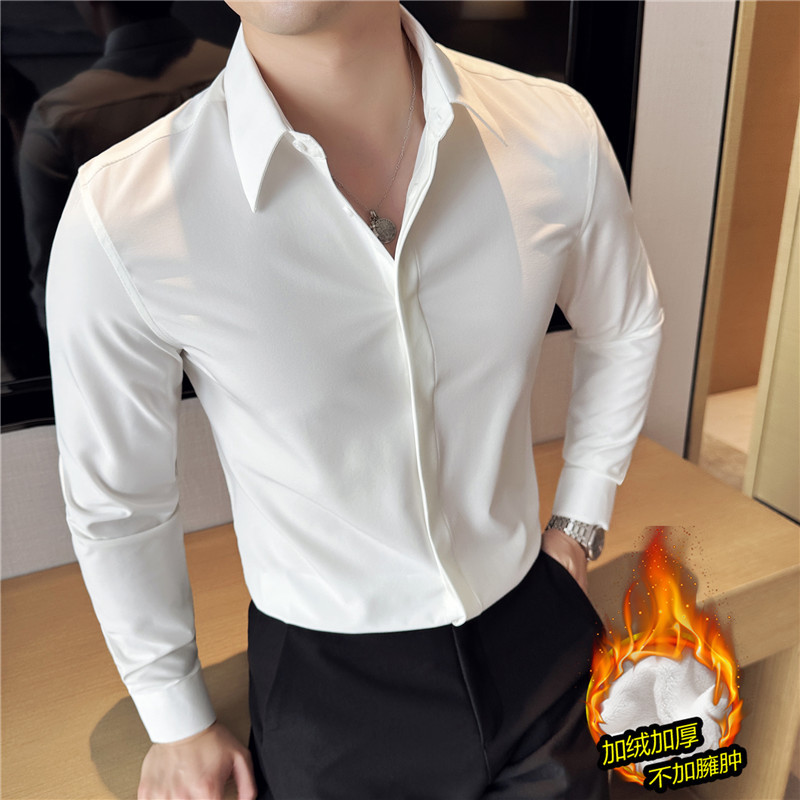 TikTok 라이브 추천 고급 센스 기모 따뜻한 남성용 셔츠 슬림핏 다크 플래켓 비즈니스 남성용 긴팔 셔츠