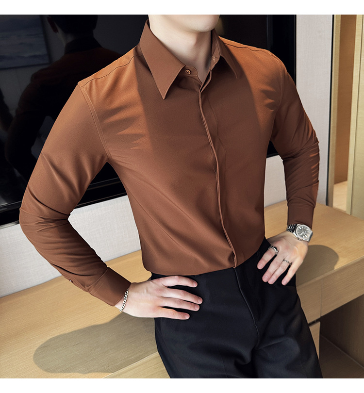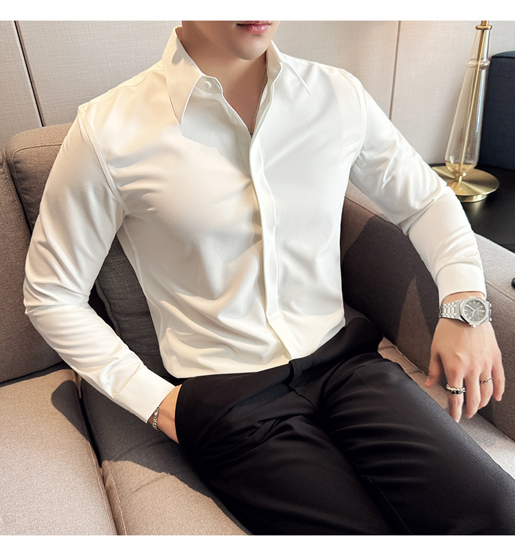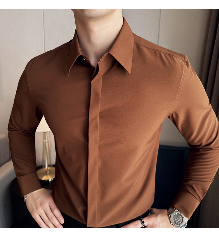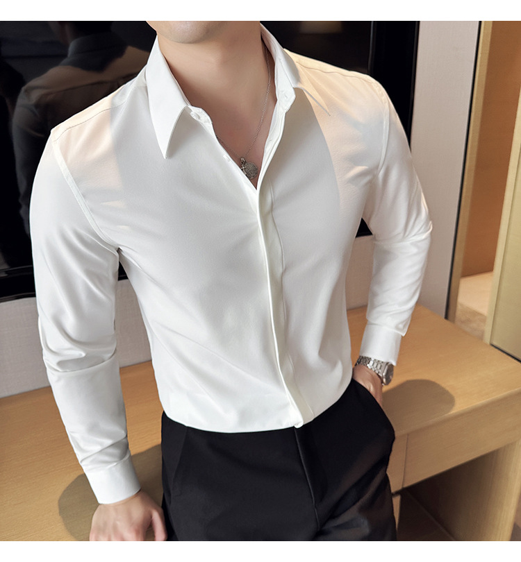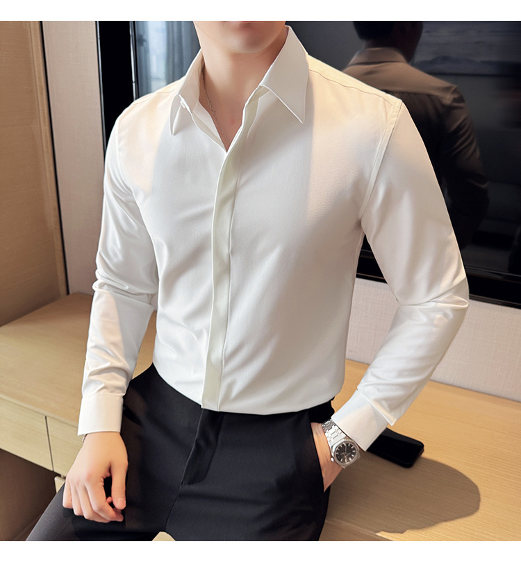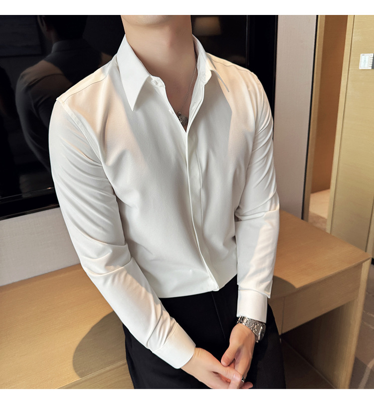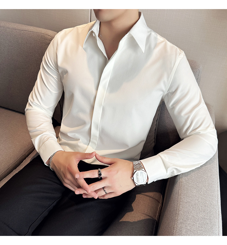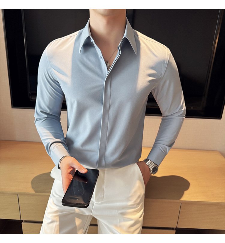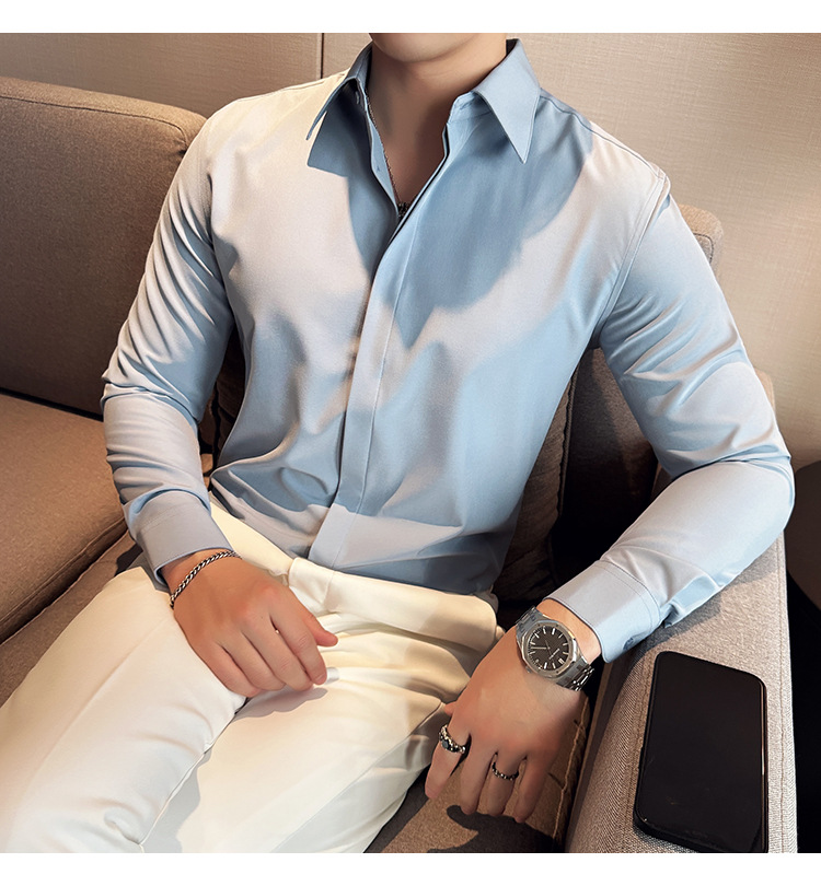 TikTok 라이브 추천 고급 센스 기모 따뜻한 남성용 셔츠 슬림핏 다크 플래켓 비즈니스 남성용 긴팔 셔츠
