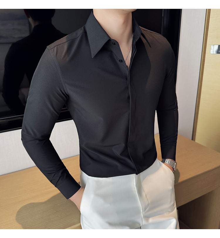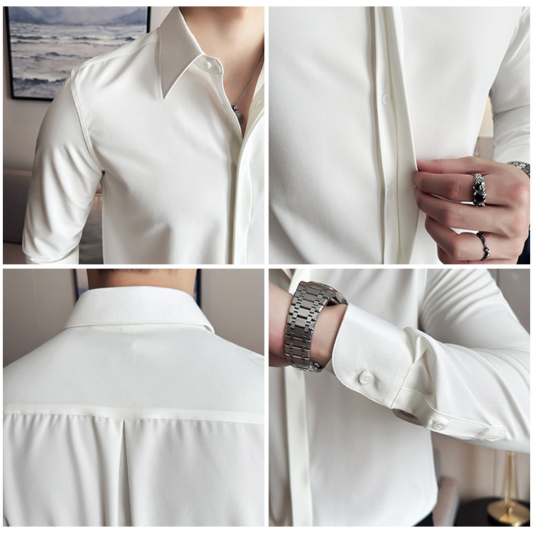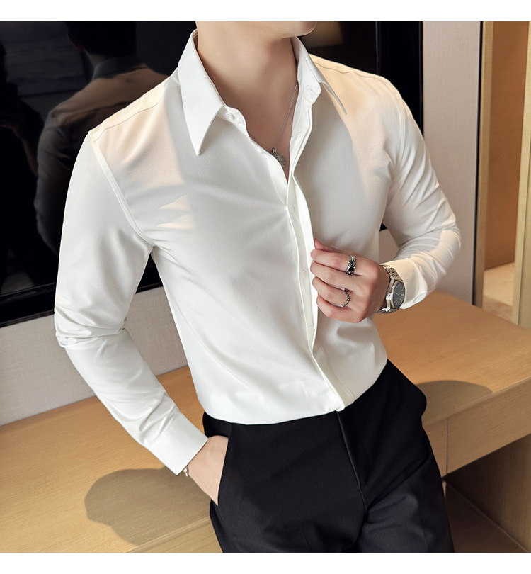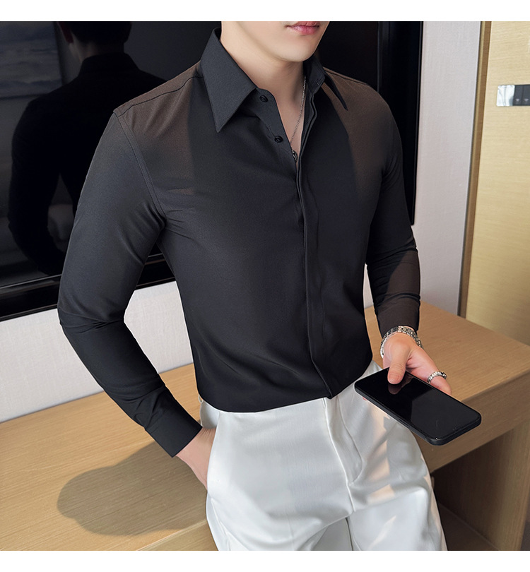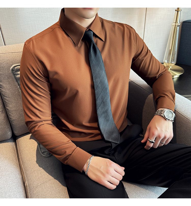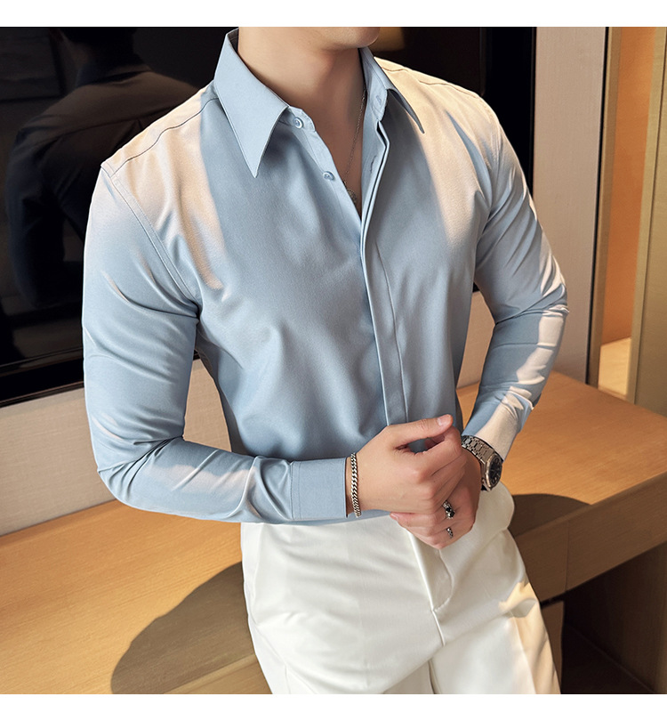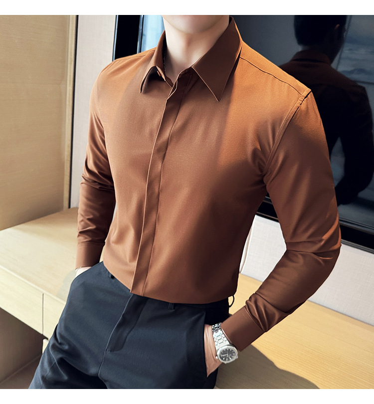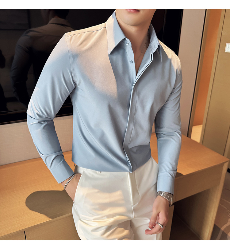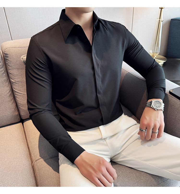 TikTok 라이브 추천 고급 센스 기모 따뜻한 남성용 셔츠 슬림핏 다크 플래켓 비즈니스 남성용 긴팔 셔츠