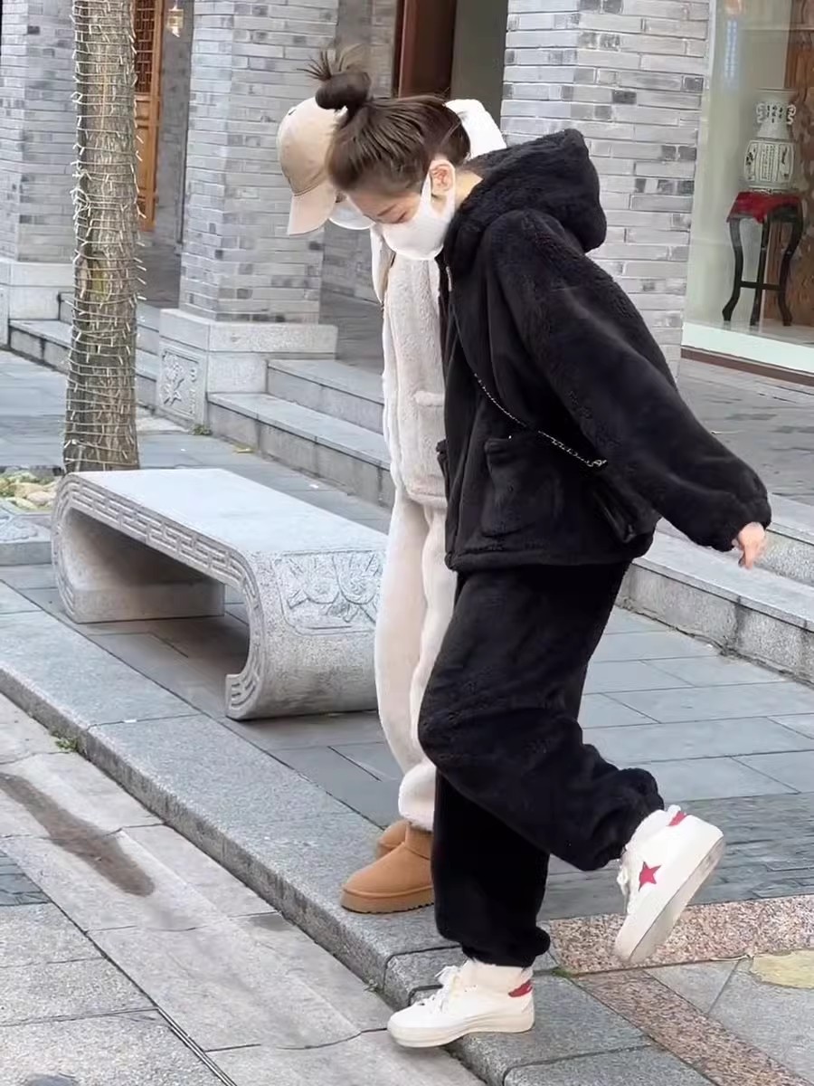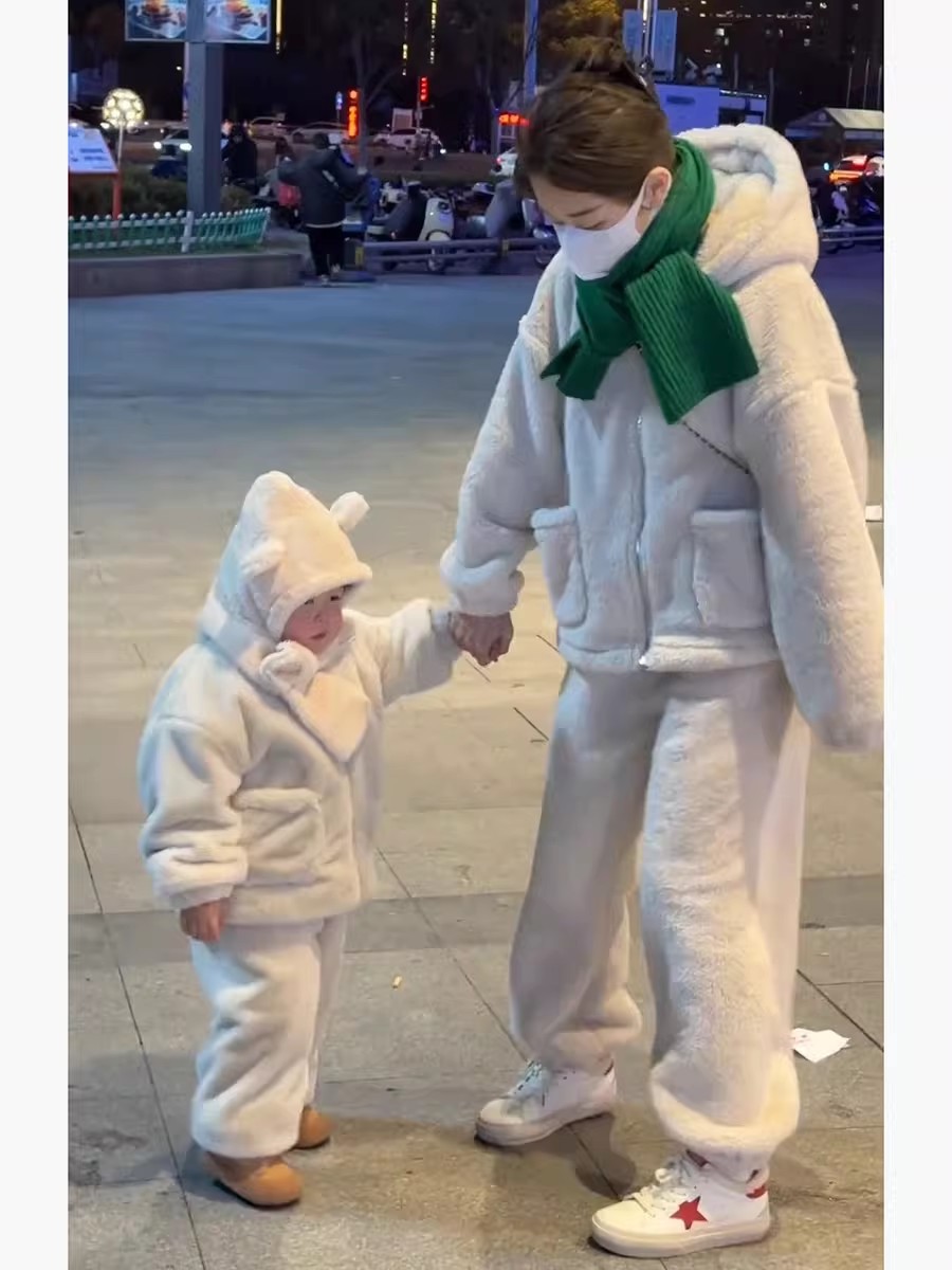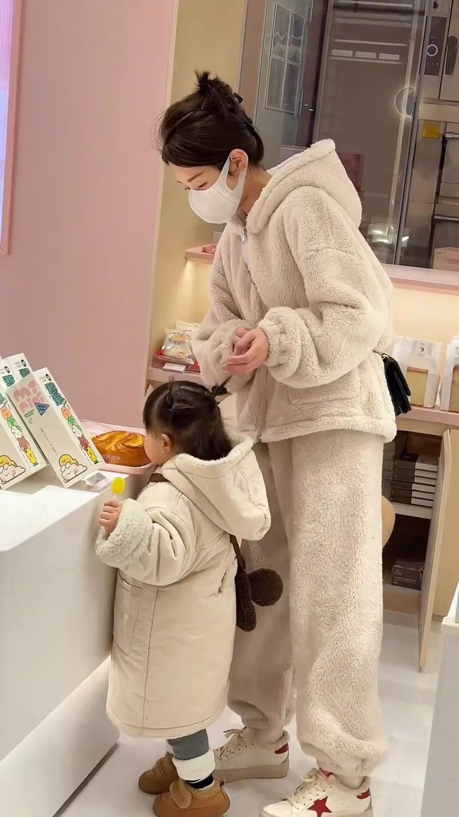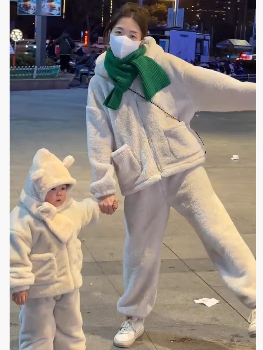 한국 스타일 캐주얼 후드 봉제 자켓 여성 2024 년 겨울 새 느슨한 기모 홈 옷 투피스 세트스토어 가기
