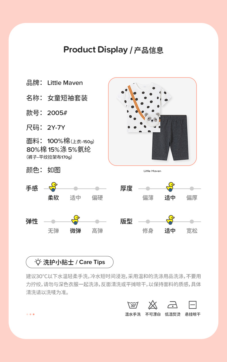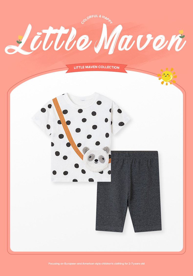 작은 maven 유럽과 미국의 귀여운 소녀 세트 여름 짧은 소매 천 자수 어린이 의류 팬더 소녀 세트스토어 가기