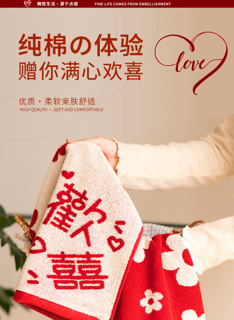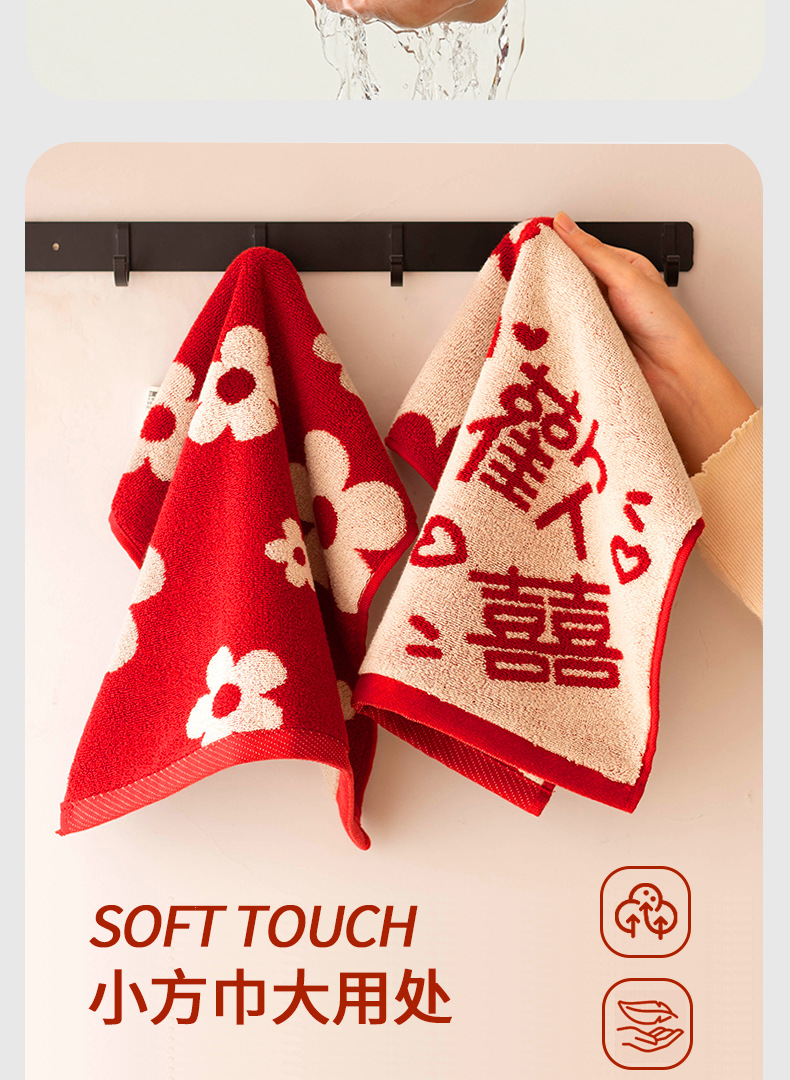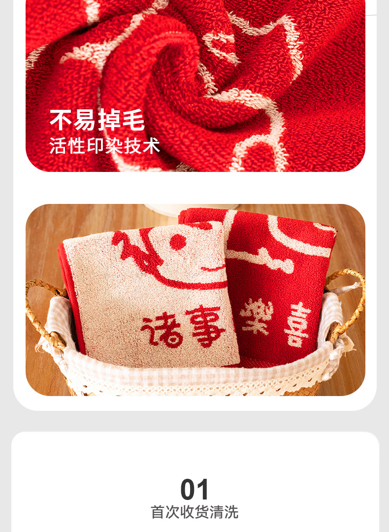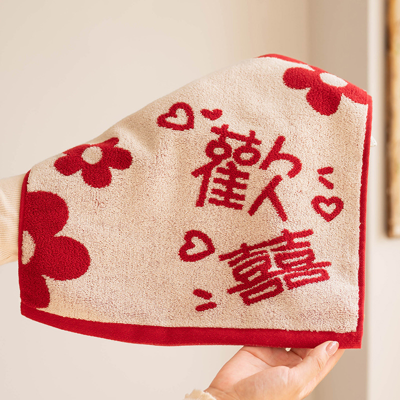 빨간색 '합'자 타올, 결혼 축하용, 결혼식, 가정용, 기념품, 여성용, 혼수 선물, 신랑 신부 선물, 커플 손수건