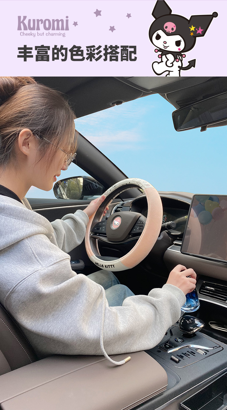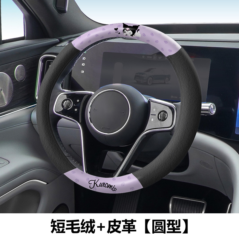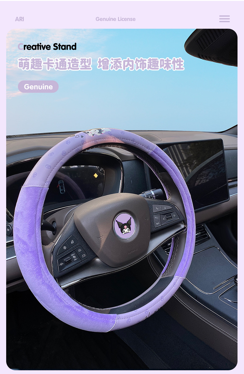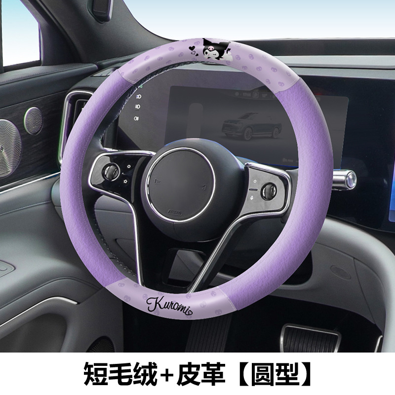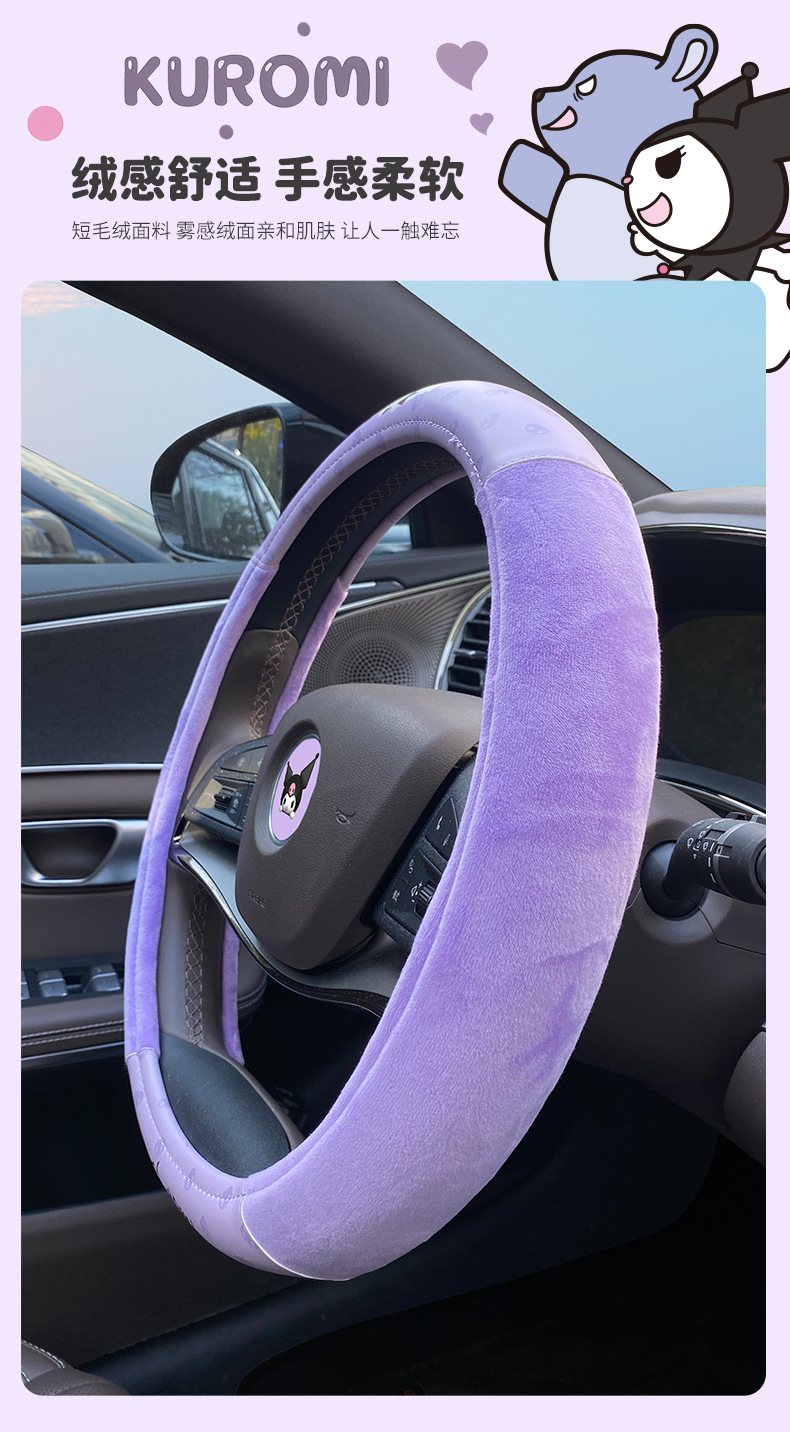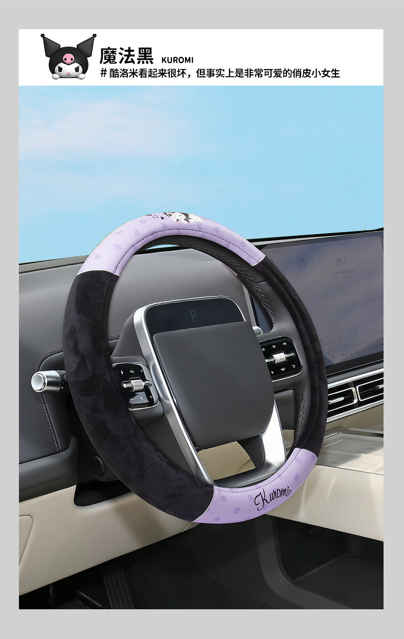 Kuromi 만화 자동차 땀 흡수 플러시 스티어링 휠 커버 2025 새로운 사계절 유니버설 D 형 핸들 커버 여성용 귀여운스토어 가기