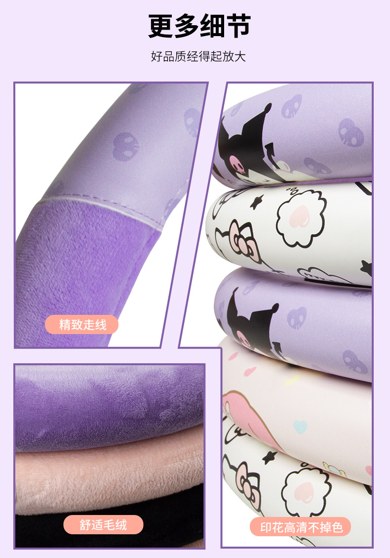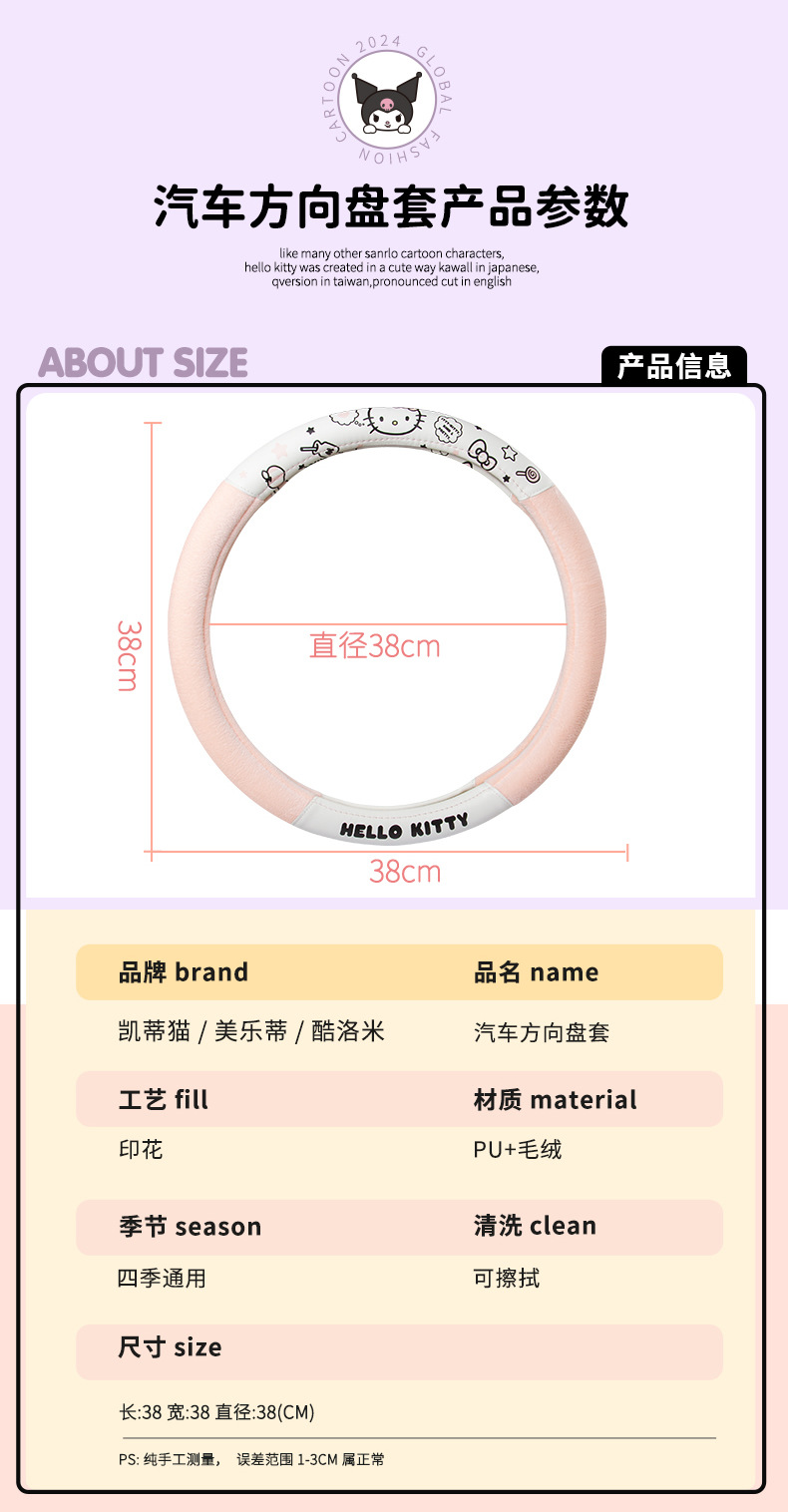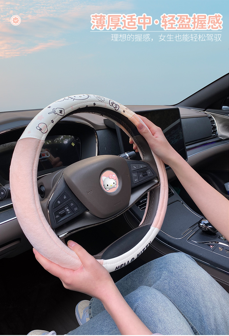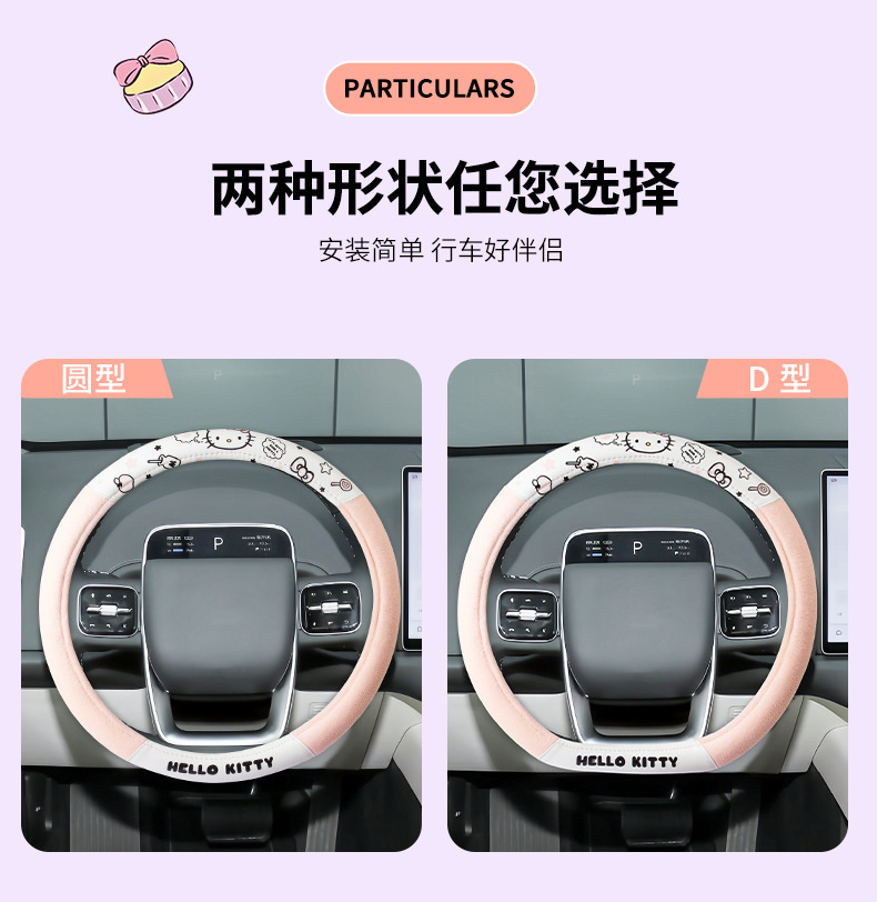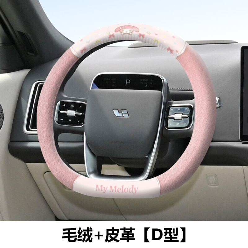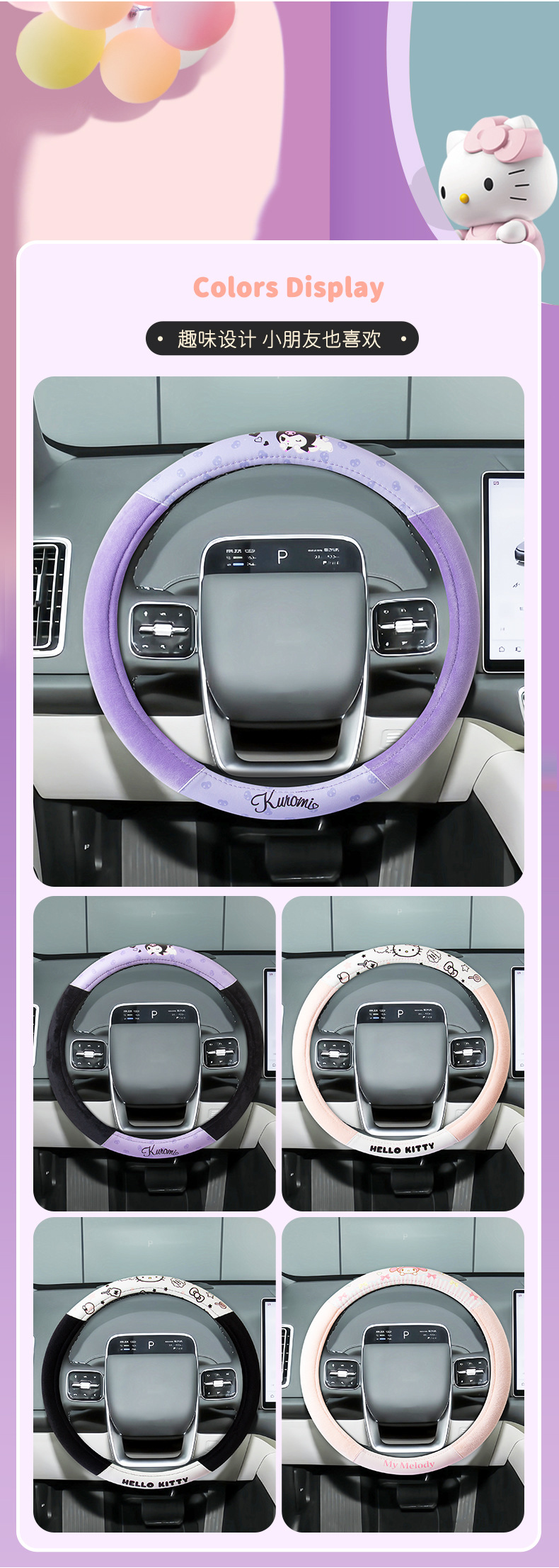 Kuromi 만화 자동차 땀 흡수 플러시 스티어링 휠 커버 2025 새로운 사계절 유니버설 D 형 핸들 커버 여성용 귀여운스토어 가기