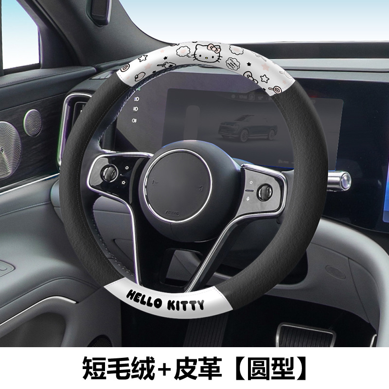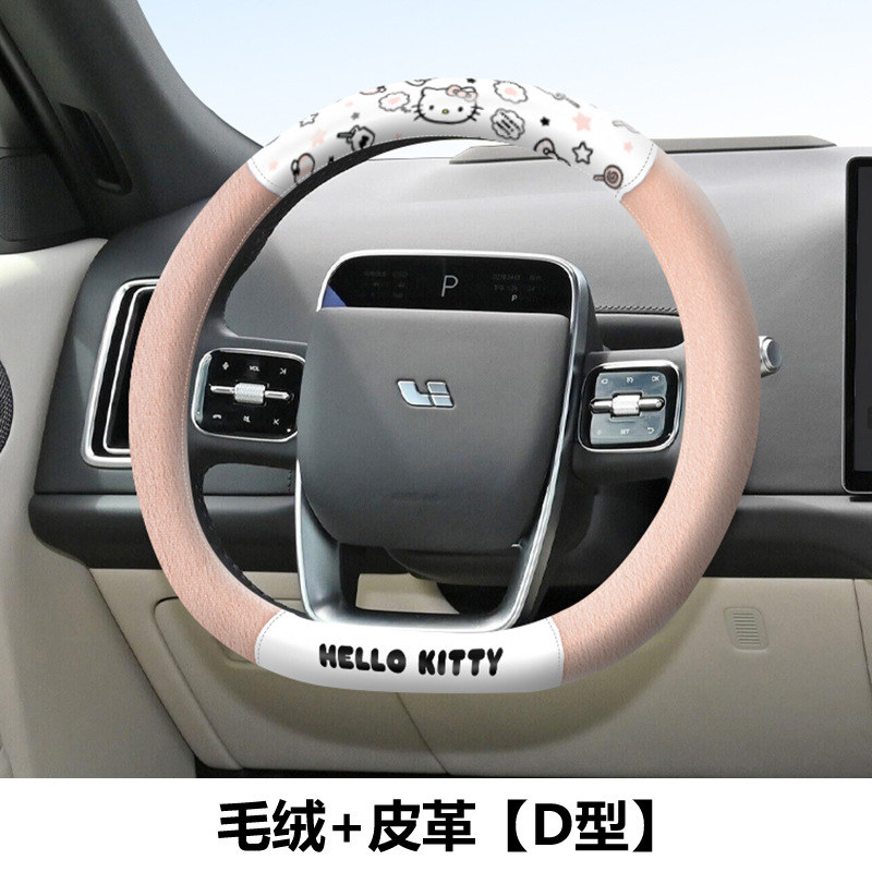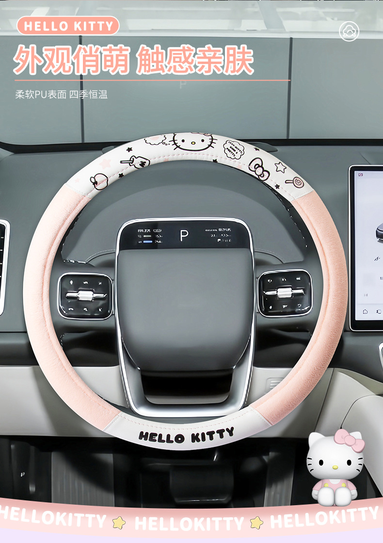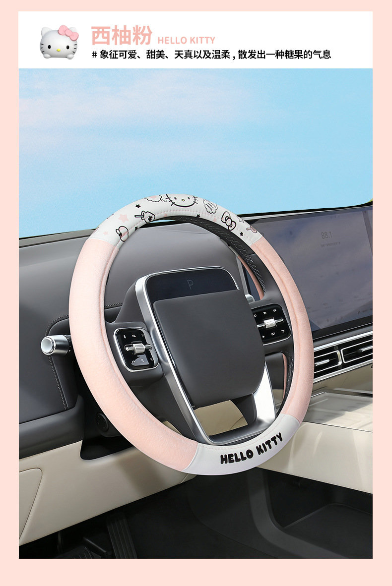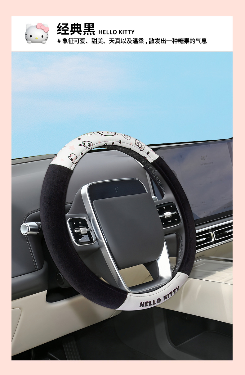 Kuromi 만화 자동차 땀 흡수 플러시 스티어링 휠 커버 2025 새로운 사계절 유니버설 D 형 핸들 커버 여성용 귀여운
