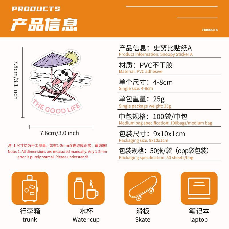 50 만화 스누피 스티커 만화 손 계정 장식 휴대 전화 노트북 컵 방수 스티커 도매스토어 가기