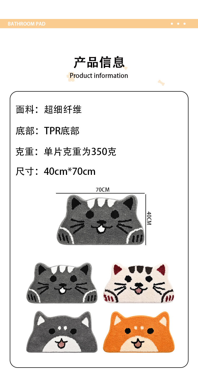 새로운 잠금 만화 고양이 욕실 흡수성 바닥 매트 욕실 미끄럼 방지 발 매트 홈 귀여운 카펫 도어 매트 도매