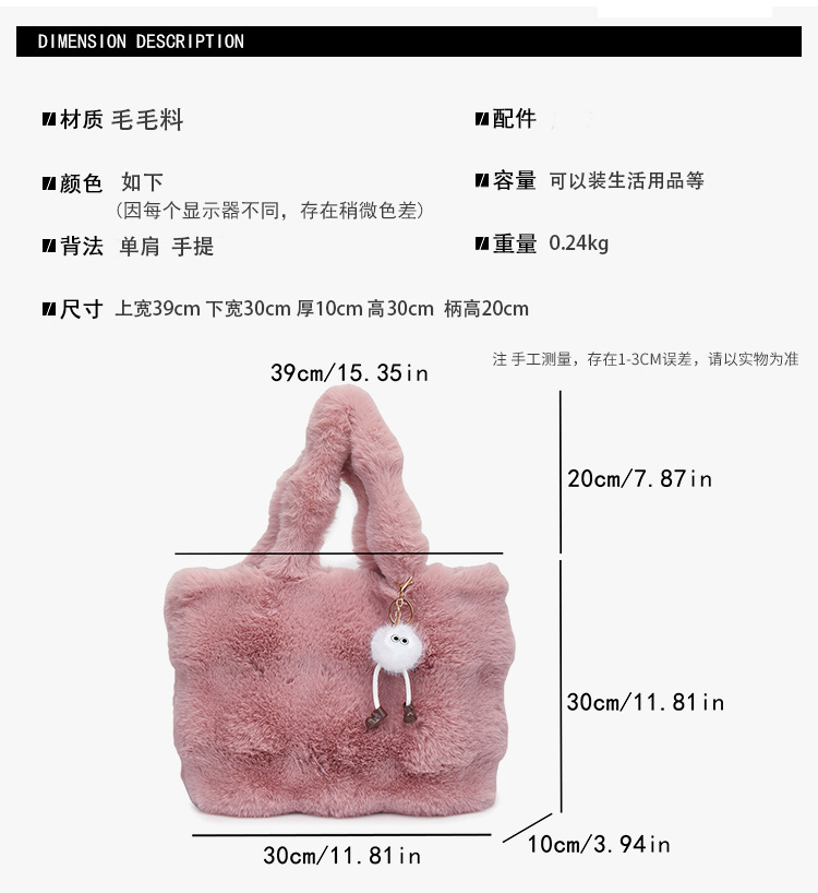 국경 간 마오 마오 가방 게으른 바람 봉제 소녀 버블 토트 백 가을과 겨울 고품질 양동이 핸드백스토어 가기