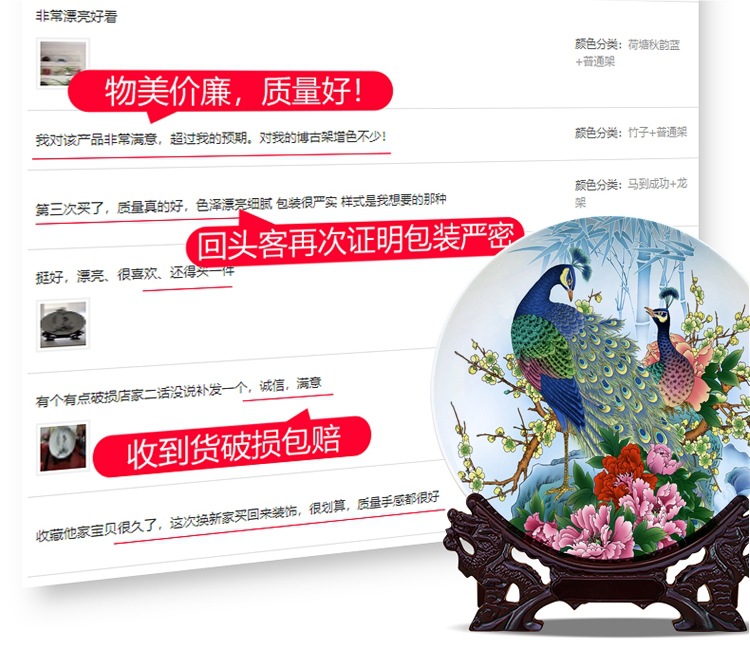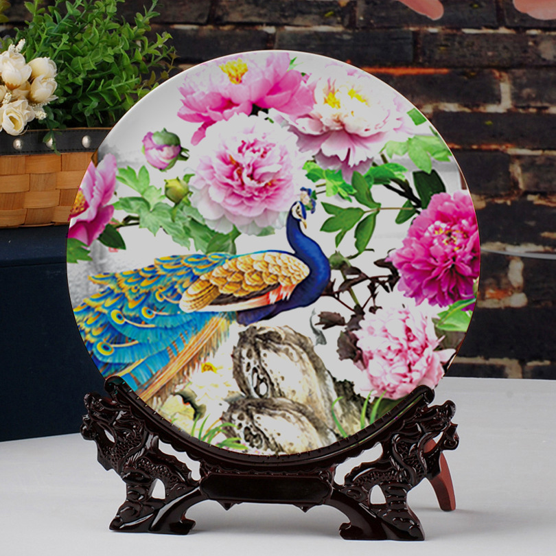 Jingdezhen 세라믹 공작 모란 장식 플레이트 홈 오피스 거실 TV 내각 유럽 창조적 인 공예스토어 가기
